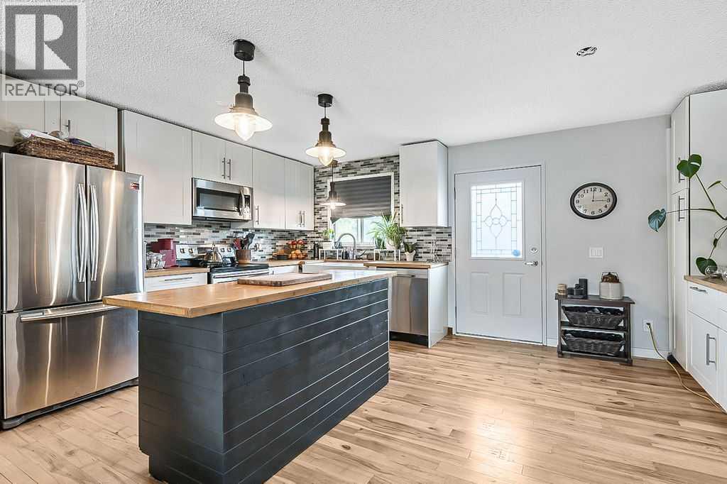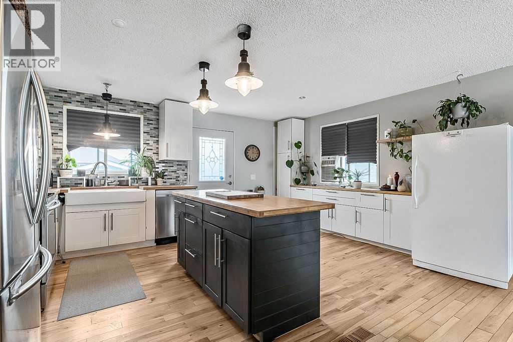 Sellers are motivated! Welcome to your charming bi-level home in the heart of Diamond Valley, where modern updates meet cozy living! This delightful 1008 sq ft residence features a beautifully updated kitchen that is sure to impress, complete with stunning wood countertops and loads of crisp white cabinets, making it a perfect space for culinary creativity. All kitchen appliances have been updated, allowing you to enjoy cooking and entertaining in style. The main living area has been recently painted, creating a bright and inviting atmosphere. You’ll find a stylishly updated 5-piece bath with a convenient built-in vanity. Discover two comfortable bedrooms on the main with generous closet space for all your clothing needs. The lower level offers two additional bedrooms, one of which is perfect for a guest room or home office, even though it lacks a closet. You’ll love the cozy family room downstairs, featuring a charming wood-burning stove that creates a warm and inviting space for family gatherings or quiet evenings. While the finished basement is in need of a little TLC, it presents a fantastic opportunity to add your personal touch and build equity in your new home. Step outside to discover a spacious multi-tiered deck that invites you to relax. Enjoy a variety of fresh produce from your own garden, including rhubarb, raspberries, cherries, and plums. This outdoor oasis is perfect for both quiet moments and lively gatherings! Plus, you’ll appreciate the convenience of a 24’ x 24’ heated detached garage as well as the additional RV parking, perfect for your vehicles and workshop. Don’t miss out on this wonderful opportunity to make this house your home—schedule a viewing today and envision your future in this lovely Diamond Valley gem! (id:53676)