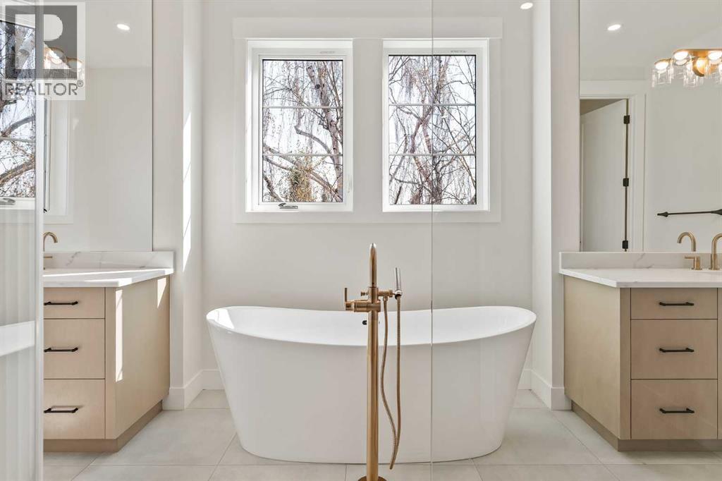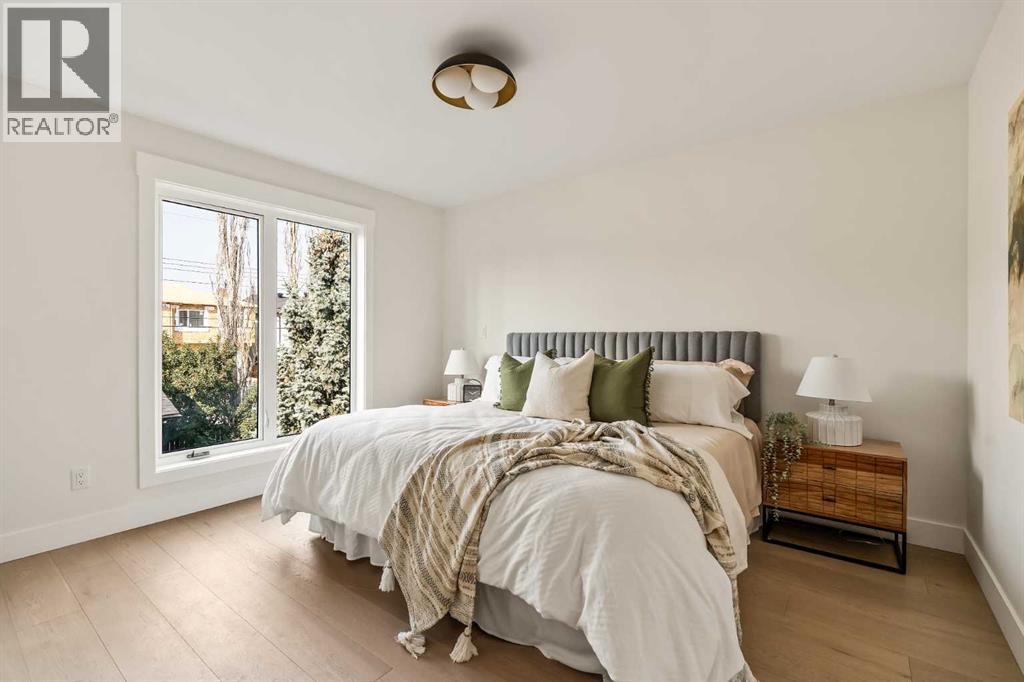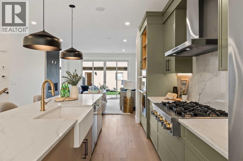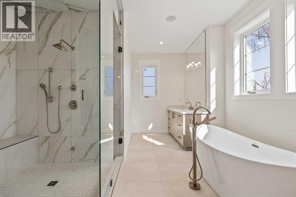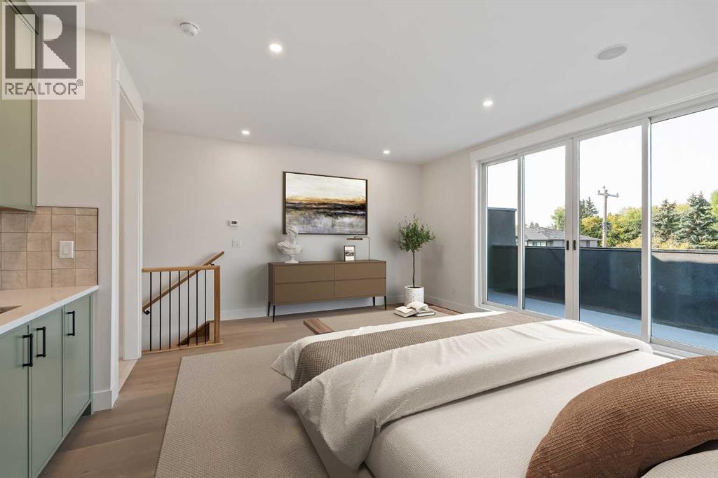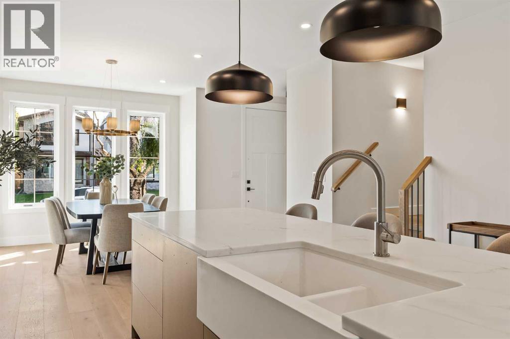 Proudly presenting a stunning urban-inspired masterpiece in the coveted community of Killarney. Thoughtfully designed & impeccably crafted, this three-story residence offers nearly 3650 SF of refined living space. The open-concept main floor showcases striking architectural details, including white oak hardwood floors, custom-milled cabinetry, oak & metal railings, & expansive windows that bathe the interior in natural light. The kitchen stands as a true showpiece featuring bespoke cabinetry with undermount lighting, exquisite quartz slab countertops & backsplash, premium JennAir appliances, Silgranit sink, & a impressive 12-foot island with seating for five. In the living area, a handsome floor-to-ceiling fireplace surround, & 8-foot garden doors make a bold yet sophisticated statement while white oak hardwood, mullioned windows, & an inviting dining area further elevate the curated, light-filled main floor. Completing the level is a convenient mudroom with built-ins & a pretty powder room. The gorgeous oak hardwood continues to the second level where the centrally situated bonus room is flanked by two distinguished bedrooms, each boasting its own ensuite with custom vanities, quartz counters, & beautifully tiled showers with glass doors while spacious walk-in closets with built-ins & large windows enhance the comfort & appeal of these inviting retreats. The third level is a sanctuary of elegance and comfort. The airy primary suite is flooded with natural light & features expansive sliding doors to a private balcony perfect for enjoying quiet morning coffee from the convenient beverage centre. The stunning ensuite exudes spa-like luxury with double custom oak vanities & refined quartz countertops, a dramatic steam shower, in-floor heating, & an opulent stand-alone waterfall tub. Completing this exceptional level is a considerable walk-in closet with extensive custom millwork. The professionally developed lower level delivers 900 SF of living space built with the sa me attention to detail. Providing a spacious family room, wet bar, fitness area, 4th bedroom with walk-in closet, & 5th bathroom this additional level makes an ideal area for entertaining or accommodating family members & guests. Equally impressive is the extraordinary curb appeal displaying genuine brick accents, James Hardie board cladding, acrylic stucco, mullioned windows, & an aggregate patio. The quiet West-facing backyard offers a tranquil setting perfect for children at play, summer barbecues, or simply unwinding at the end of the day. Other notable highlights of this remarkable residence include a double insulated & drywalled garage, Ply Gem windows with 2-year warranty, Delta fixtures, & 200-amp electrical panel. Situated close to parks, shopping, schools, transit, & the vibrant amenities of 17th Ave, this extraordinary property delivers a beautiful lifestyle in an excellent Killarney location. Welcome home to 2013–34 St SW where exceptional design meets timeless luxury. Feature Sheet in listing (id:53676)