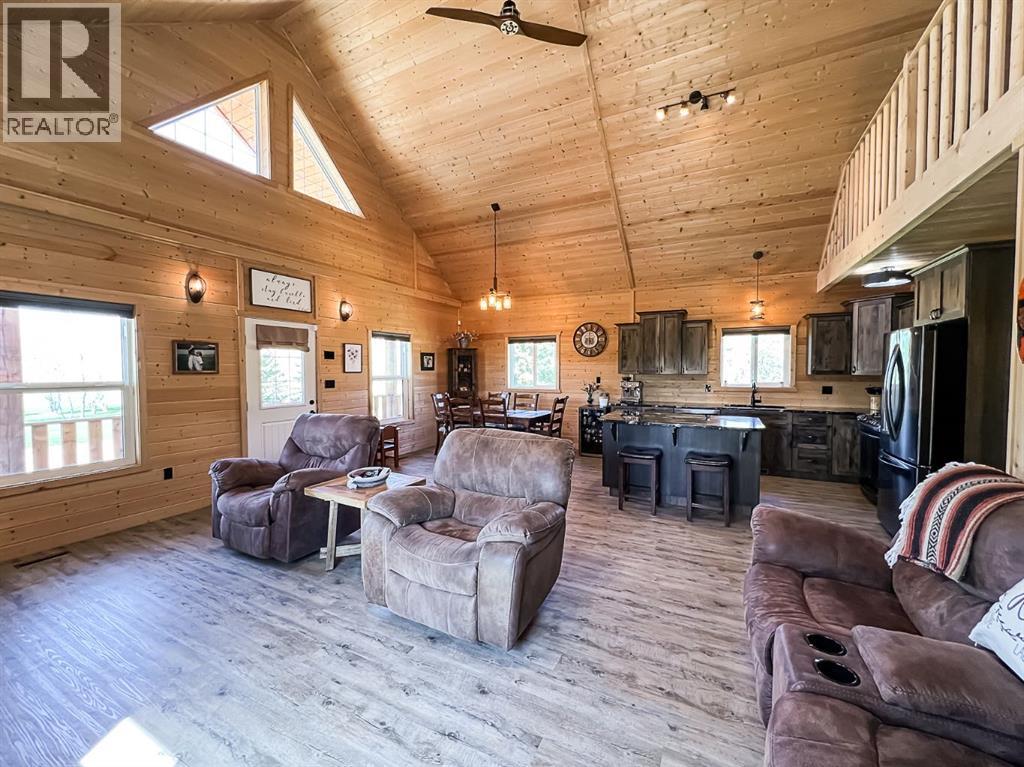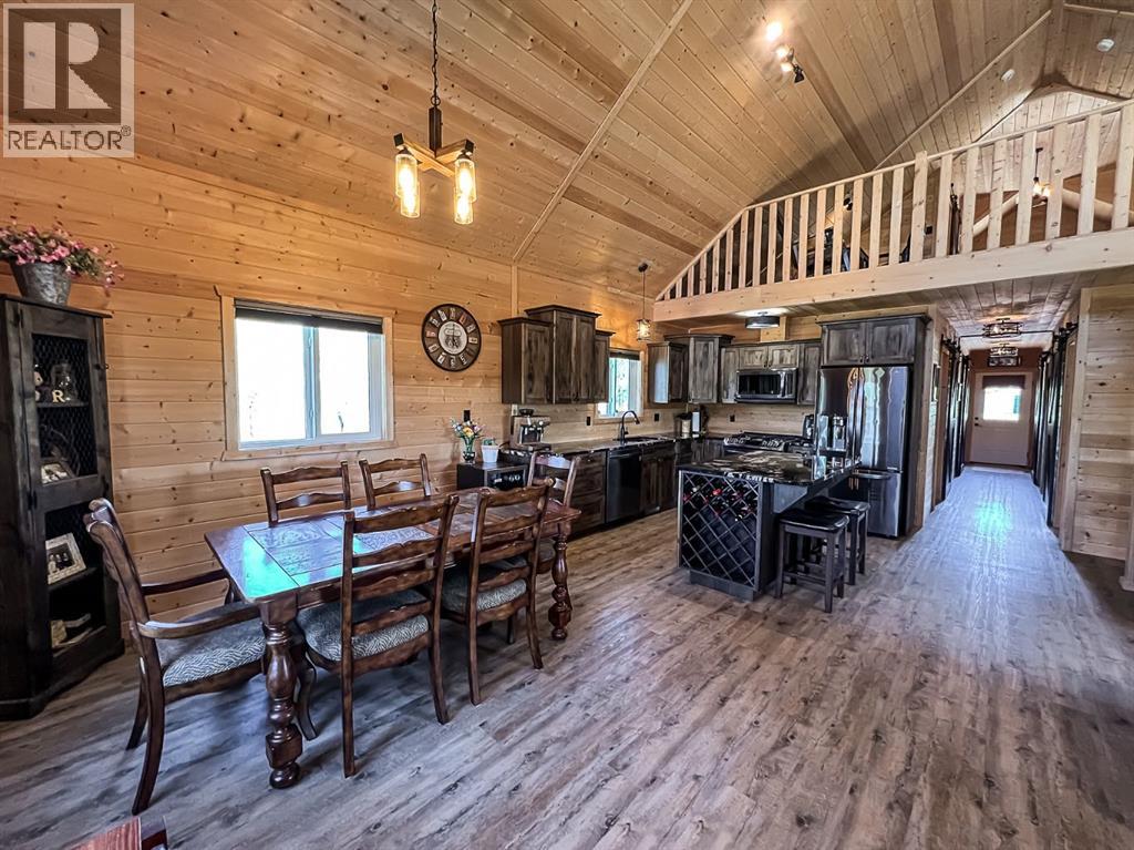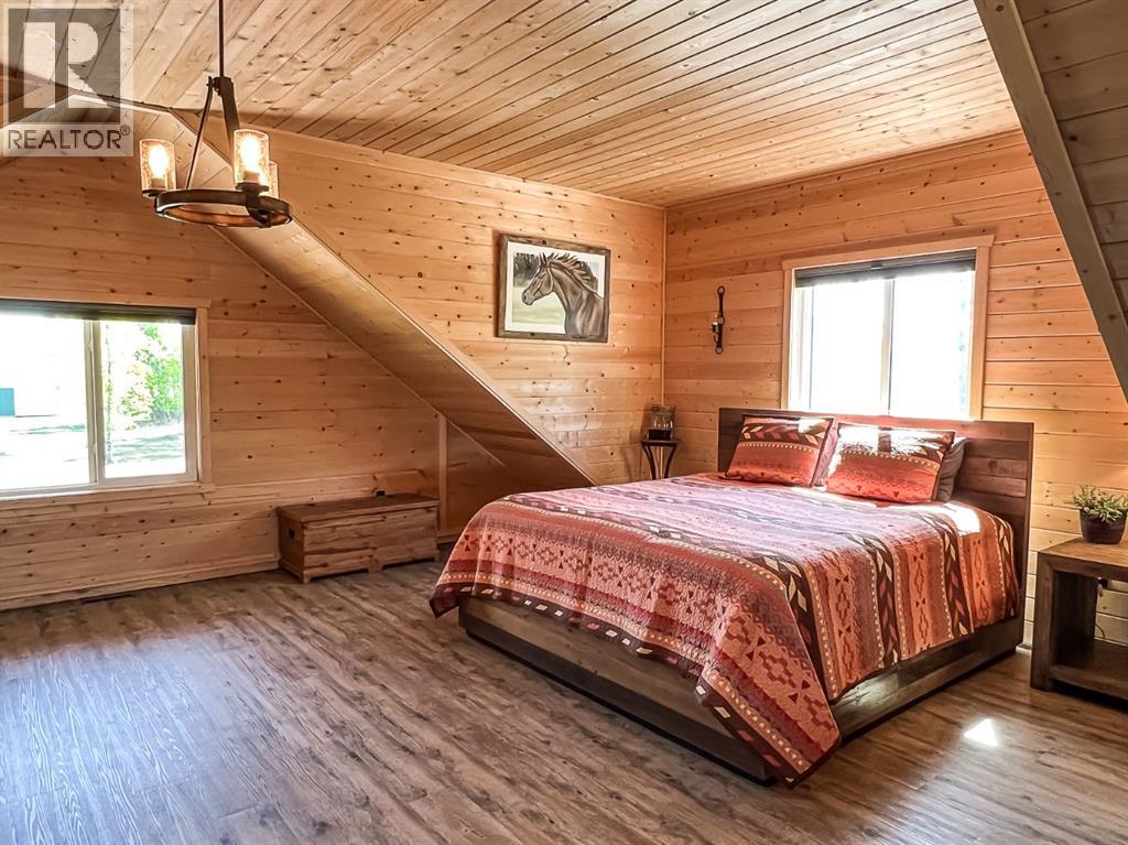 Just minutes south of St. Isidore, this beautifully crafted 1.5-storey Knotty Pine Home sits on a sprawling 156-acre property, offering the perfect blend of privacy, charm, and opportunity. Whether you dream of a peaceful rural retreat or the space to start a hobby farm, this property delivers. Step inside to soaring ceilings, a warm rustic aesthetic, and a bright open-concept layout filled with natural light. The spacious living and dining area features large windows and a cozy pellet-burning fireplace, creating an inviting atmosphere year-round. The kitchen is a true showpiece, complete with distressed hickory cabinetry, granite countertops, an eat-up island, and an abundance of cabinet and counter space, perfect for cooking, entertaining, and making memories. Upstairs, the entire level is a dedicated primary retreat featuring a private sitting loft, a full ensuite, and a walk-in closet, your sanctuary to unwind and recharge. The main floor offers two additional bedrooms and another full bathroom, ideal for a family or guests. Step outside and take in the peaceful prairie surroundings from either expansive decks. The covered front porch is the perfect place to enjoy stunning sunsets, while the back deck offers covered and uncovered areas, ideal for entertaining, dining, or simply soaking in the views. The beautifully landscaped yard leads to a 16x24 garage and a 36x48 insulated, wired barn/shop, giving you endless possibilities for storage, hobbies, or animals. As a bonus, the land is currently rented out, bringing in $7,150 annually to help offset property costs. The home is also connected to town water and features backup power with a generator offering extra convenience and peace of mind for rural living. This thoughtfully designed and exceptionally well-maintained home offers unmatched comfort, space, and peace of mind. From its quality craftsmanship to its panoramic prairie views, every detail has been carefully considered to deliver the ultimate country livi ng experience. The sellers would consider subdividing the property, offering approximately 10 acres for $550,000. Don't miss this rare opportunity, book your showing today and discover the perfect blend of serenity, style, and rural charm! (id:53676)