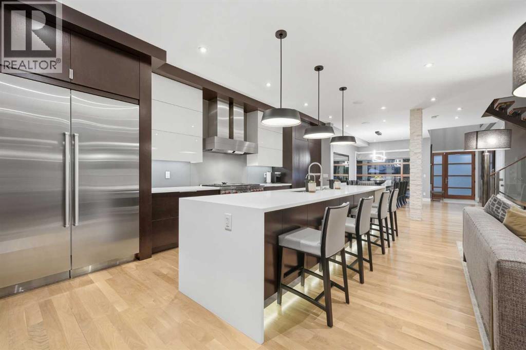 OPEN HOUSE SUNDAY, OCTOBER 19TH FROM 1-4 PM. Step into a home where elegance meets comfort in sought-after South Calgary. This stunning estate residence situated on a 37’x125’ lot spans over 4400 sq ft across 4 thoughtfully designed levels, offering 3+1 bedrooms, 3 full baths & 2 half-baths. Every corner has been meticulously crafted to create a living space that is both luxurious & inviting, blending modern style with practical functionality. The main level immediately impresses with soaring ceilings & abundant natural light, creating a bright, open atmosphere. The living room is a true centerpiece, anchored by a striking feature fireplace & refined finishes that add warmth & character. The chef-inspired kitchen complements this space beautifully, with quartz countertops, a generous central island perfect for meal prep or casual dining & high-end appliances designed to make entertaining effortless. The dining & family areas flow seamlessly from the kitchen, offering a natural setting for both everyday living and gatherings. A private office with elegant built-ins is tucked away just off the foyer - the perfect work from home space. Upstairs, the primary suite is a private retreat featuring generous proportions, a private balcony, cozy sitting area, huge walk-in closet & spa-like ensuite, create a peaceful atmosphere perfect for rest & relaxation. Additional bedrooms are spacious & thoughtfully designed, offering ample closet space, and flexible layouts that suit family life. Completing the second level is a 4 piece bath. The third level hosts a large family/media room, convenient laundry room with sink & storage plus a 2 piece powder room. There is also access to a rooftop patio, affording exceptional year round outdoor living. The fully finished basement adds versatility with a large game room & wet bar – perfect for game or movie night. An exercise room, fourth bedroom & 4 piece bath are the finishing touches to the basement. The private backyard features a patio with built-in BBQ & smoker, natural gas patio heater & additional deck with pergola - an ideal setting to entertain or unwind. This home is equipped with advanced smart technology, including Ring doorbells & cameras, coded door locks & a security system providing convenience, safety & peace of mind. A heated triple detached garage with ceiling storage offers ample room for vehicles & equipment, combining practicality with luxury. Located in a vibrant community with parks, top-rated schools, shopping, dining & recreational amenities nearby, this home offers a lifestyle of convenience & sophistication. From architectural details to premium finishes, every aspect has been thoughtfully executed to deliver an exceptional living experience. This residence represents a rare opportunity to own a meticulously crafted home in one of Calgary’s most desirable neighborhoods. With its combination of elegant design, functional layout & luxurious features, it truly embodies the best in modern living. (id:53676)
