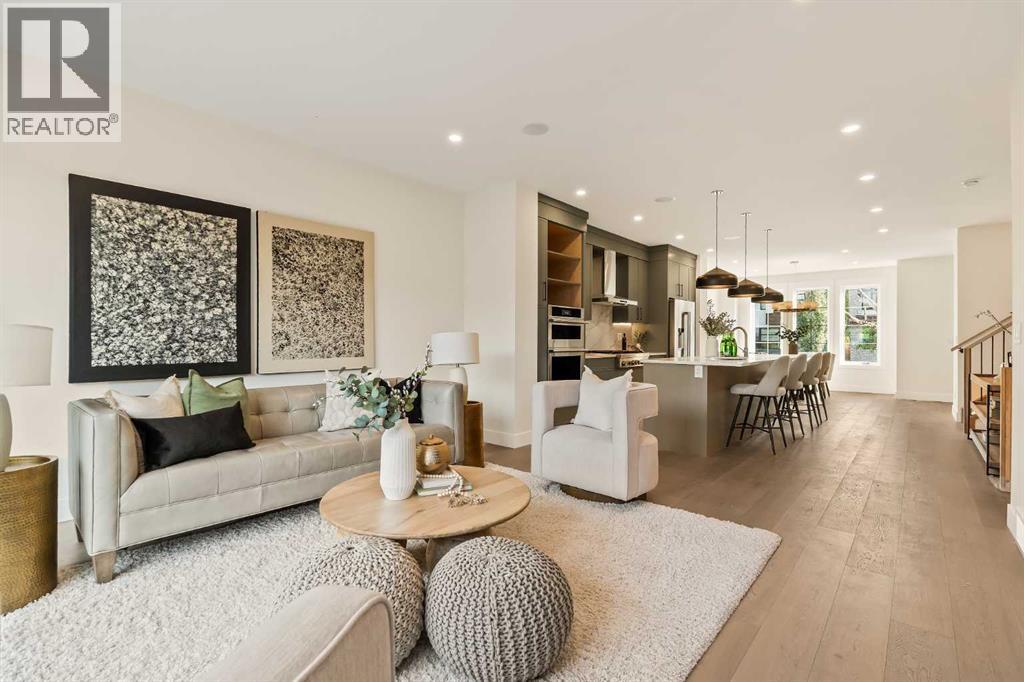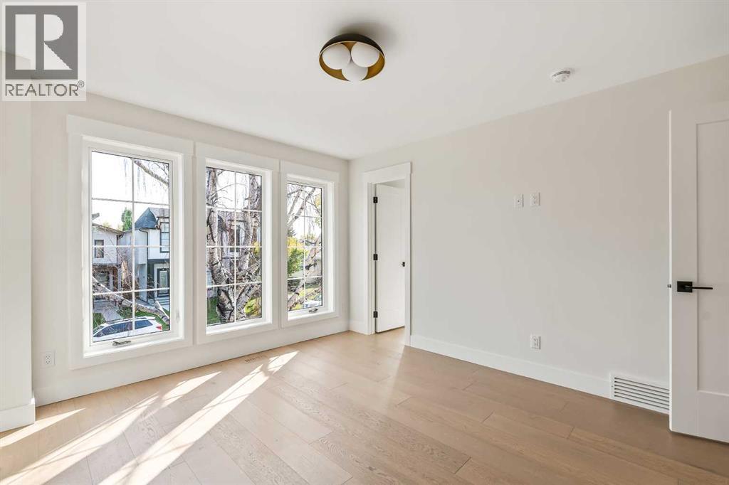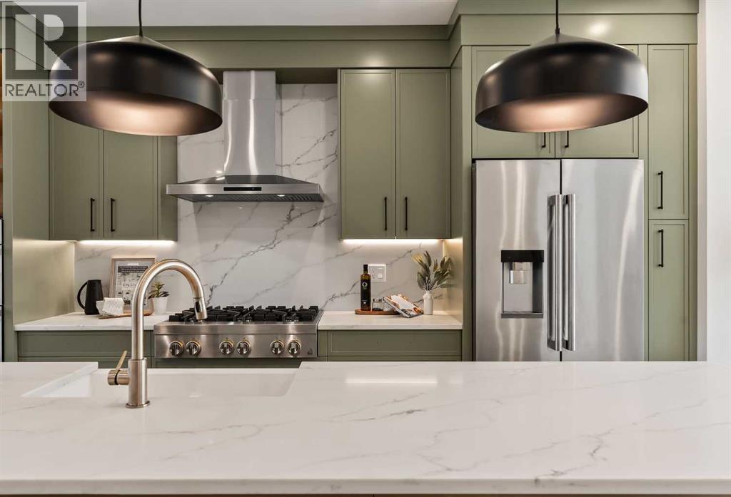 Proudly presenting a stunning urban-inspired masterpiece in the coveted community of Killarney. Thoughtfully designed & impeccably crafted, this three-story residence offers over 3650 SF of refined living space. The open-concept main floor showcases striking architectural details, including white oak hardwood floors, custom-milled cabinetry, oak & metal railings, & expansive windows that bathe the interior in natural light. The kitchen stands as a true showpiece featuring bespoke cabinetry with undermount lighting, exquisite quartz slab countertops & backsplash, premium JennAir appliances, Silgranit sink, & a impressive 12-foot island with seating for five. In the living area, a handsome floor-to-ceiling fireplace surround, & 8-foot garden doors make a bold yet sophisticated statement while white oak hardwood, mullioned windows, & an inviting dining area further elevate the curated, light-filled main floor. Completing the level is a convenient mudroom with built-ins & a pretty powder room. The gorgeous oak hardwood continues to the second level where the centrally situated bonus room is flanked by two distinguished bedrooms, each boasting its own ensuite with custom vanities, quartz counters, & beautifully tiled showers with glass doors while spacious walk-in closets with built-ins & large windows enhance the comfort & appeal of these inviting retreats. The third level is a sanctuary of elegance and comfort. The airy primary suite is flooded with natural light & features expansive sliding doors to a private balcony perfect for enjoying quiet morning coffee from the convenient beverage centre. The stunning ensuite exudes spa-like luxury with double custom oak vanities & refined quartz countertops, a dramatic steam shower, in-floor heating, & an opulent stand-alone waterfall tub. Completing this exceptional level is a considerable walk-in closet with extensive custom millwork. The professionally developed lower level delivers 900 SF of living space built with the same attention to detail. Providing a spacious family room, wet bar, fitness area, 4th bedroom with walk-in closet, & 5th bathroom this additional level makes an ideal area for entertaining or accommodating family members & guests. Equally impressive is the extraordinary curb appeal displaying genuine brick accents, James Hardie board cladding, acrylic stucco, mullioned windows, & an aggregate patio. The quiet West-facing backyard offers a tranquil setting perfect for children at play, summer barbecues, or simply unwinding at the end of the day. Other notable highlights of this remarkable residence include a double insulated & drywalled garage, Ply Gem windows with 2-year warranty, Delta fixtures, & 200-amp panel. Situated close to parks, shopping, schools, transit, & 17th Ave, this extraordinary property delivers a beautiful lifestyle in an excellent Killarney location. Welcome home to 2015 – 34 St SW where exceptional design meets timeless luxury. PHOTOS ARE FROM UNIT 2013. See Feature Sheet in Supplements. (id:53676)