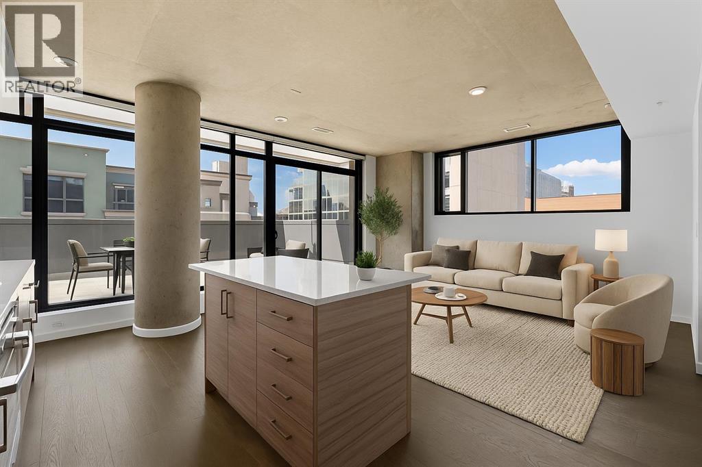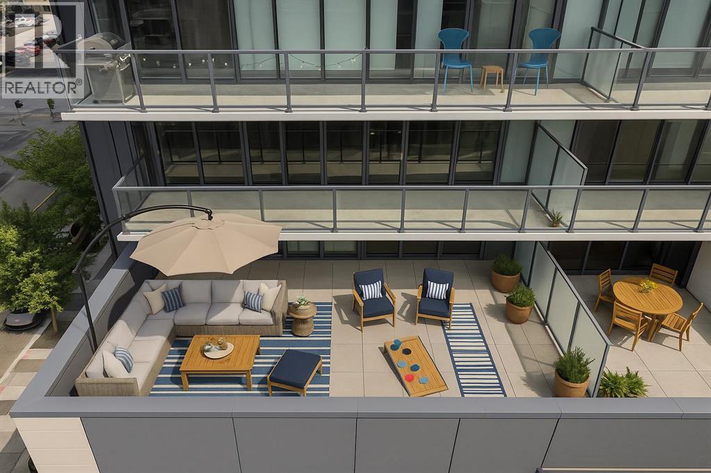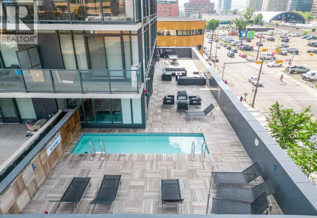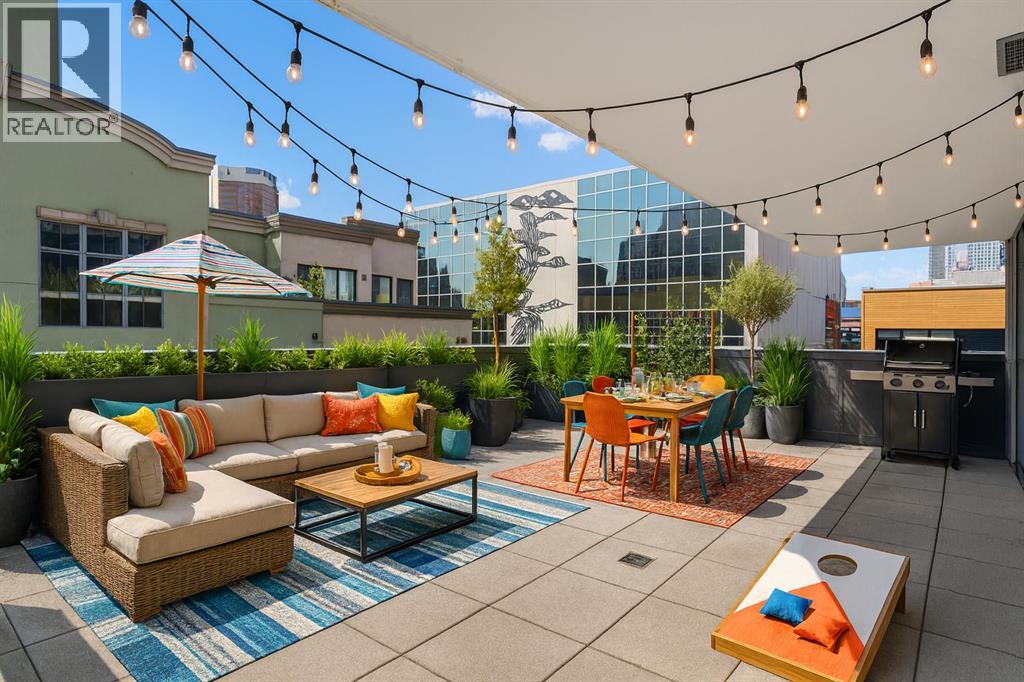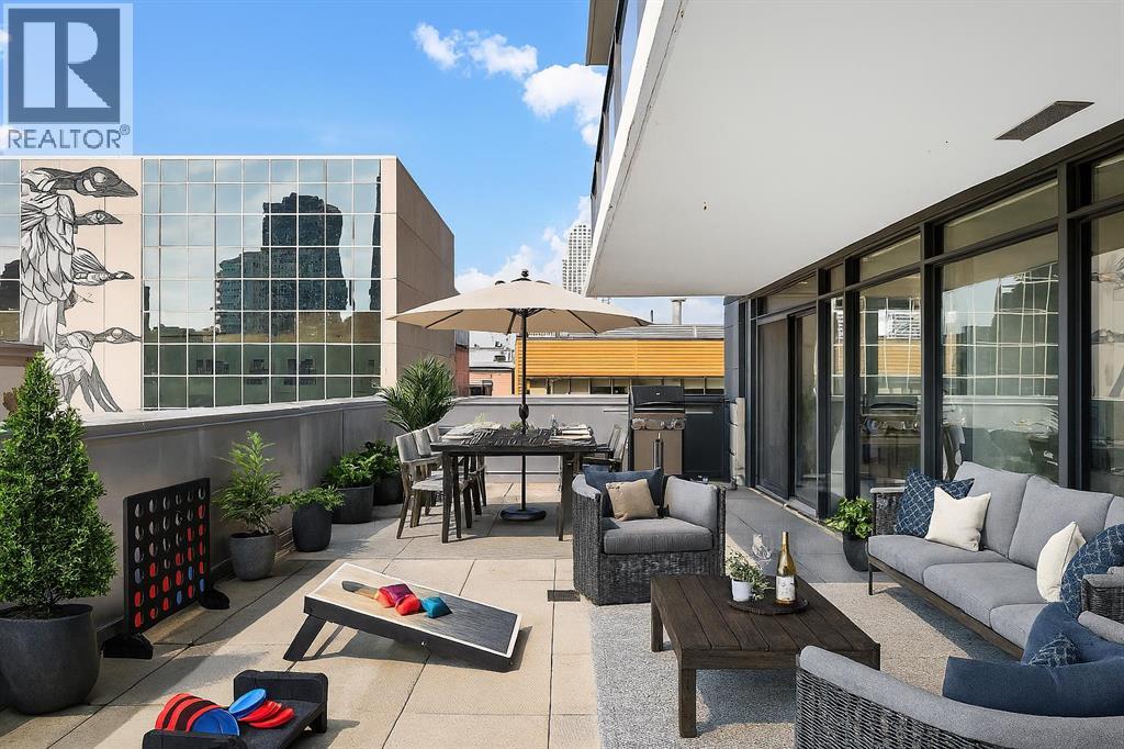 An AIRBNB dream investment with this nearly 500 sqft south facing outdoor patio terrace at 6th And Tenth. Creating a unique + memorable stay are how short term rental properties get booked more frequently and here you have a bright, open concept 2 bed + 2 bath layout with a giant exterior space that is drenched in sunshine - perfect for our seasonal months. Clean lines, modern designs, wall to wall windows + industrial loft-like concrete finishings make this space feel as unique as you are. Easy hosting access in and out create a home run feel for all your entertaining needs. Utilize the flex space next to the entry for a games area, dining room or home office. The primary bedroom is highlighted with the concrete feature wall, impressive windows, stylish en-suite bathroom and walk-in closet with organizers to really maximize the possibilities with your wardrobe. The second bedroom enjoys access out to the terrace and has a spacious dual door closet. The unit also comes with in-suite laundry, underground parking stall + storage locker. What to talk about convenience? How about having all the building's amenities on the same level. Enjoy the fitness room, owner's lounge + outdoor pool deck right outside your door. Also boasting executive concierge, loading dock, bike storage, exterior water features + an onsite Italian restaurant, you will feel right at home at 6th And Tenth. Showcasing a WalkScore of 97, this is one of the most enviable locations in the city as you are close proximity to fine restaurants, beer halls, cocktail bars, coffee shops, boutique shopping, grocery stores, c-train line and downtown office core. Please inquire for the financial projections on this smart investment! (id:53676)