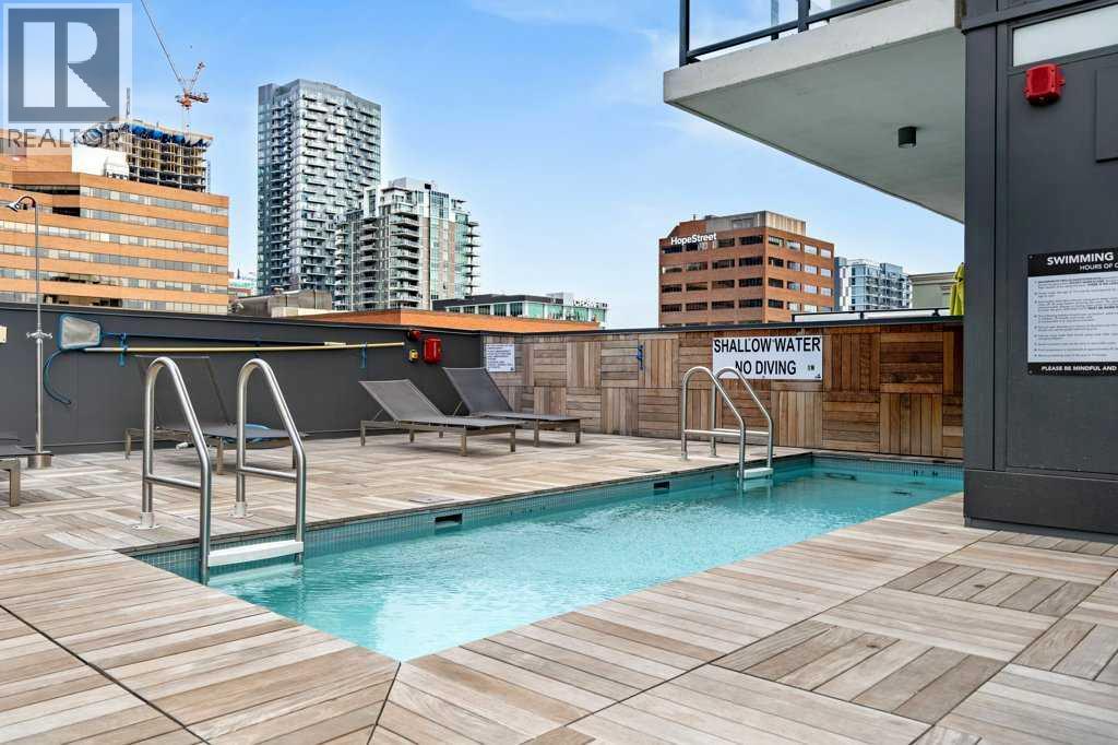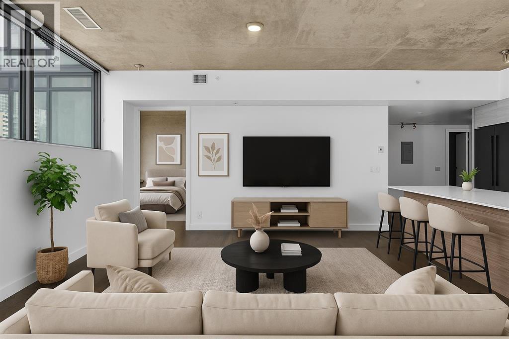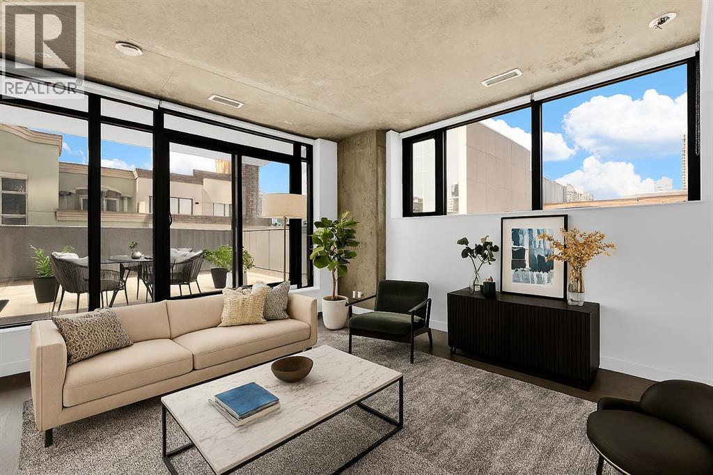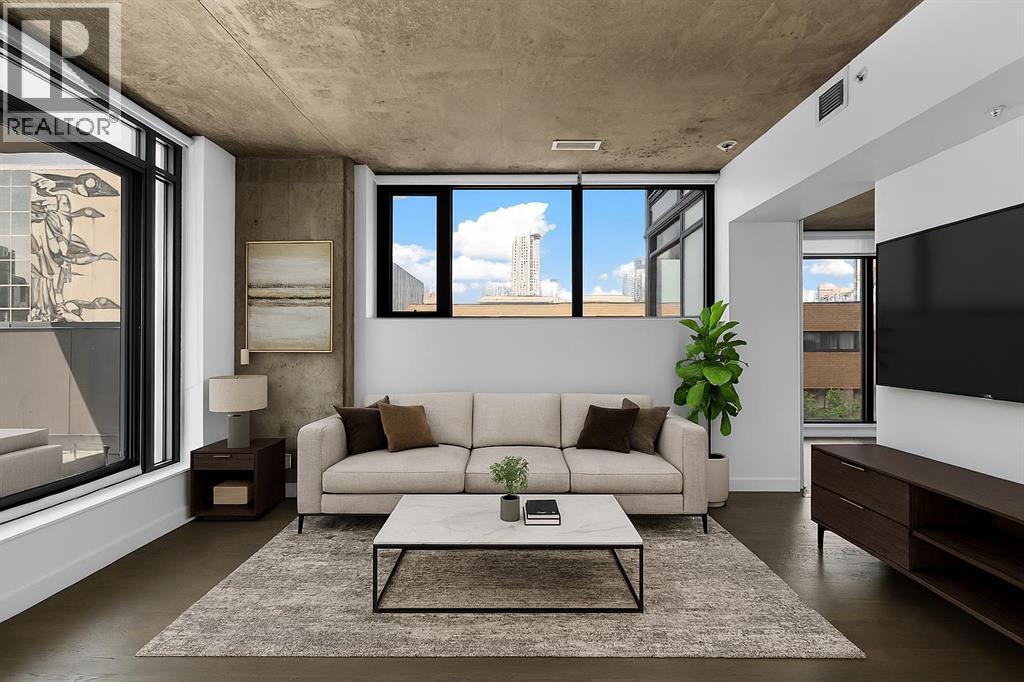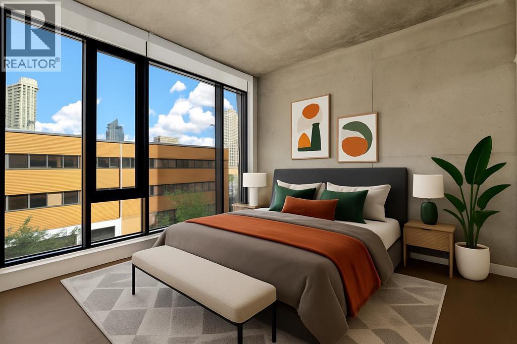 An AIRBNB dream investment with this nearly 500 sqft south facing outdoor patio terrace at 6th And Tenth. Creating a unique + memorable stay are how short term rental properties get booked more frequently and here you have a bright, open concept 2 bed + 2 bath layout with a giant exterior space that is drenched in sunshine - perfect for our seasonal months. Clean lines, modern designs, wall to wall windows + industrial loft-like concrete finishings make this space feel as unique as you are. Easy hosting access in and out create a home run feel for all your entertaining needs. Utilize the flex space next to the entry for a games area, dining room or home office. The primary bedroom is highlighted with the concrete feature wall, impressive windows, stylish en-suite bathroom and walk-in closet with organizers to really maximize the possibilities with your wardrobe. The second bedroom enjoys access out to the terrace and has a spacious dual door closet. The unit also comes with in-suite laundry, underground parking stall + storage locker. What to talk about convenience? How about having all the building's amenities on the same level. Enjoy the fitness room, owner's lounge + outdoor pool deck right outside your door. Also boasting executive concierge, loading dock, bike storage, exterior water features + an onsite Italian restaurant, you will feel right at home at 6th And Tenth. Showcasing a WalkScore of 97, this is one of the most enviable locations in the city as you are close proximity to fine restaurants, beer halls, cocktail bars, coffee shops, boutique shopping, grocery stores, c-train line and downtown office core. Please inquire for the financial projections on this smart investment! (id:53676)