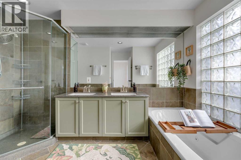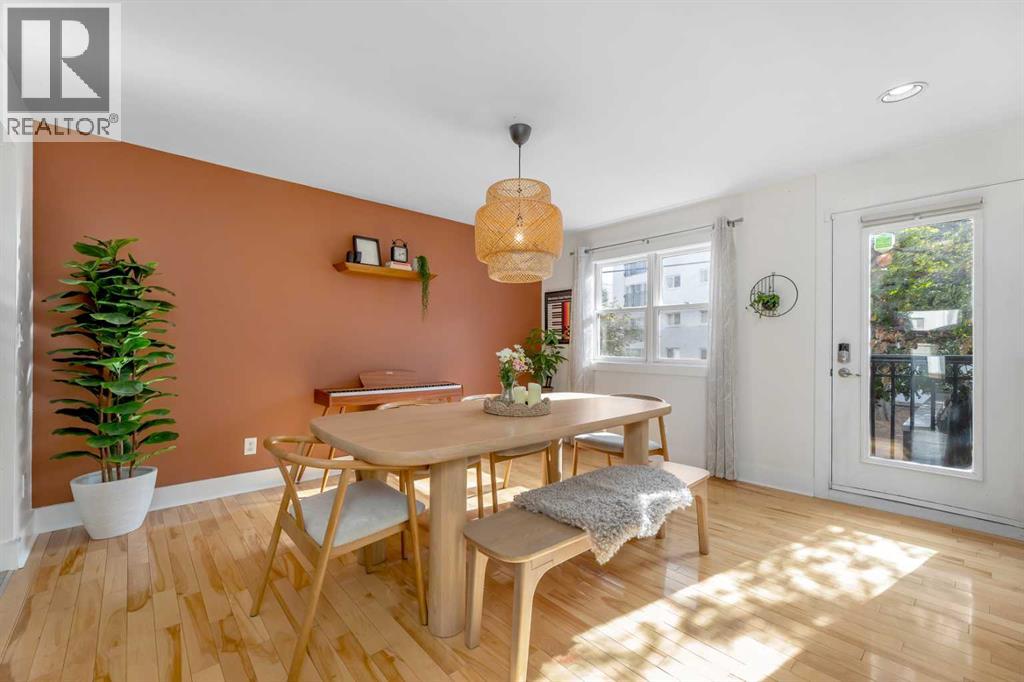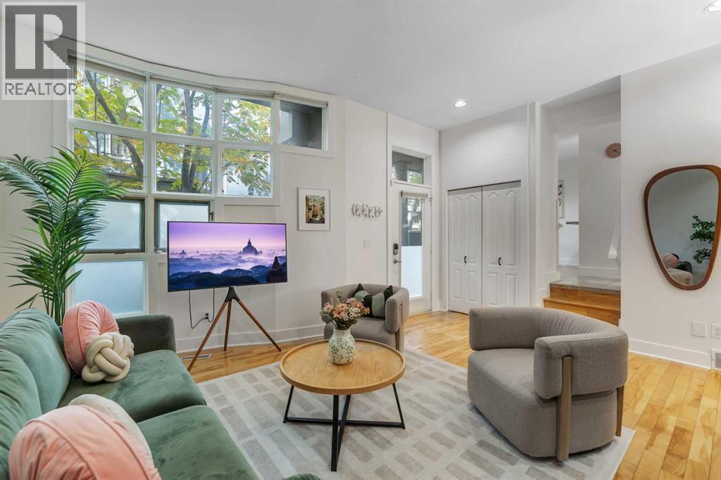 TIMELESS ELEGANCE // TOWNHOME W/ ATTACHED GARAGE, PRIVATE YARD & 2 BALCONIES IN SUNALTA! Discover a rare inner-city gem — a home that perfectly blends all the features you’d hope to find in a dream home in an incredible downtown location, without the compromise. Tucked away on a quiet, tree-lined street just steps from 17th Ave, this townhome in Terra Court offers over 1,400+ SQFT of beautifully designed space that’s filled with natural light and timeless character. From its curved architecture, picture windows and arched details to the warm hardwood flooring and gas fireplace, every element has been crafted to create an atmosphere of understated luxury. The main level opens with a sun-drenched living room featuring soaring ceilings and a cozy wood-burning/gas fireplace framed by custom built-ins. A few steps up, the formal dining area overlooks the living room below, connecting seamlessly to an updated kitchen with white shaker cabinetry, stainless-steel appliances, under-cabinet lighting and a charming breakfast nook perfectly placed by the oversized windows. Step outside to your private backyard, where mature trees provide a peaceful backdrop for your morning coffee, an evening glass of wine or room to take the party outside - a rare luxury in the inner city. Upstairs, the double master layout ensures both bedrooms are exceptionally spacious. The primary suite is complete with double closets, and a shared balcony that connects to the other bedroom. Down the hall is an exceptional spa-inspired 5-pc bath featuring dual sinks, a separate glass shower, and a deep soaker tub framed by an oversized glass block window. Upstairs laundry with full-sized machines adds everyday convenience. The cherry on top is another generous curved balcony with plenty of space to sit and relax with a good book. There is also access to the single attached garage which means no more cleaning snow off of your car. Set within a boutique 7-unit complex surrounded by century homes and mature t rees, this residence captures a feeling that’s increasingly hard to find — timeless design, urban walkability, and private comfort, all at an accessible price point. Down the block is the Calgary Tennis Club for sports enthusiasts or take a stroll through Royal Sunalta Park. Just a few minutes walk to 17th Ave means you have direct access to endless cafés, restaurants, parks, and all of the best amenities Calgary's Downtown Core has to offer. You also get access to the rest of the city through several major roadways including Crowchild Trail, 14th St, & Memorial Dr. Jumping in the car: Airport is a 24 min drive (17.5KM), & Banff is a 1 hr 23 min drive (125KM). (id:53676)