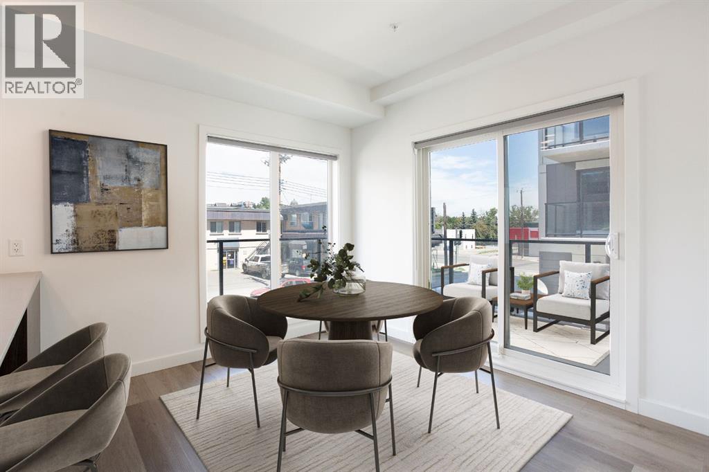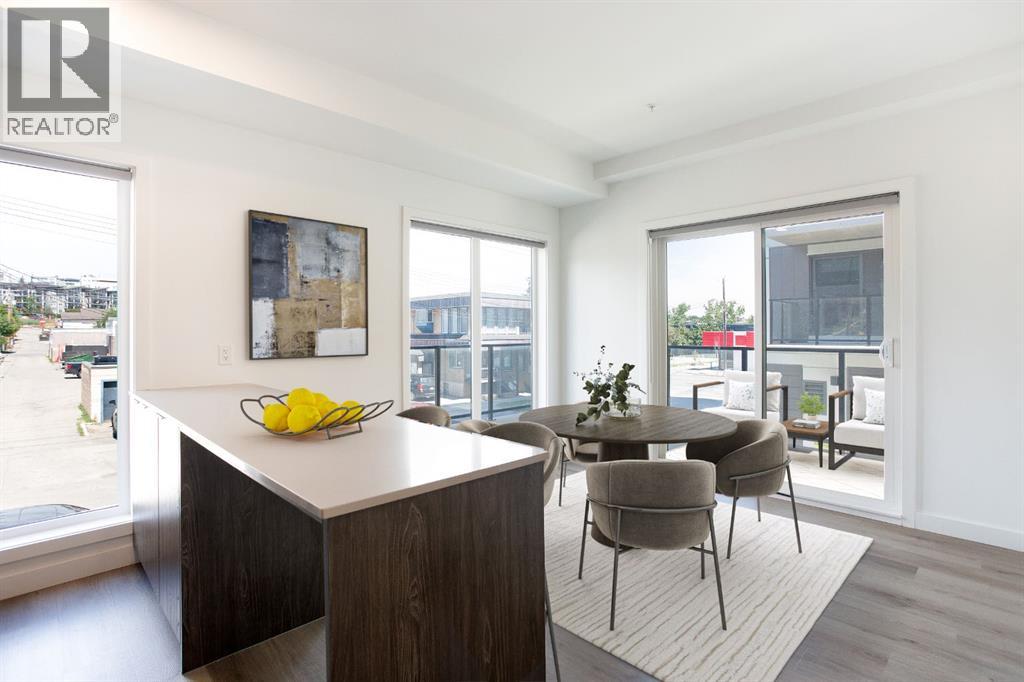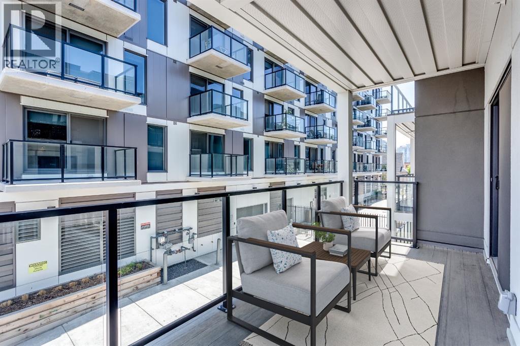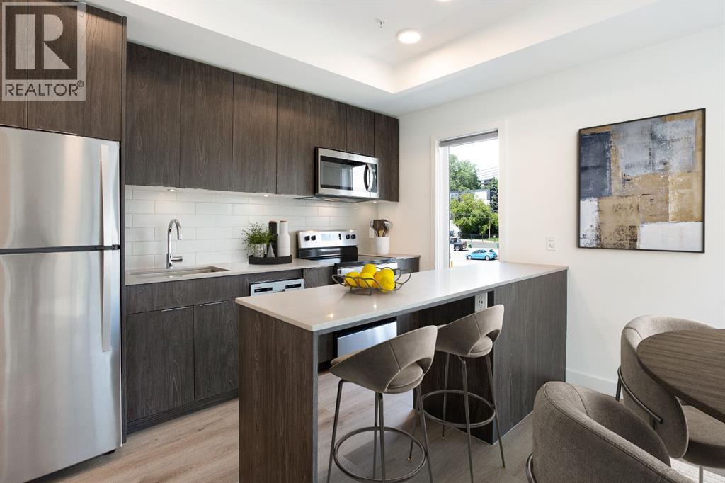Welcome to your new corner unit located at 202, 455 1 Avenue, a stunning Air BnB friendly, modern condo. Minto partnered with PCL, to design and construct this 2023 building, that perfectly blends style, comfort, and convenience. This bright and airy 2-bedroom, 2-bathroom home features a contemporary open-concept layout with large windows that flood the space with natural light. The sleek kitchen is designed with functionality and aesthetics in mind, offering an island with an eating bar, perfect for casual dining or entertaining. A spacious dining area flows seamlessly into the cozy yet open living room, creating a welcoming atmosphere for both everyday living and hosting guests. Step out onto the expansive private large wrap around balcony—ideal for morning coffee, evening relaxation, or summer BBQs. The primary bedroom is a true retreat, complete with a private 4-piece ensuite, while the second bedroom and bathroom provide comfort and flexibility for guests, a home office, or growing families. Thoughtfully designed with modern finishes throughout, this unit offers a perfect blend of practicality and style, making day-to-day living both easy and enjoyable.Situated in a desirable, amenity-rich neighborhood, this location offers the best of both convenience and lifestyle. Just steps from your door, you'll find an array of local cafes, restaurants, and boutique shops that give the area its unique charm. Enjoy leisurely strolls or active outings along nearby riverside pathways and green spaces, or take advantage of the close proximity to fitness centers, grocery stores, and essential services. Public transit is easily accessible, simplifying your commute whether you're headed downtown or exploring the city. With everything you need within reach—including your own spacious balcony oasis—this is a home that truly delivers on comfort, location, and modern living. (id:53676)