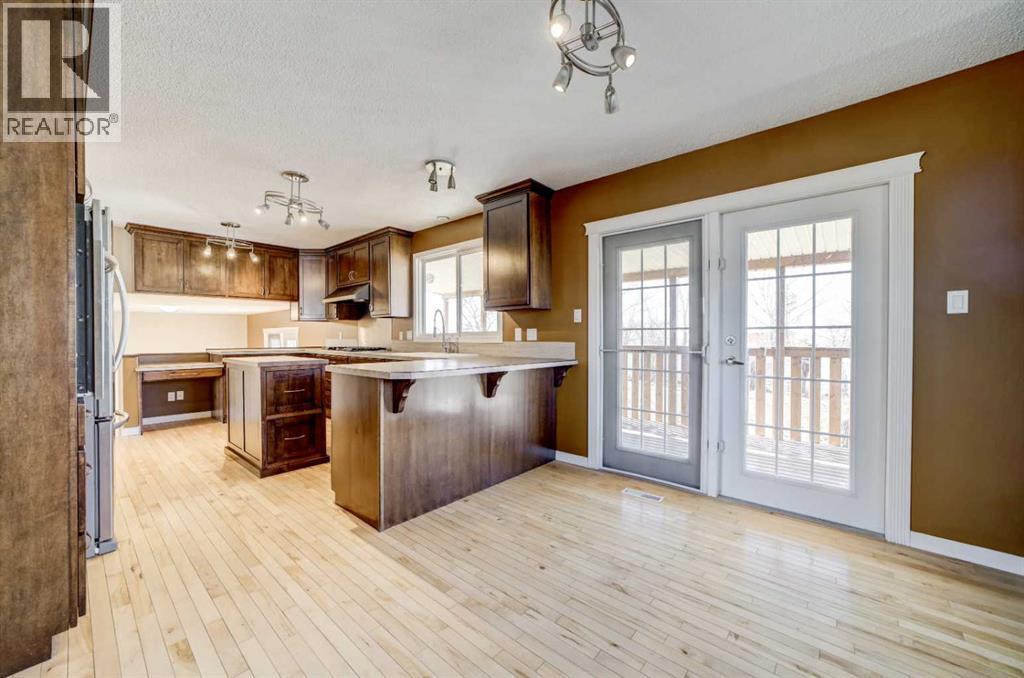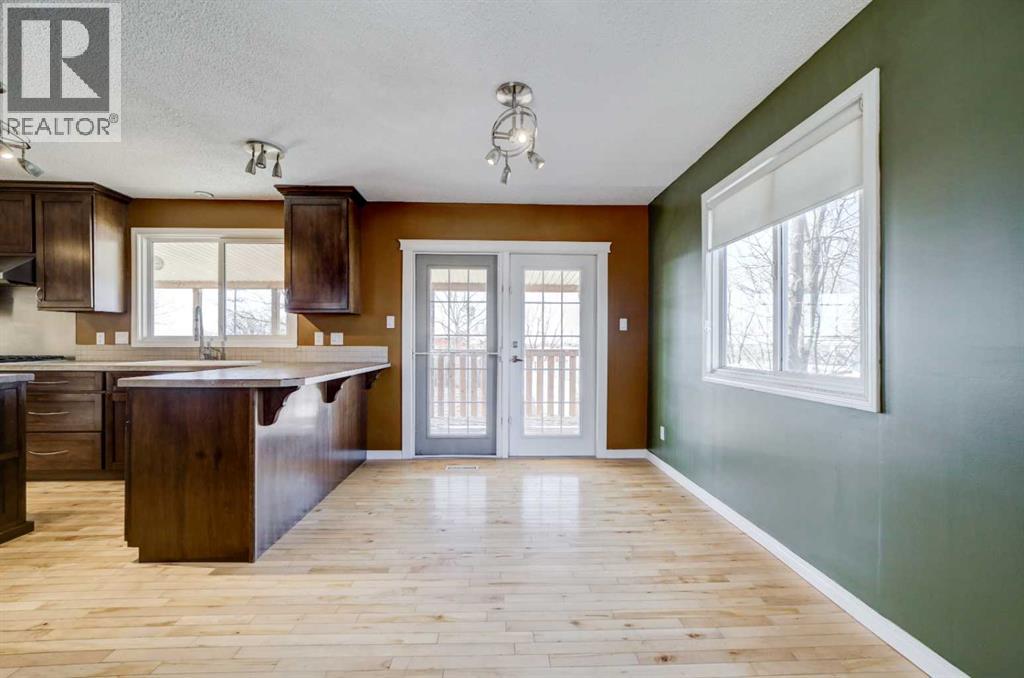If you’re looking for a solid family home with room to grow, this property offers exceptional potential. This 1,877 sq. ft. above-grade, two-story side-split sits on an oversized 9,600 sq. ft. corner lot with a rare, full-sized backyard that sets it apart from most corner properties and offers endless possibilities for a future garden, play area, or outdoor living space. Inside, the home is mechanically sound and thoughtfully designed for family living and entertaining. The updated kitchen overlooks the dining area, creating an open and connected feel, while French doors provide direct access to the backyard for seamless indoor-outdoor gatherings. A separate breakfast nook adds flexibility for casual meals or additional seating. While some other updates include windows and doors, newer appliances, and two high-efficiency furnaces with separate zoning, offering added comfort. The undeveloped basement level adds further value and flexibility, currently serving as a massive cold/canning room with impressive floor-to-ceiling storage shelving. This versatile area offers excellent storage today and development potential for tomorrow. Located in the peaceful community of Nobleford is just a 20 minute drive from Lethbridge, an easy distance from Fort Macleod, Claresholm, and under two hours to Calgary. It's true small-town living without giving up access to major services. It’s a quiet prairie community with space, privacy, and convenience all within reach. (id:53676)