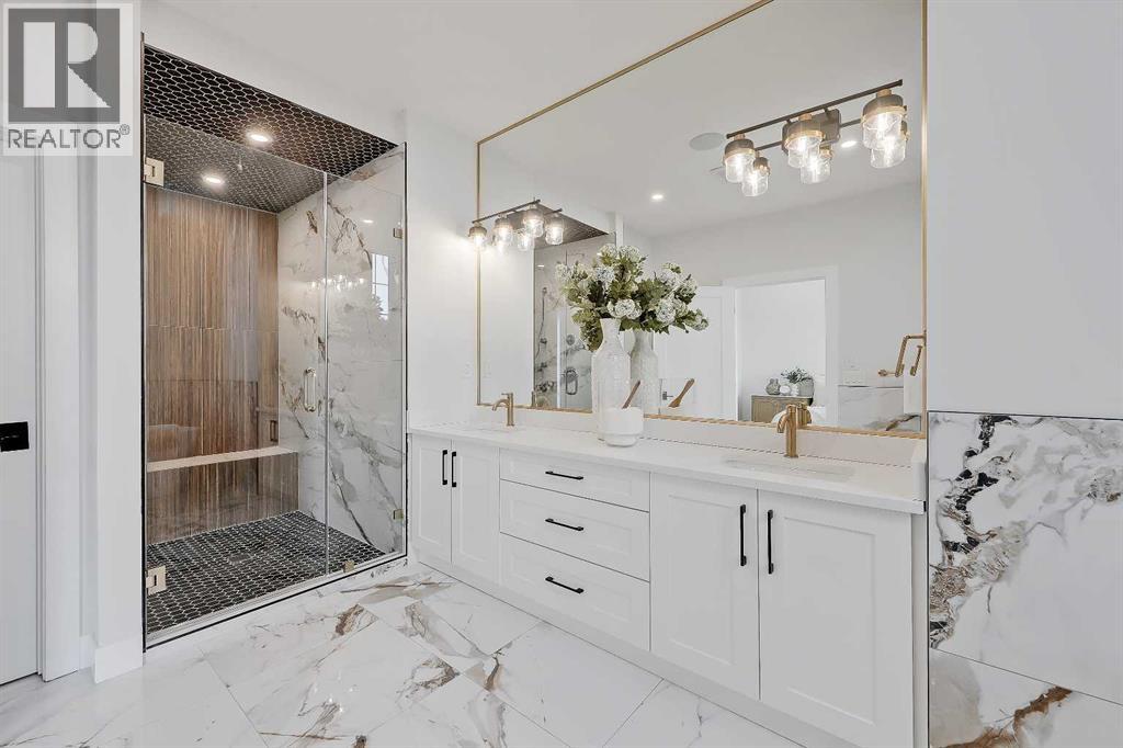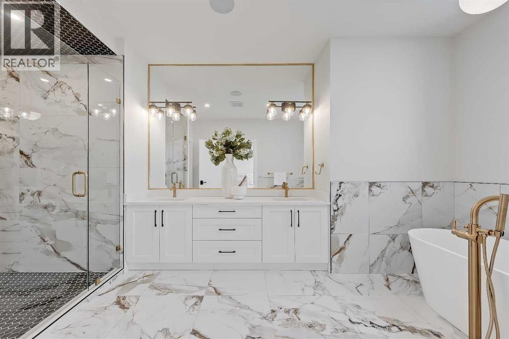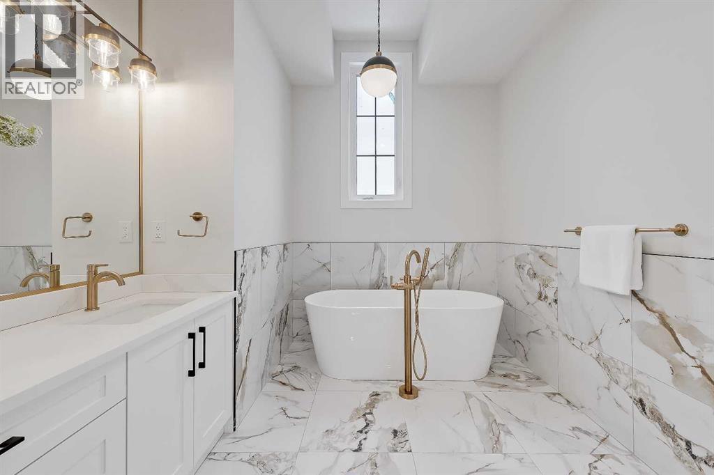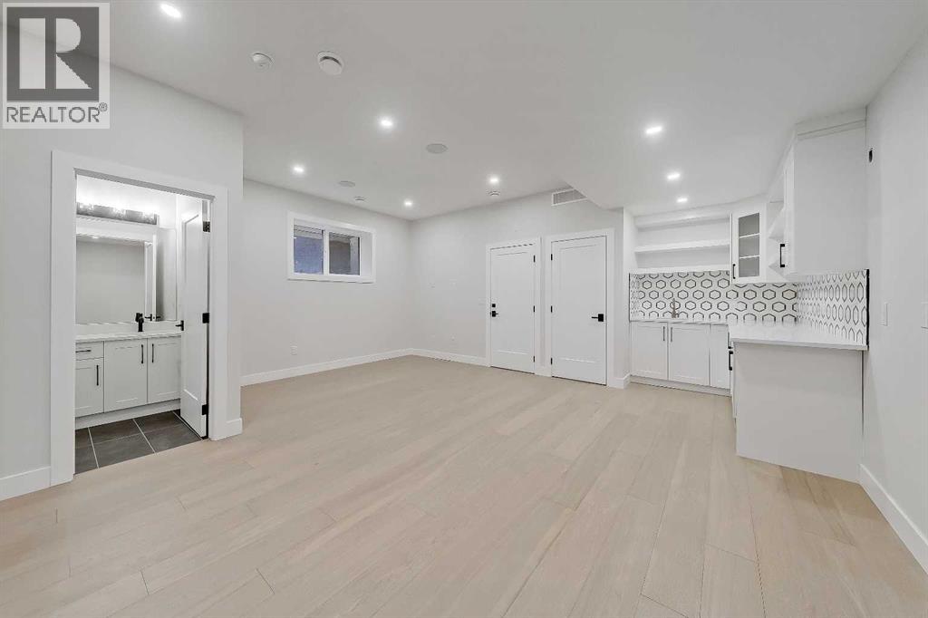 Striking design meets everyday functionality in this BRAND NEW inner-city infill, where curated finishes, a standout layout, and an ATTACHED DOUBLE GARAGE come together in a way that’s rarely seen. From the moment you step inside, DESIGNER TILE sets the tone, paired with clean lines, warm wood tones, and a bright, intentional flow that feels elevated without sacrificing comfort.The FOYER makes an immediate impression with statement tile and thoughtful storage, leading into a front PRIVATE OFFICE with oversized windows, ideal for working from home in a space that feels separate yet connected. Just beyond, the DINING ROOM sits in a central position, creating a natural transition between the front of the home and the main living areas, perfect for both everyday meals and hosting.The KITCHEN anchors the space with a long QUARTZ ISLAND, BUILT-IN OVEN, sleek cabinetry, and a layout designed to function as well as it looks. At the rear, the LIVING ROOM is warm and inviting, centred around a GAS FIREPLACE with CUSTOM BUILT-INS. Large sliding doors span the back wall, bringing in natural light and opening onto the deck and backyard for an easy indoor-outdoor connection. A discreet POWDER ROOM and smart storage complete the main level.Upstairs, the PRIMARY SUITE feels like a true retreat with VAULTED CEILINGS, large windows, and a spacious WALK-IN CLOSET. The ENSUITE is finished with a FREESTANDING SOAKER TUB, GLASS SHOWER, and DOUBLE VANITY, blending clean design with everyday comfort. Two additional bedrooms are well-sized and connected by a JACK & JILL BATHROOM, while the centrally located LAUNDRY room adds convenience exactly where it’s needed.The fully finished basement expands your living space with a large REC ROOM, WET BAR, and a fourth bedroom with its own WALK-IN CLOSET, plus a full bathroom. Whether used for entertaining, guests, or a private retreat, this level offers flexibility without compromise. Direct access to the ATTACHED DOUBLE GARAGE is paired wit h a functional MUDROOM entry, designed for real life.Outside, the backyard is private and usable, with space to relax and entertain. The elevated deck and large rear windows enhance the connection between indoor and outdoor living.Located in the heart of SOUTH CALGARY, this home offers quick access to MARDA LOOP, where you’ll find local favourites like MERCATO, VILLAGE ICE CREAM, and PHIL & SEBASTIAN COFFEE. You’re just minutes to RIVER PARK and the ELBOW RIVER PATHWAYS for walking, biking, and year-round outdoor living. Nearby schools include ALTADORE SCHOOL and CENTRAL MEMORIAL HIGH SCHOOL, with easy access to MOUNT ROYAL UNIVERSITY and downtown via 14TH STREET SW and CROWCHILD TRAIL.A refined home that delivers on layout, design, and livability, with features that truly set it apart. (id:53676)