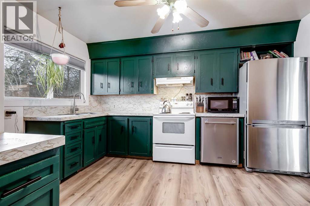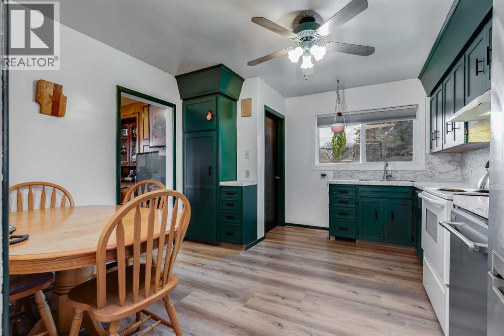 HUGE Lot | Legal Suite | Income Potential | Endless Possibilities. Welcome to this upgraded bungalow situated on a massive lot, offering outstanding affordability, redevelopment potential, and excellent income-generating opportunities. The bright and inviting main level features brand new vinyl plank flooring (2024), large sun-filled windows, and a spacious living area that flows seamlessly into the eat-in kitchen perfect for everyday living. Three well-sized bedrooms and a full bathroom w/ jetted tub, complete the upper level. Downstairs, you’ll find a charming and bright LEGAL basement suite with its own private front entrance. Finished with beautiful bamboo flooring, this very cute space includes a full kitchen, comfortable living area, bedroom, and a full bathroom. Shared laundry is conveniently located for easy access. With two separate furnaces, both levels enjoy independent climate control for added comfort and efficiency. Central A/C services the upper floor, the basement stays cool in the summer months without it. The basement is currently rented to a long-term tenant of over 20 years who would love to stay - offering immediate, stable income potential. Plenty of room in the basement for storage or to add another bedroom. Step outside to enjoy the expansive backyard - perfect for kids, pets, and entertaining. The low-maintenance, high-quality fencing provides both safety and peace of mind. An 8x10 storage shed adds extra functionality for tools and garden supplies. The oversized double garage (22x24) is insulated, heated, and equipped with 220V power ideal for a workshop or hobby space (radiant heater negotiable; workbenches excluded). The asphalt roof on the garage was done in 2019. There is also excellent RV parking and additional parking space for ultimate flexibility. Further upgrades include newer windows, central A/C, tankless hot water system, and dual furnaces serving both levels. This versatile property offers countless options live up, rent down, invest, or hold for future development. A rare opportunity with a large lot and built-in mortgage helper. Book your showing today! (id:53676)
