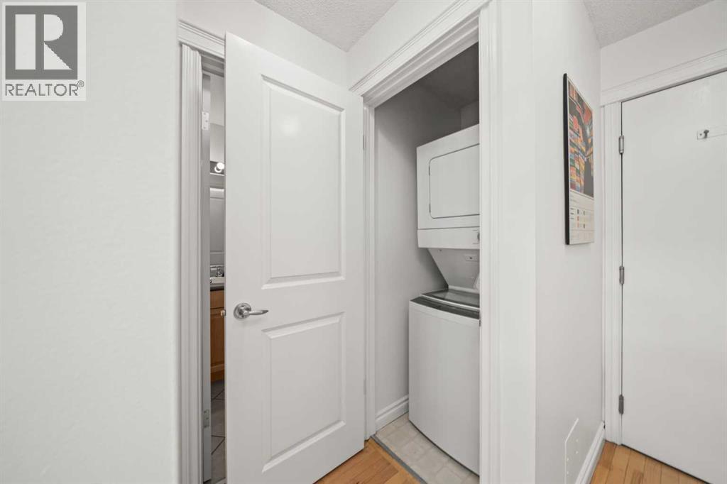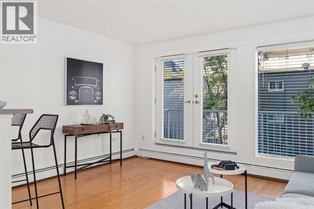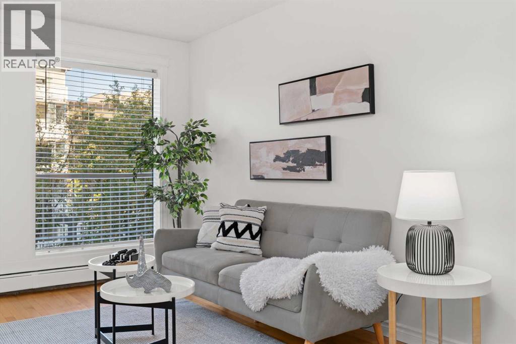 Discover this immaculate one-bedroom condo, perfectly located in the vibrant core of Calgary’s most bustling urban neighbourhood. Just steps from the city’s best cafes, restaurants, shops, and nightlife.Inside, large windows fill the space with natural light, while the Phantom Screens open onto a sprawling 23-foot balcony—perfect for a container garden, BBQ, or patio set where you can unwind in the sun or enjoy dinner outdoors. Even in the hustle and bustle of this central location, this condo feels remarkably peaceful thanks to its tree-lined street setting...truly the most ideal location in the Beltline. This condo feels larger than it measures, with every square inch perfectly designed for comfort. The open concept of the main area blends the kitchen with eating bar into the living/dining area, while the bedroom feels private and is adjacent the full bathroom. Laundry is easy, with ensuite washer/dryer. Adding to its urban appeal, both sides of the building have been transformed with vibrant BUMP murals created by top local and international artists, enhancing the building’s character and reflect the creative spirit of the neighbourhood. This concrete building is quiet, exceptionally well managed, and has recently seen major upgrades including a new roof and elevator. A strong sense of community shines through—long-term residents greet each other in the hallways, while the immaculately maintained front garden rivals some of the city’s parks. Secure bike storage, as well as convenient compost, recycling services, add to the ease of everyday living. Park off street in your assigned stall. Commuting and errands are effortless with the 15th Avenue cycle track at your doorstep, quick access to multiple grocery stores (Save On Foods, Safeway, Co-Op, Community Natural Foods), pharmacies, and a wide array of retail options including Canadian Tire, The Bike Shop, and Atmosphere. You’ll also be steps from Tomkins Park and just minutes from the Downtown Core, Kensingt on, Mission, Prince’s Island Park, and the Elbow River pathways. Excellent access to bus routes, LRT, and cycle networks means you can get anywhere with ease. Pet friendly ( with board approval) (id:53676)