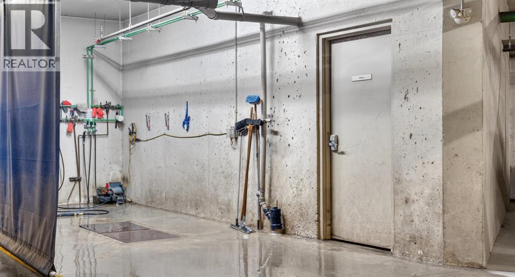 Here is your opportunity to reside in Lofts on the Bow, Cochrane’s gold standard for 55+ adult living. Proudly offered by the original owner, this is currently the only unit available in the building. Just across from the Bow River, this beautifully designed concrete building is inspired by alpine architecture, featuring a striking blend of stone masonry, timber accents, and expansive glass, along with in-floor heating throughout. Upon entering, you are greeted by open balconies and a grand maple staircase, creating an impressive sense of arrival as it opens to the amenities beyond. The building offers numerous thoughtfully designed common areas with chateau-esque furnishings throughout, providing inviting places to gather, connect, and relax. This 2nd-floor end unit features a unique single-level floor plan, exclusive within the building and offering a rare third window that brings in additional natural light. With 9' ceilings and an open design, the home feels bright and airy. The layout (Virtually Staged) places the bedrooms and bathrooms on opposite sides of the unit, enhancing both privacy and flow, with generously sized bedrooms, including a primary bedroom with a walk-in closet. A dedicated laundry space with stacked washer and dryer adds everyday convenience. The kitchen is finished with stainless steel appliances, granite countertops, a breakfast bar, a deep pantry, maple cabinetry, and under-cabinet lighting, blending style and function. Additional features include multi-directional blinds and optional air conditioning already installed for year-round comfort. The unit is also pre-wired for a home theatre system. As an exterior end unit, you benefit from added privacy along with direct proximity to the stairwell, providing convenient access for groceries or quick entry into the building. Step outside onto your private balcony with northeast views of St. Peters Church, the Bow River, and the soccer fields, complete with a built-in storage locker. It’s not u ncommon to spot deer grazing in the fields nearby, adding to the peaceful setting. The unit also includes a titled underground parking stall, ideally positioned as an end stall for added ease when parking and maneuvering, along with plenty of additional surface parking available for owners and visitors. Enjoy an amenity-rich lifestyle, including a fully stocked community kitchen and large banquet hall, an open billiards room, a central south-facing courtyard backing onto a nature reserve with a stone fireplace, barbecue, pergolas, and benches, a flex/games room, fitness centre, a coffee bar and sitting area on the 2nd floor, a library on the 3rd floor with river views, a quiet loft lounge on the 4th floor, multiple guest suites, and a convenient car wash bay. Additional conveniences include short-term RV parking, perfect for unloading and settling in after long trips. This is not just another place to live, but a completely different way to live. (id:53676)