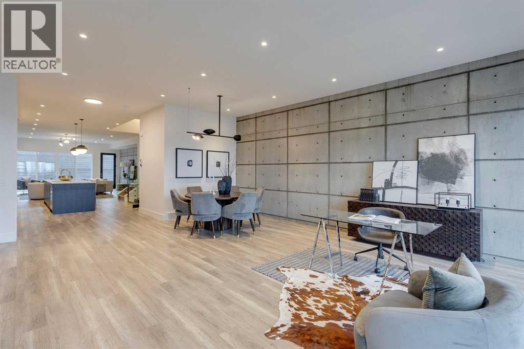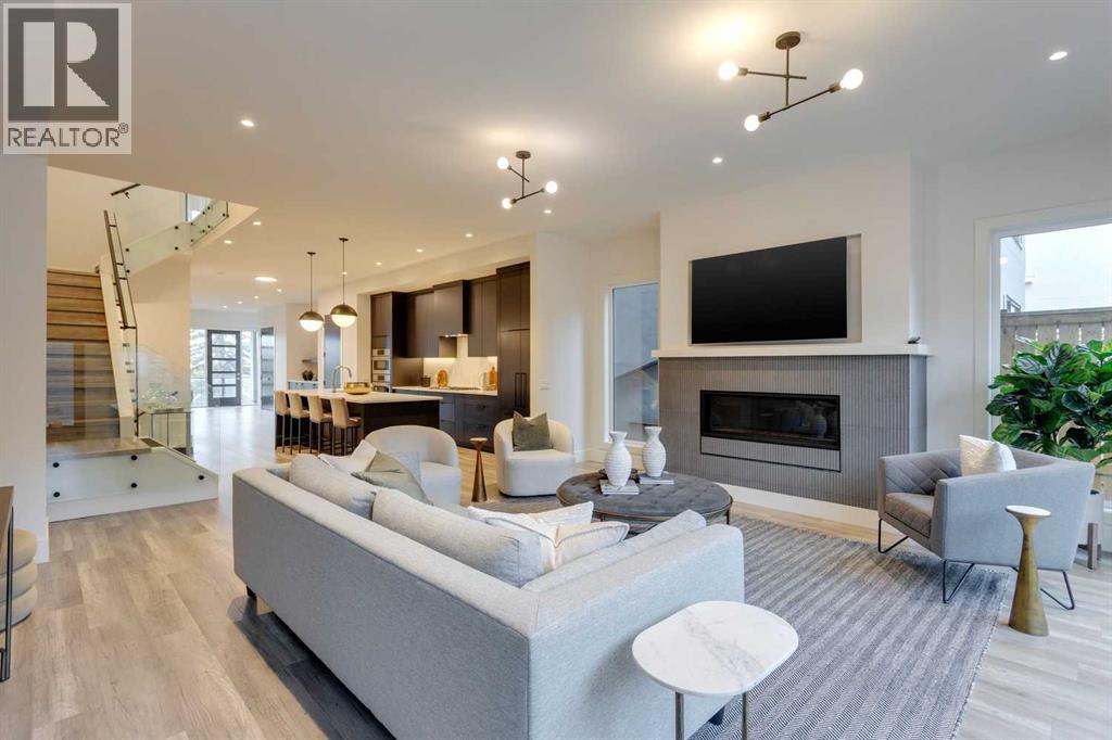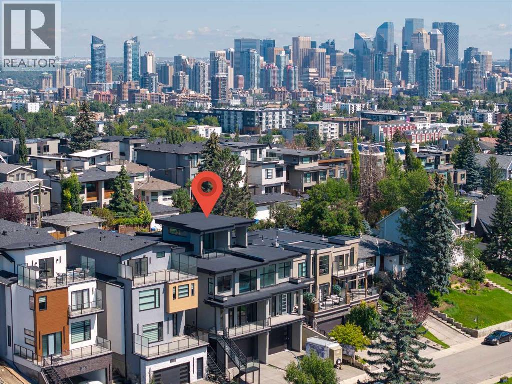 Built by renowned Design Factor Homes with over 30 years of construction experience & a part of National New Home Warranty. Seldom do homes come to market with such attention to detail & quality construction - truly an engineers dream! Perched on 30th Avenue in coveted South Calgary with MOUNTAIN VIEWS & beautiful city vistas, this modern, elegant 3 bedroom home, built by Design Factor Homes offers over 3800 sq ft of exquisite, developed living space. The open & airy main level presents lofty ceilings, stylish light fixtures & feature concrete demising wall showcasing the front sitting area & spacious dining room with ample space to host family & friends. Create culinary masterpieces in the kitchen that’s tastefully finished with quartz counter tops, island/eating bar, an abundance of storage (including pantry) & high-end appliance package. The living room is anchored by a feature fireplace & has direct access to the back patio. A 2 piece powder room completes the main level. Ascend the contemporary staircase with glass wall to the second level that hosts 3 bedrooms, a 5 piece main bath & laundry room with sink & plenty of storage. The spacious primary bedroom is a true oasis, boasting it’s own wet bar, 2 walk-in closets & luxurious 6 piece ensuite with in-floor heat, dual sinks, relaxing freestanding soaker tub & rejuvenating steam shower. Revel in unobstructed mountain & city views from the rooftop patio – the perfect venue for morning coffee or watching a gorgeous sunset. Basement development includes a family/media room – perfect for game or movie night. A 3 piece bath & storage room are the finishing touches to the basement. A mudroom provides access to the heated double attached oversized garage with towering 13’ ceiling. This meticulously built home is conveniently located within walking distance to vibrant Marda Loop & close to schools, shopping, River Park & easy access to Crowchild Trail. (id:53676)