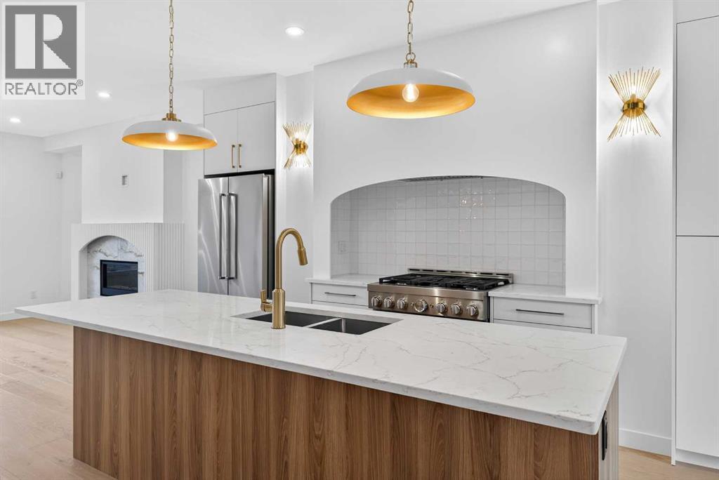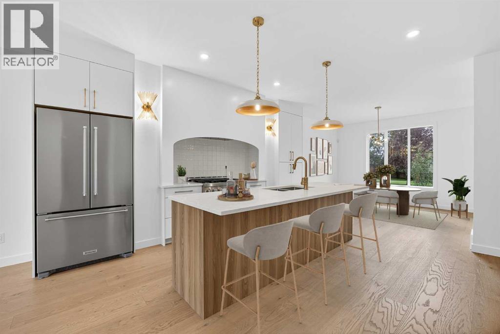 Ideally located in the wonderful community of North Glenmore Park, this 3 +1 bedroom custom built infill is beautifully appointed. The front door opens to a generous entrance way opposite a lovely dining room overlooking the fully landscaped front yard. The open concept floor plan flows smoothly from the dining room to the spacious kitchen with custom hoodfan and large island, perfect for entertaining. It then moves to the beautiful living room overlooking the fully fenced in and manicured backyard and porch. The adunance of natural light highlights the engineered oak hardwood floors, quartz counters and lovely light fixtures & plentiful cabinetry. The upper floor master bedroom is a true oasis with a lovely ensuite and spacious walk in closet. The other two bedrooms are generously sized with the main bath easily accessable to both. Upper laundry and nook finish off the upper level nicely. The basement is fully finished with a family room and wet bar, bedroom, bathroom, nook and storage. The oversized garage, fully fenced in & landscaped yard with underground sprinkler system finishes this property off very nicely. Hard to beat this amazing location which is close to a plethora of schools, bike pathways, public pool, running track, transit, hockey & curling arenas and be 7 min from DT. Book your appointment today! (id:53676)