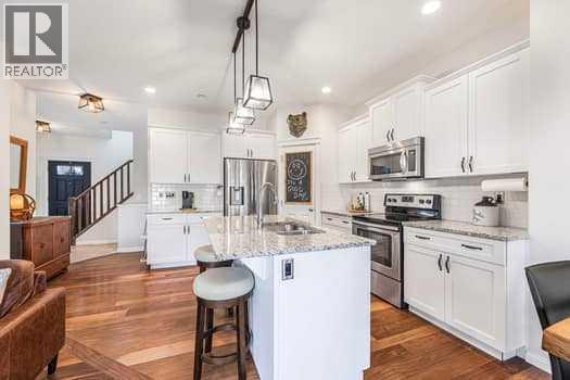 OPEN HOUSE Saturday Oct 18, 1-3pm. Charming fully finished family home located in the heart of Heartland. Situated across from the park, sunlight floods into the vaulted bonus room, offering picturesque views! Featuring 3 bedrooms and 3.1 baths, this fully finished home is designed for your family's comfort. The open concept main living area includes a cozy fireplace, while the finished basement offers a 4-piece bath and ample storage. The spacious, bright bonus room with vaulted ceilings overlooks a beautiful park and green space. New carpet and freshly painted through-out the upper level. Lower level offers finished space and a 4pce bath, plus loads of storage! The backyard boasts new sod, raised garden box, and a covered deck with louvered screens for ultimate privacy and relaxation. Front yard is hard scaped offering no maintenance and great curb appeal! Close to walking trails and the Bow River path system. Easy access to the mountains and the highway to Calgary. This home truly has it all—don't miss out on this gem! (id:53676)
