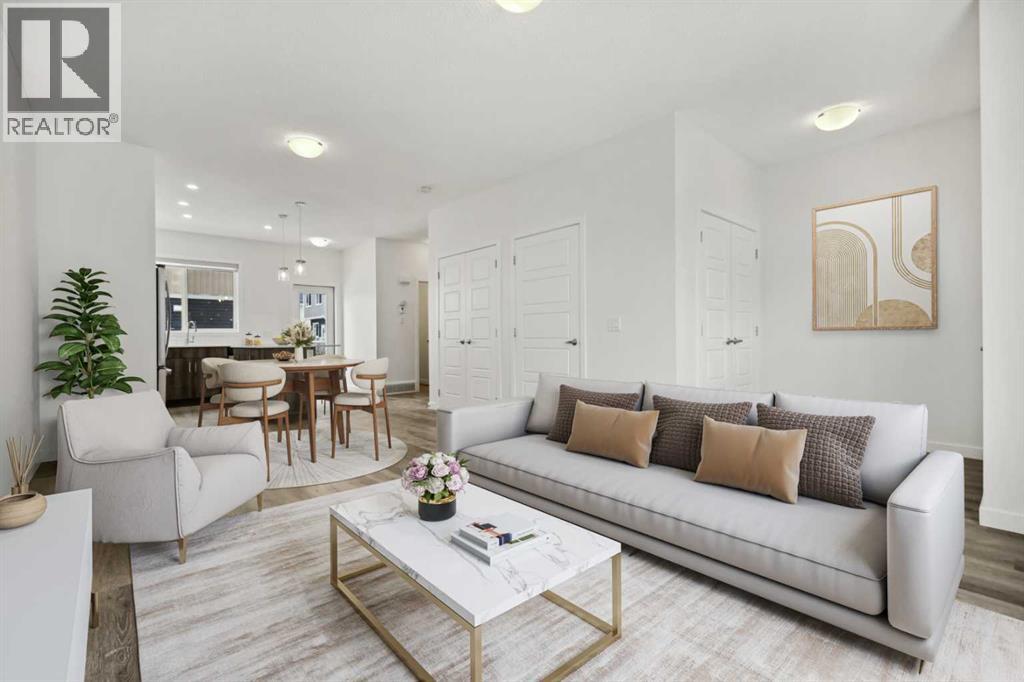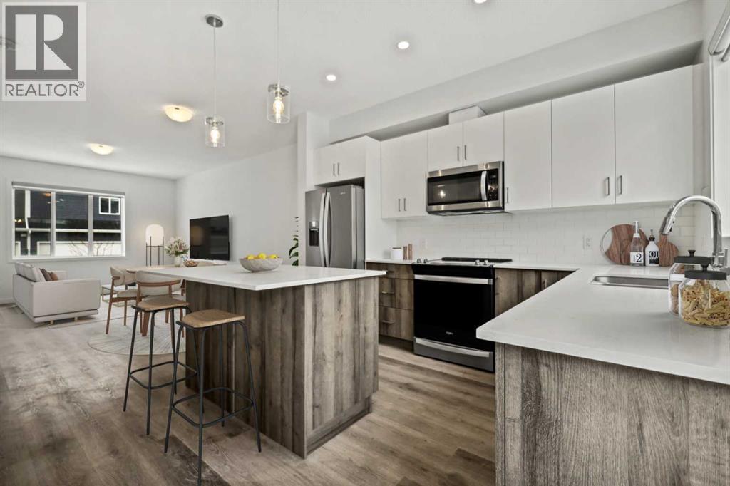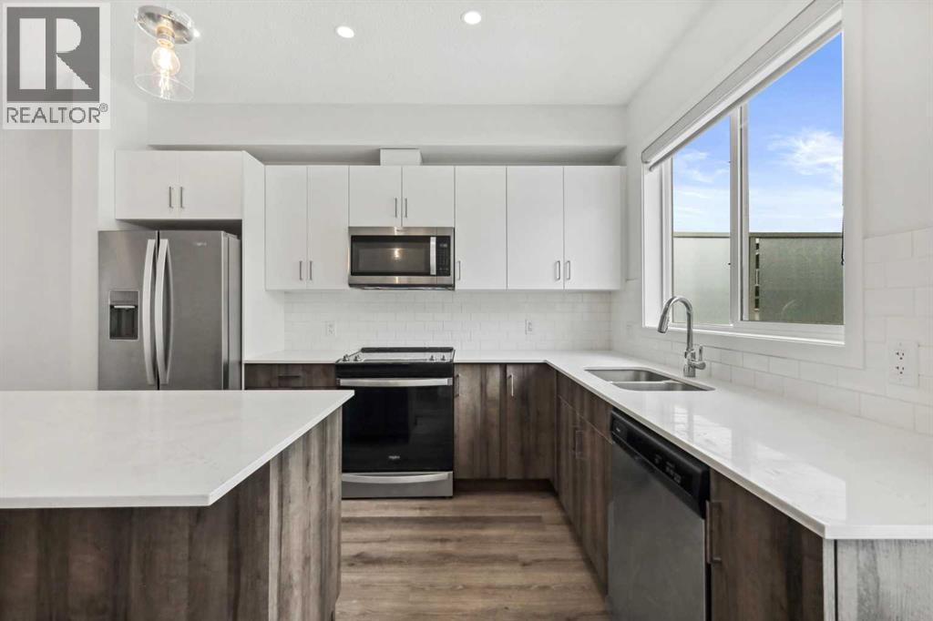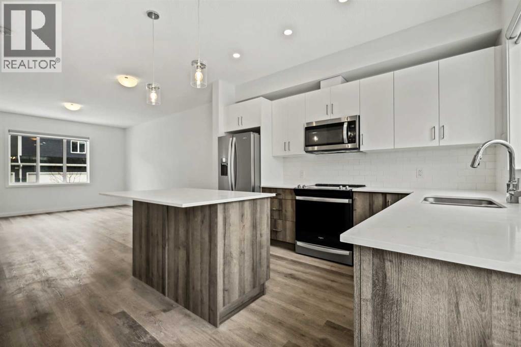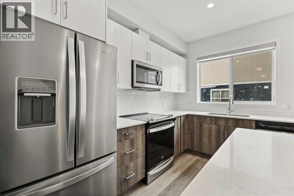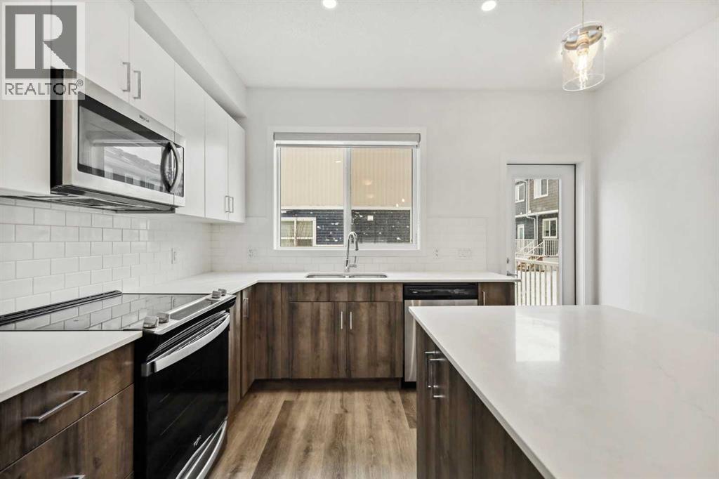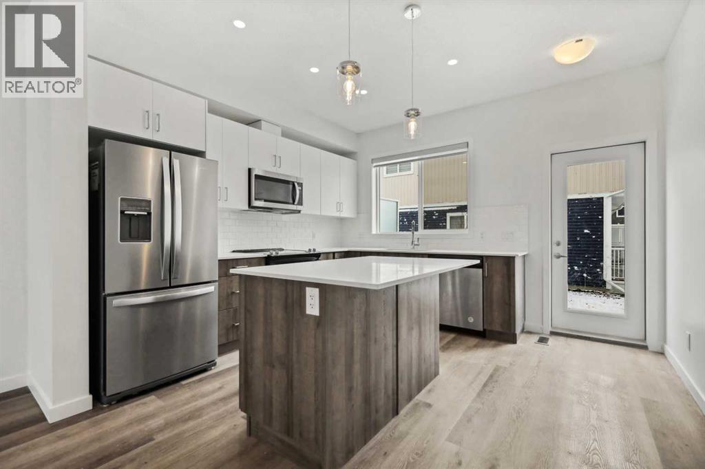 Welcome to #205 in the Red Embers Point complex, located in the community of Redstone.Upon arrival, you will notice its convenient placement within the complex, which will allow for ease of entry and exit. Day to day tasks such as bringing groceries and family household items indoors will be efficient, with the parking stall mere steps in front of the home. The main floor flows from living room, dining room, to kitchen, allowing you to remain part of the action while entertaining family and friends. Washing dishes will be a pleasant experience as you bask in the morning sun with the large window above the sink. Enjoy summer barbecues on your back deck overlooking the shared green space, and receive a respite from the heat as the afternoon sun moves to the west. A pantry, two-piece bath, and access to the basement round out the main level. Ascending to the second floor, you’ll observe the continuation of the thoughtful floorplan. The primary bedroom includes a walk-in closet and for those who enjoy their privacy, a three-piece ensuite naturally illuminated with a bright window. Laundry days will be a breeze as the stacked washer and dryer are conveniently located on the same level. An alcove for a desk or additional storage, a linen closet, a four-piece bathroom, and two good sized bedrooms complete the upper level. Descending to the basement, you’ll note that while it is undeveloped, it is a wide space, and is open to the possibilities of whatever your family requires: an entertainer’s haven, gym, office, or play space. The Red Embers Point complex is located off of Stoney Trail, allowing for ease of access to any quadrant in the city. Local amenities include a pharmacy, dentist, grocery stores, schools, and green spaces. Redstone is a growing community, and is of great value for those looking to purchase their first home or raise a family. (id:53676)