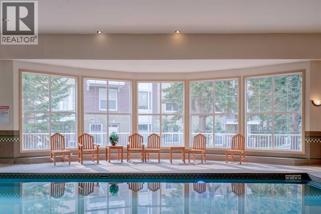 SWIMMING POOL & DEDICATED AMENITIES BUILDING - TITLED UNDERGROUND STALL - TRUE PEDESTRIAN LIFESTYLE! Welcome home to #206 of The Courtyards at Garrison Woods, an exceptional opportunity to live in one of Calgary’s most sought after inner city communities, just steps to the vibrant shops, cafés, and boutiques of Marda Loop. This beautifully appointed 739 sqft one bedroom, one bathroom residence offers an elegant blend of comfort and functionality, ideal for professionals, first time buyers, or savvy investors. Soaring 9’ ft ceilings create an immediate sense of space, while the wide, open concept living room provides exceptional layout flexibility; perfect for both entertaining and everyday living. A cozy gas fireplace anchors the space, adding warmth and ambiance year round. The thoughtfully designed kitchen features a generous peninsula with seating, offering both additional prep space and an inviting gathering spot. Whether hosting friends or enjoying a quiet evening at home, the seamless flow between kitchen and living area enhances the overall experience. Just off of the living room, tucked in behind closet doors, is a built-in desk. This provides options such as working from home (you can close the doors on your office to have it completely separate!), a dedicated beverage station, or additional storage space. The primary bedroom retreat is naturally brightened by two large windows, which provides a sense of serenity and relaxation. The bedroom also includes a convenient walkthrough closet that leads directly into the well appointed bathroom, creating a private, ensuite-style feel. A dedicated in suite laundry room adds everyday practicality, while the private balcony overlooking the beautifully landscaped courtyard provides a peaceful outdoor escape, ideal for morning coffees or unwinding at the end of the day. Residents also enjoy secured, heated underground parking with a car wash bay and storage lockers. Strategically located in the middle of the complex, i s an impressive amenities building. Complete with a swimming pool, fully equipped fitness area, party room, and guest suites - an extension of your living space that enhances both lifestyle and convenience. Units in this building rarely come up, as it is unique to find this style of complex (adults 18+ and separate amenities building), tucked in from behind the hustle and bustle of Marda Loop. All of this, just a five minute stroll to the best of Garrison Woods and Marda Loop - trendy restaurants, specialty grocers, fitness studios, and everyday essentials - offering an unmatched walkable urban lifestyle in one of Calgary’s most established and charming neighbourhoods. Fantastic value in this wider than your average one bedroom, one bathroom unit, with reasonable condo fees that include all the amenities. Contact your favourite realtor to schedule a private showing, and make #206 your new home! (id:53676)
