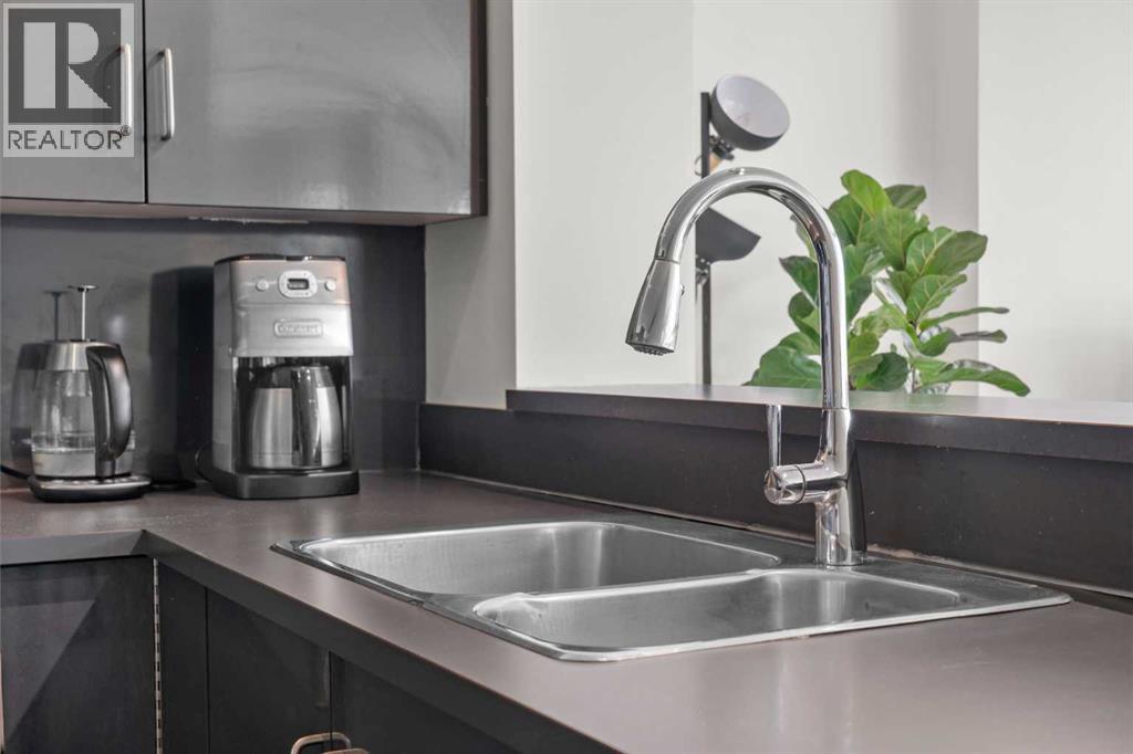 Welcome to Chocolate by Battistella, where nearly 800 sqft of stylish southwest-facing living meets skyline views and elevated urban design. This rare corner unit is wrapped in dramatic floor-to-ceiling windows, flooding the open-concept plan with natural light by day and sparkling city views by night. Polished acid-washed concrete floors flow through a spacious kitchen with large island/eating bar, dining area, living room, and a versatile den/office nook.Step into the primary bedroom with adjacent spa-inspired bath featuring a vessel sink and soaker tub. The convenience of in-suite laundry with new washer/dryer and plenty of storage. Central A/C keeps everything comfortable year-round.But the true showstopper? Your private 250+ sqft balcony with gas BBQ hookup and coveted SW exposure—perfect for lounging, entertaining, or simply soaking up the city vibe.Just outside your door, and within 20 feet of the unit, you’ll find not one but two incredible shared spaces: A garden patio for fresh air and relaxation and a flex room available anytime (no bookings required!)Plus, residents can head upstairs to the penthouse rooftop patio for panoramic skyline views.All this in a highly walkable Beltline location just steps to 17th Ave’s boutique shopping, top restaurants, coffee shops, fitness hubs, and transit.Urban living. Elevated. Decadent. Yours. (id:53676)