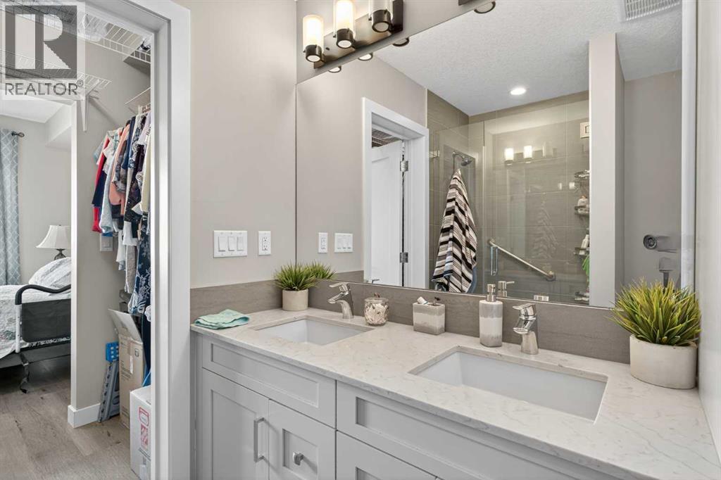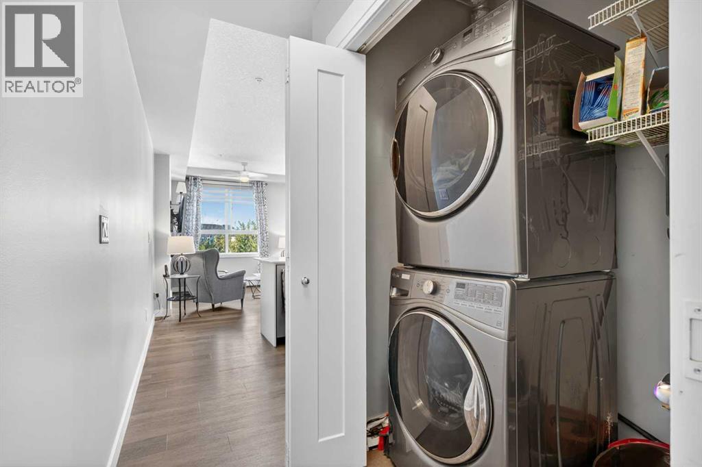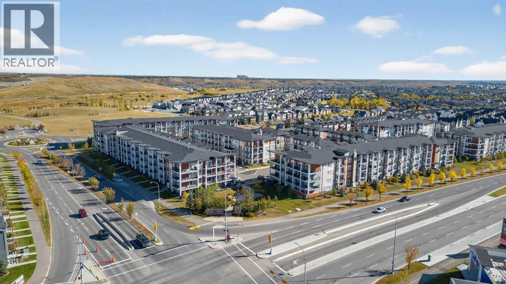 Beautifully designed End-Unit Bungalow apartment (original owner, many builder upgrades) with Air Conditioning, South-West-East exposed wrap-around Corner Balcony (over 20' in each direction!), gorgeous views, and incredible features - see iGuide virtual Tour and Floor Plans, then visit with your agent ASAP! ~900 square feet of space includes luxury plank and tile floors through the open gallery-style layout, with a stunning full-height contemporary white Kitchen with quartz counters, as the central focus. Stainless appliance package includes a chimney hood fan, built-in microwave, french-door fridge (bottom freezer), glass-top range and dishwasher, PLUS a lowered slab table, that expands the use from personal cooking, to full-entertainment capacity. Cabinet style pantry, pot-and-pan drawers and wine rack further enhance the thoughtful details. The Living and Dining areas are both full sized, and set up to enjoy relaxing, reading or watching movies in style, around the electric ribbon-burner fireplace. Higher ceilings, and being surrounded by huge windows and patio door across the back wall create a lofty, bright atmosphere, and increase the sense of privacy with nothing in the way of the views, nor any people to be seen! Both Bedrooms are adult-furniture-spaces, offering either Walk-through or wider Closets, plus storage shelving over doorways - brilliant! In each of the two full Bathrooms, either dual-sink or dual drawer-and-cabinets (plus medicine cabinet) are set off by more stone counters, and shower-or-tubs give choice and flexibility for different needs. Walden Place has a spacious secure Foyer, mail and package inside, underground Titled Parking with adjacent large Storage Unit in the same location, so incredibly convenient for seasonal and hobby requirements too. Located walking distance to Legacy's Township (larger and more comprehensive than Walden Gate) and Walden Pond/Paths, the building is wonderfully managed with 2024 Reserve Fund Study Report, pet-fr iendly Bylaws (both available to your agent or on demand), and responsive Simco staff. Nothing left out, but to move on this opportunity immediately. (id:53676)