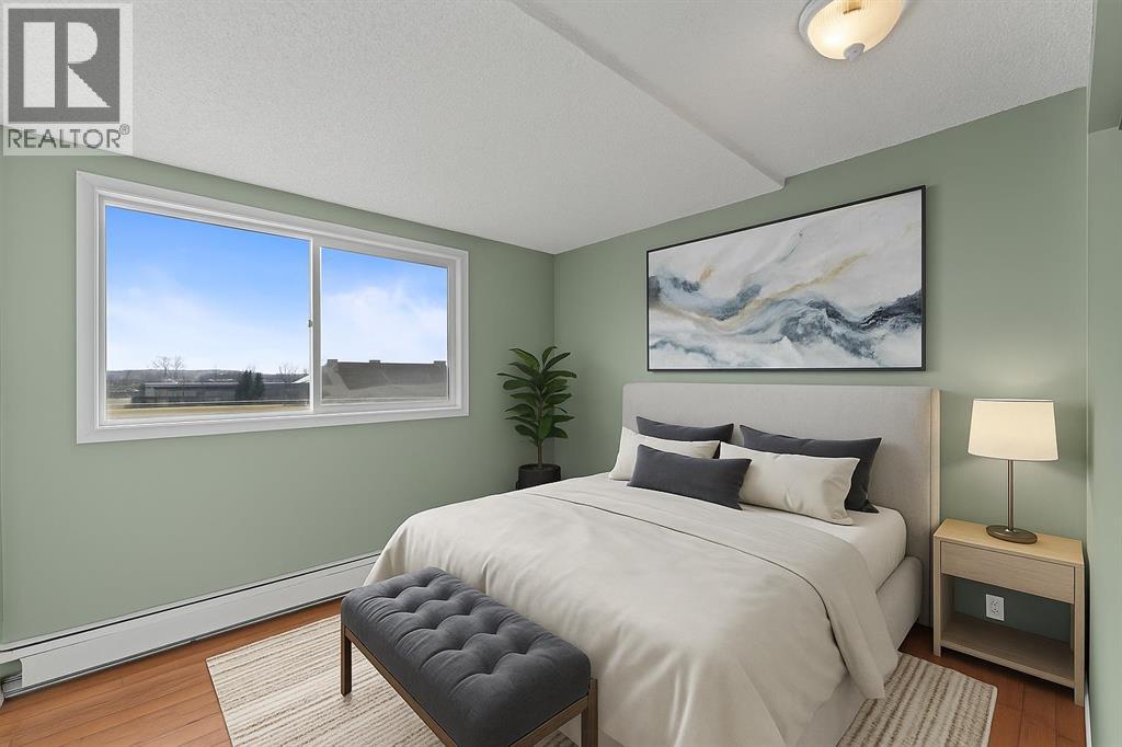 Welcome to this 2 Bedroom move-in ready condo located in the sought-after Tower Hill community of Okotoks.Offering over 900 sq. ft. of bright, comfortable living space, this rare, 2 bedroom south-facing unit captures mountain views from your private balcony — the perfect spot to relax and enjoy the Southern Alberta sunshine.Inside, you’ll find a freshly painted interior and a modern, recently renovated bathroom completed by Bathroom Fitters. The open-concept layout provides a seamless flow between the living, dining, and kitchen areas, creating a warm and inviting atmosphere. Both bedrooms are generously sized with the primary offering a great walk in closest and the second bedroom is Ideal for guests, a home office or maybe work out room. This quiet adult building features secure underground parking and is professionally managed, ensuring peace of mind and easy living. With no dogs permitted, it’s ideal for those seeking a low-maintenance and tranquil lifestyle.Whether you’re a first-time buyer, downsizing, or looking for a solid investment opportunity, this condo checks all the boxes — spacious, updated, and ready to move in. Conveniently located close to parks, walking paths, shopping, and all of Okotoks amenities. Book your private showing today! (id:53676)