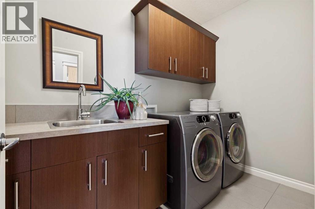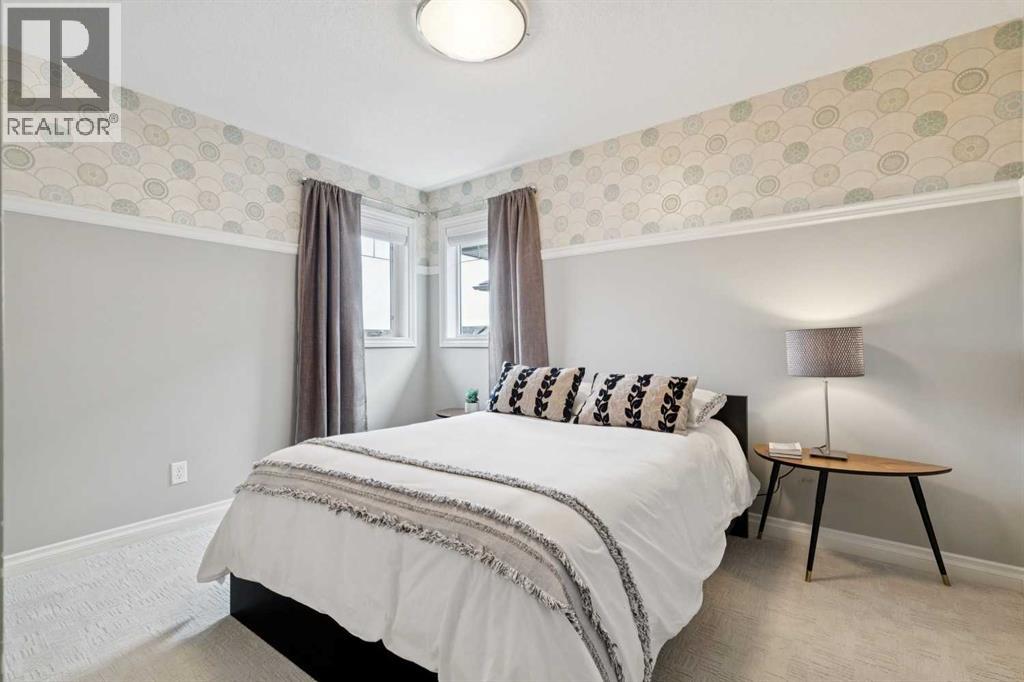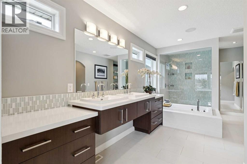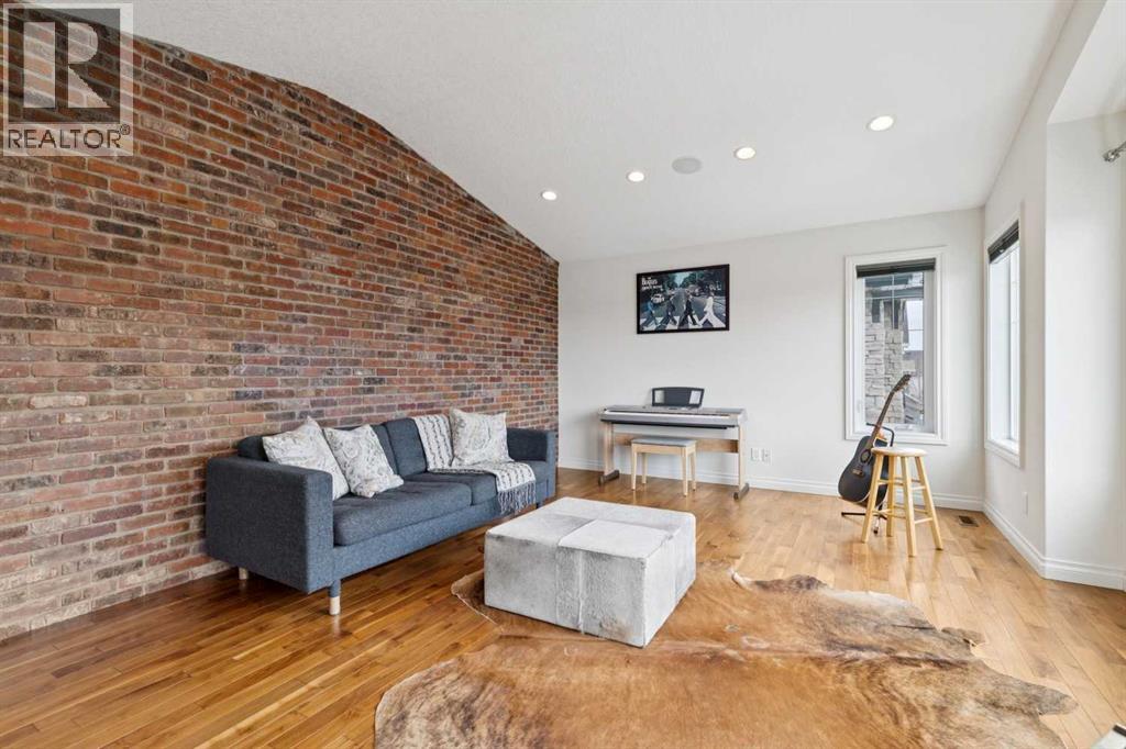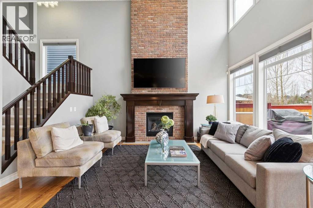 Welcome to 21 Silverado Skies Way and this former Show Home featuring 4 bedrooms, 4 bathrooms, and over 3700sf of developed living space, loaded with upgrades. This stunning home truly checks all the boxes with Pride of ownership evident throughout. Pristine hardwood floors throughout the main level including in the private office with Built-In desk and cabinets. Main Floor Laundry room with laundry sink and plenty of room for drying and folding all your wares. A must for the busy family is the Mud Room off the double attached garage with Built-In Lockers to maintain the chaos. Convenient Walk-Thru Pantry leads to the Dream Kitchen with massive island, gas range, wall oven, loads of quartz counter space and plenty of cabinets. The showstopper is the floor to ceiling brick fireplace wall in the living room. This open concept floorplan is perfect for entertaining and hosting family gatherings. Off the large dining room is the West backing yard with two tiered deck, already with wiring in place for your Hot Tub. Access Silverado’s vast pathway networks out your back gate. Upstairs, you’ll find 3 generously sized bedrooms and an incredible bonus room with feature brick wall and view of the park and playground directly across the street. The primary bedroom features a spa-inspired 5-piece ensuite with dual sinks, soaker tub, standup shower, and a spacious walk-in closet with more built-ins. A full bathroom completes the upper floor. The fully developed basement has an Awesome Theatre Room complete with Projector and Projection Screen, along with built in cabinetry and electric fireplace, along with a large games area. Currently the 4th bedroom is used as a gym/yoga room. Dual Furnaces each with an Air Conditioner, and newer 75 Gallon water heater. The large half bathroom can be reconfigured to allow the addition of a shower. Simply move in and enjoy this exceptional home offering space, functionality, and luxury in a prime location – minutes walk to 2 schools including t he brand-new K-12 Francophone School. (id:53676)