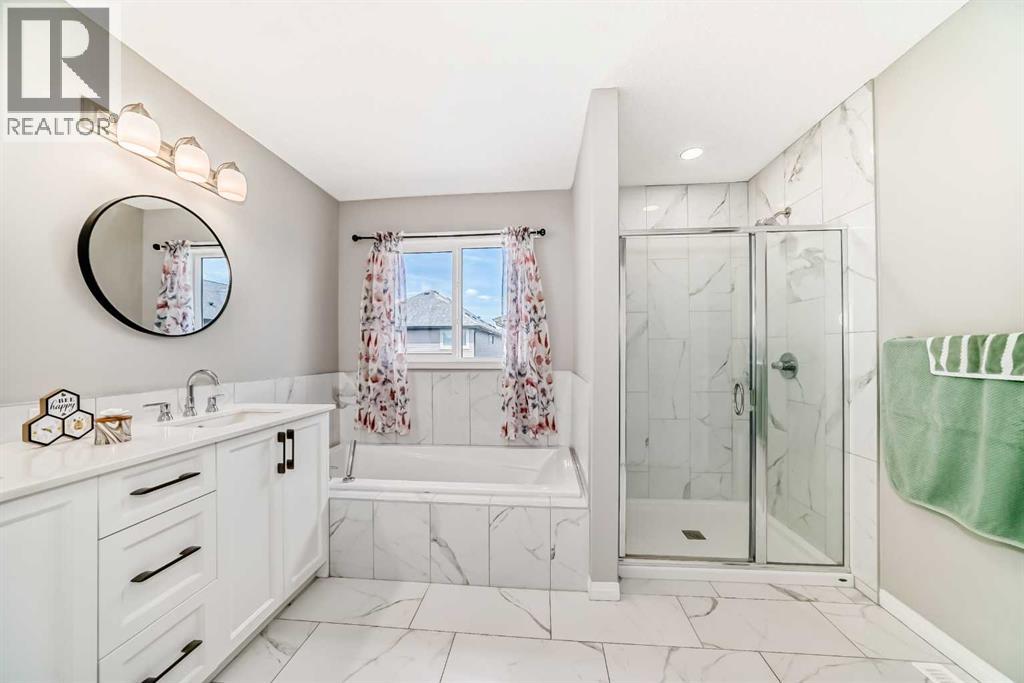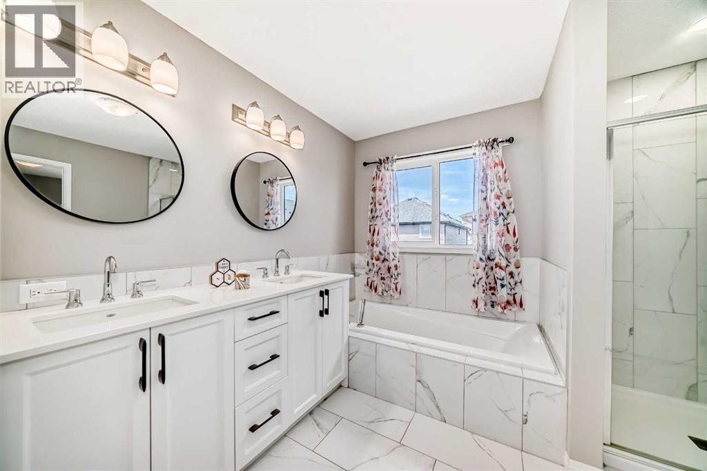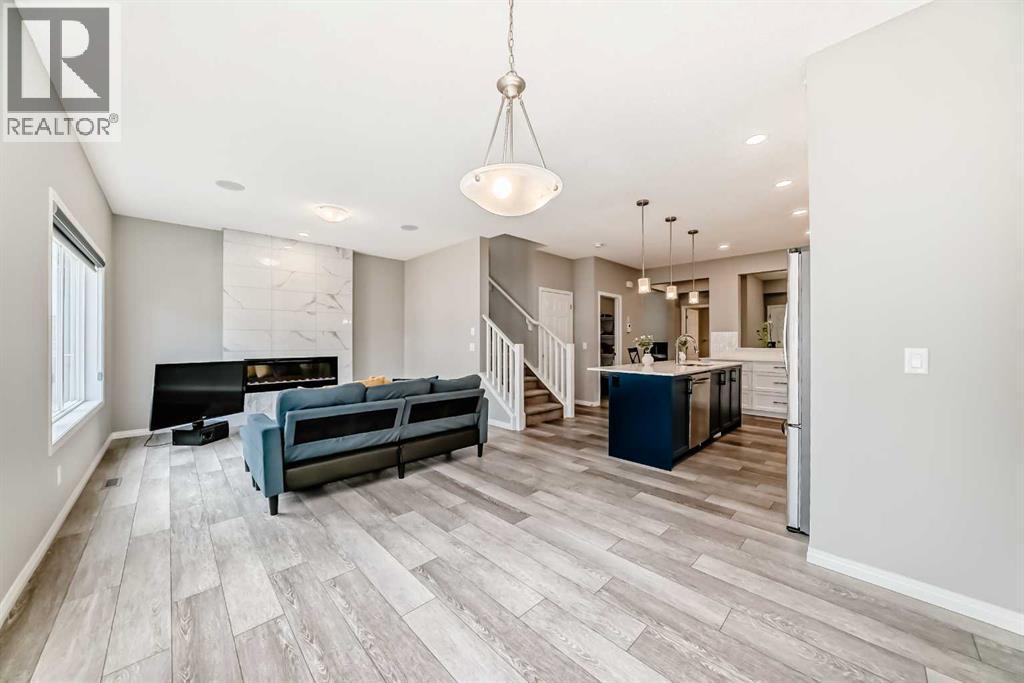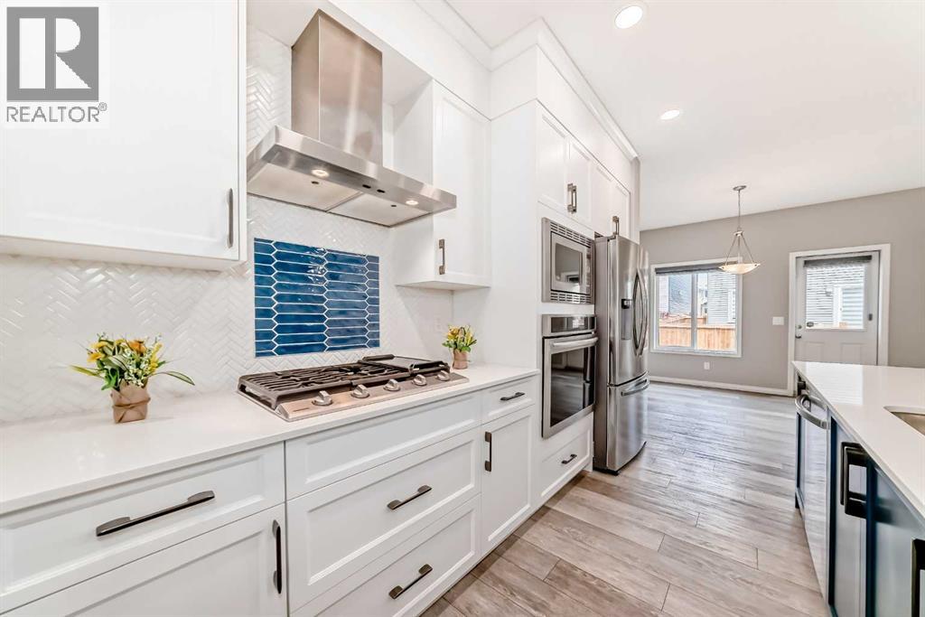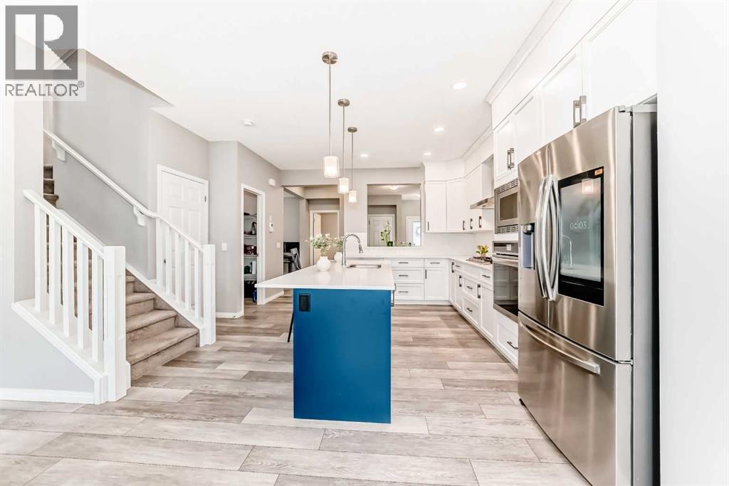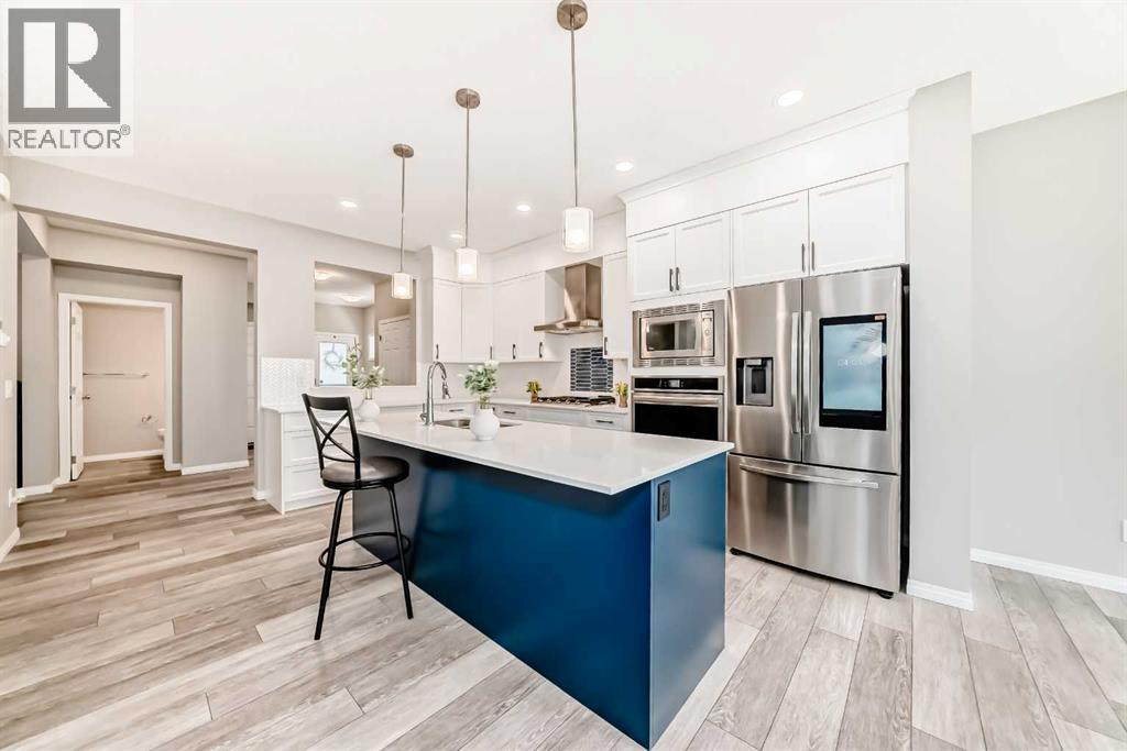WELCOME TO THIS WELL-PRICED HOME WITH OVER 2247 SQ FT UP, LIKE NEW WITH NO GST. Walking in, you will be delighted with the wide plank luxury flooring, high ceilings, all new blinds on the main floor and EXCELLENT FLOOR PLAN. There's a spacious entryway with a closet, a two-piece bath, and a convenient office space. Next is the open floor plan, featuring large windows and a stunning kitchen with a sleek design. There's a large island that seats 4, gas cooktop, wall oven and microwave, double door refrigerator with water and ice features, Pantry, quartz counters, everything you will need to entertain a large family. The dining area will accommodate your large table, and the spacious living room offers an electric fireplace and in-ceiling speakers. Upstairs there's a bonus room and a laundry room with shelving. The primary bedroom will accommodate your large furniture and features a spacious walk-in closet, an en-suite bathroom with dual vanities, a private water closet, a deep soaker tub, and quartz counters. The other two good-sized bedrooms both have walk-in closets, and the other 5-piece bathroom also features dual vanities, which is very rare, all with quartz upgrades. This home is situated in a newer, beautiful development, close to the park, and just minutes from shopping, eateries, a gas station, and the SLS Sports Complex, perfect for your family’s fitness regime. Minutes to the 1A highway west to the mountains or head east for an easy commute to Calgary; close to old town Cochrane with its many shops and restaurants.The Environmental Reserve Ridge is close, with the future dog park located in the northeastern corner, and the planned Tot Lot along Heritage Boulevard. The community will also feature a future K-9 School site, adding to the family-friendly atmosphere and enhancing the overall quality of life for residents. this home is priced to sell. (id:53676)