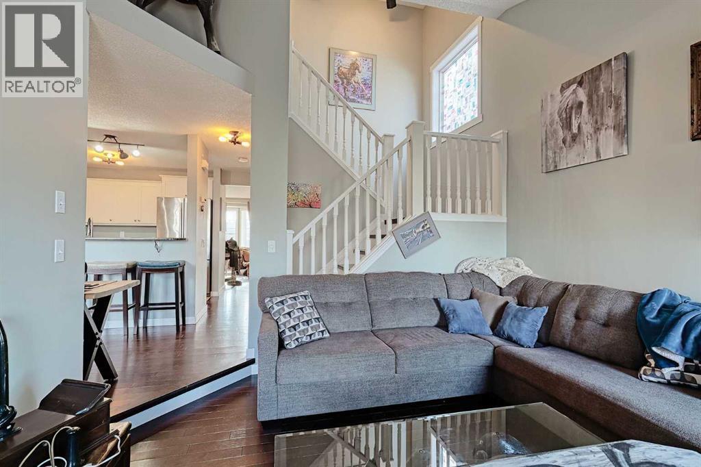 Incredible opportunity to own a home at a great price in the desirable community of McKenzie Lake. Thoughtfully located steps from a neighborhood park and within a block of local schools, this home blends everyday convenience with comfort and modern living. Offering 2,252 SF of developed living space, the bright main-floor welcomes you into a front living room which flows into an updated kitchen with timeless white cabinetry, quartz countertops, raised eating bar and stainless steel appliances. The dining area gives access to the backyard with expansive deck and poured concrete patio space for summer enjoyment. A family room with soaring vaulted ceilings and cozy gas fireplace and a powder room complete this space. Upstairs you will find a primary suite with walk-in closet and a 4-piece ensuite along with 2 guest rooms which share a 4 piece bathroom. The finished lower level provides a family room, rec/games room, 4th bedroom, 4 piece bathroom and laundry. Enjoy central AC on those hot summer days and the detached double garage on those snowy days. Year around enjoyment at the lake including a private clubhouse, fishing, swimming, tennis, volleyball, skating and don't overlook the miles of scenic walking paths throughout Fish Creek and along the Bow River. Book your showing today! (id:53676)