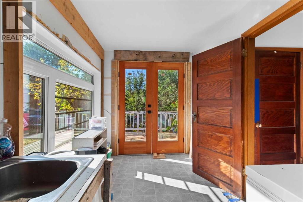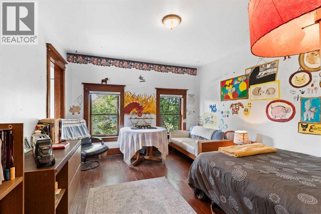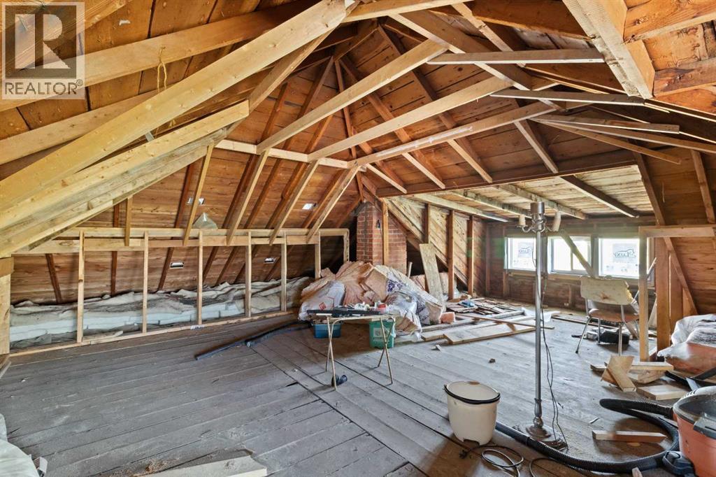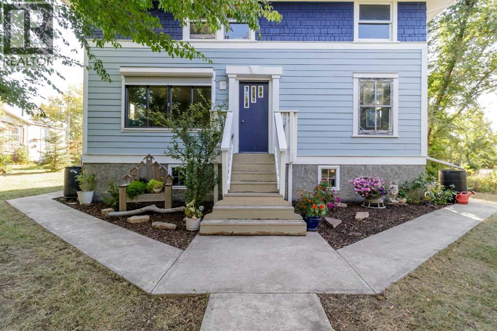A Mansion in its time!!! This spacious character-rich 4 bdrm w/ nursery room 1 & a 1/2 bath soon to be 2-1/2 with addition of a 3pc bath on the main in the laundry/mudroom space. Inside and out, this 2-1/2 storey home marvels in rich turn-of-the-century character. Built in 1918, this home was moved from a farm yard into Swalwell in 2000 and placed on a newly poured foundation. with large windows adding bright, livable space to the basement area. The kitchen space features stainless steel appliances, oak cabinets, and tasteful tile backsplash. Just off the kitchen, en route to the formal dining room, is a butler station for storage, prep, staging of cutlery or service items & occasional accents, or a buffet stationing area. A south-facing dining room features a large southern exposure window pouring natural light into the room, from there a direct transition to a massive living room space outfitted with a stone mantle fireplace, natural hardwood floors, and a plethora of windows giving the room a warm & inviting entertaining space. a 2pc bath and butler's quarters style bdrm, finishes off the main floor living space. Upstairs, there are 4 additional bedrooms with the primary suite featuring a nursery space accessible from the master only setting a perfect transition for an enormous walk-in closet or powder room. All bedrooms are oversized & the 4pc. bath is renovated with modern touches while embracing the classic accents. The 3rd level 1/2 storey level features new windows and framing & is only partially developed, allowing you to place your own style and design on it. Updates include some vinyl windows & some wood with metal cladding, new 25-year roof shingles, hardy board siding in, July 25, the second-level bath, and an additional HE furnace is ready for installation in the basement space, also undeveloped and ready for your design and personal style points. Situated on a total of 5 lots, the property measures 135'X120', totalling 16200 sqft. of total outdoor l iving space offering a southeast-facing rear deck, well-placed mature trees supplying great privacy, a multitude of gardening patches, a firepit area, beautiful landscaping, and a matching storage shed. Surrounded by the friendly, quaint & quiet community of Swalwell, this auspicious character-filled home features all the classic touches with potential to breathe into and pull together all your personal touches throughout the home!! This spacious home has all the elements to be a stunning centerpiece of history with a modern flair, placed in an amazing setting with a functional layout!! (id:53676)