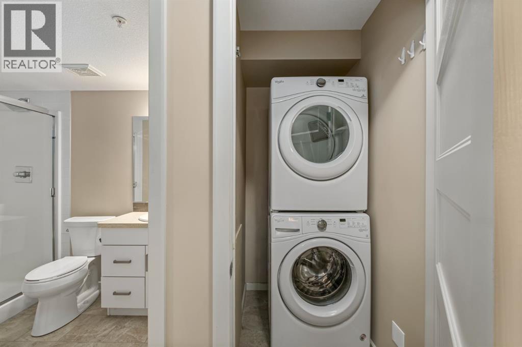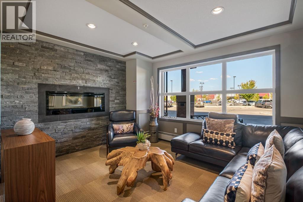 Modern open-concept layout, Stylish - quiet +40 condo community - Main floor unit - Easy access! - Ceramic in-floor heating - In-suite air conditioning - One-owner home, well maintained - Updated kitchen with upgraded backsplash & under-cabinet lighting - Large kitchen island, ideal for entertaining - Over-the-range microwave - Pantry with roll-out shelves Quiet, soft-closing cupboard doors and drawers - Spacious bedroom with dual closets - Blackout window coverings plus curtains for comfort & privacy - Bathroom with walk-in shower & built-in shelving - Cozy carpet in bedroom/living areas - Two titled parking stalls: One directly outside deck door — ideal for groceries & easy access. One secure underground stall with extra storage, located right across from stair access - Elevator access for convenience to underground parking, Perfect for couples with two vehicles or a single person with one vehicle and extra parking for family or guests parking beyond 24 hours - Small pets allowed - Barbecue gazebo for outdoor gatherings - Community turf grass area for pets - Card game days in the amenity room - Free amenities room & landscaped private courtyard - No-smoking - Steps to Kingsview Market (groceries, dining, pharmacy, medical) - Close to parks, ponds & amphitheatre - Easy access to Genesis Place recreation complex - Quick commute to Calgary via Highway 2 & Yankee Valley Blvd. Better check this amazing unit out today! (id:53676)
