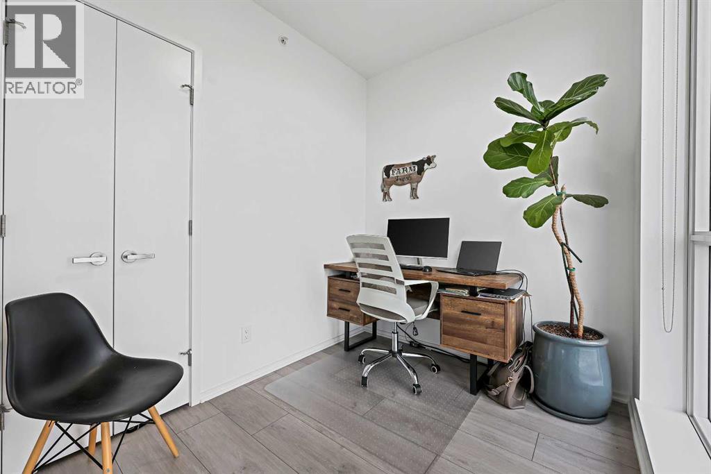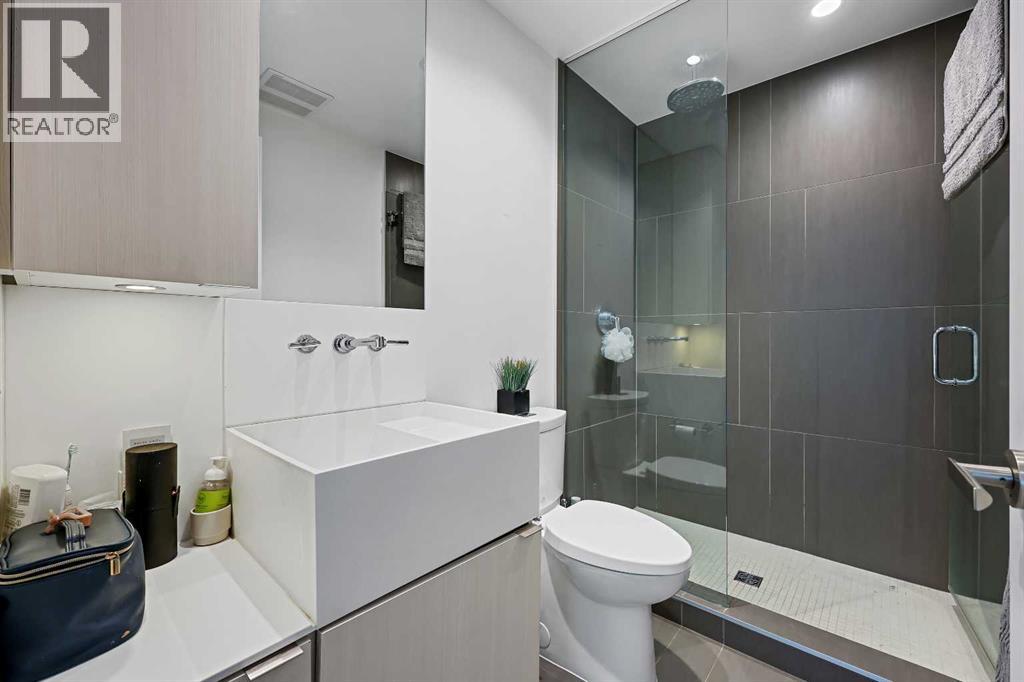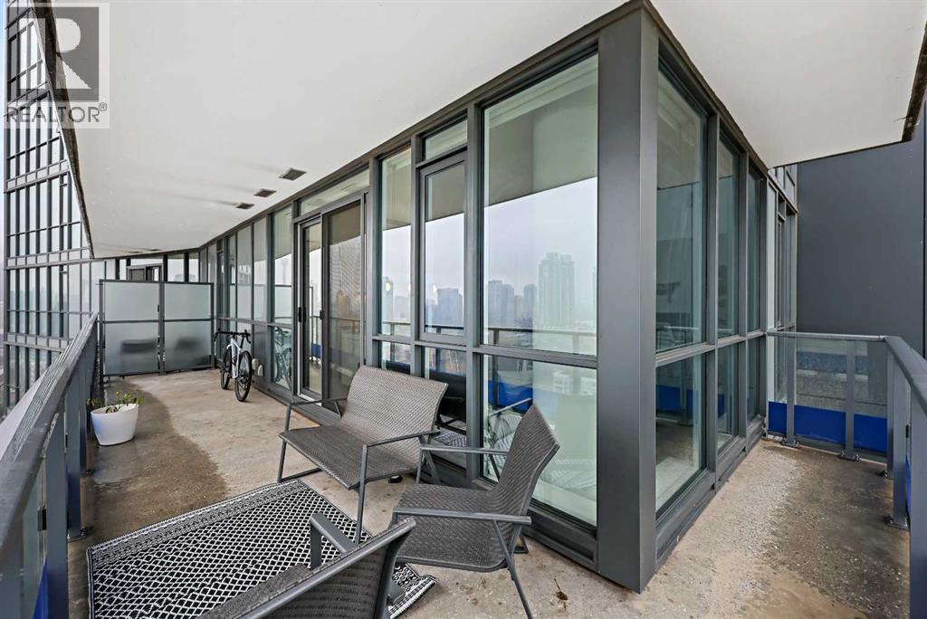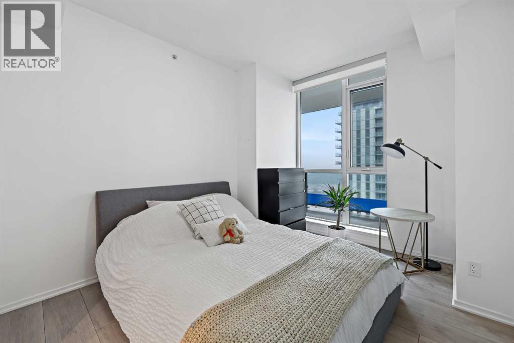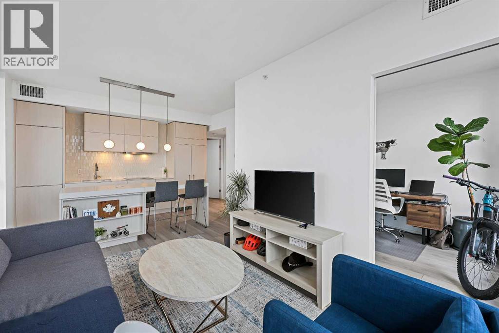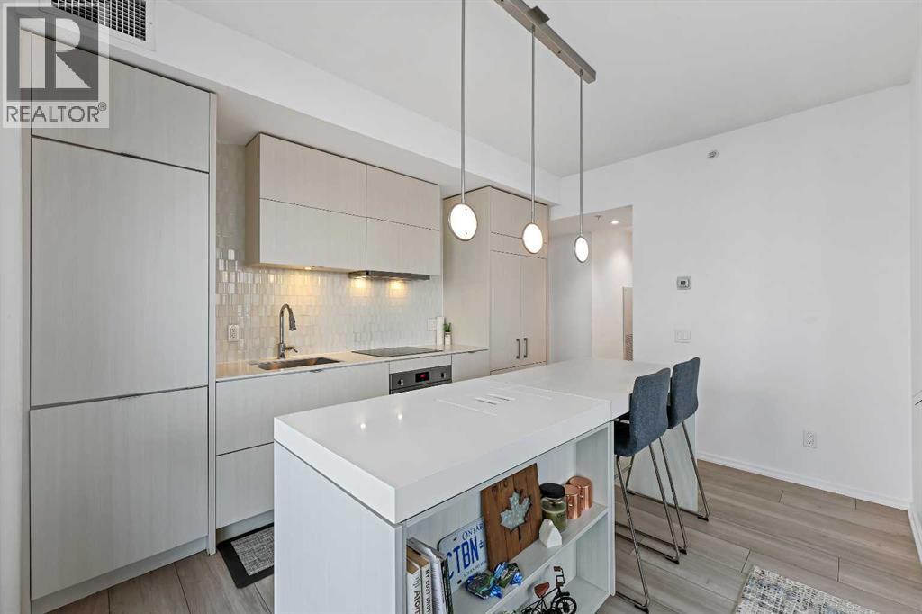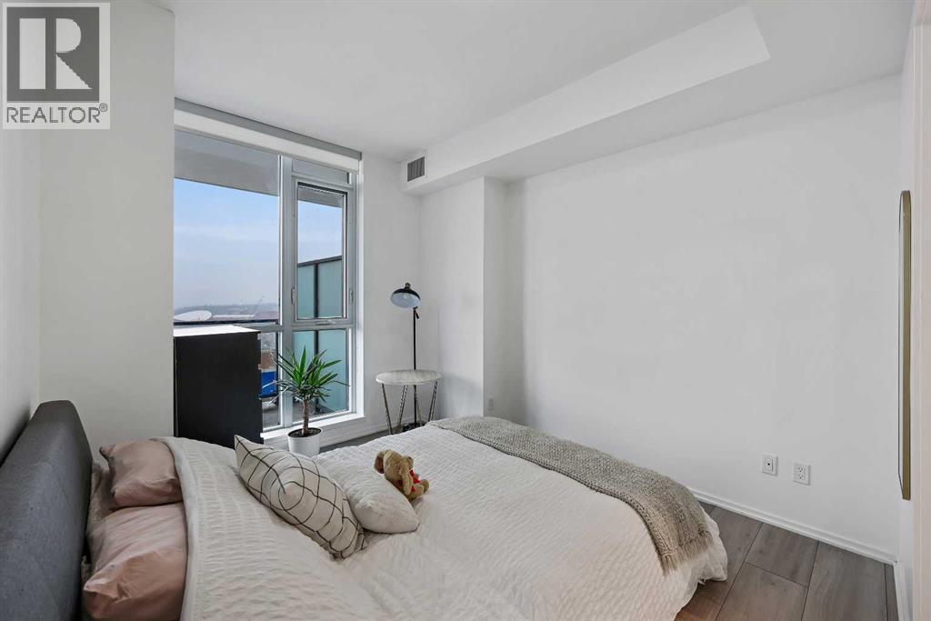 Experience elevated city living in this spectacular 21st-floor corner unit in the Verve, located in the vibrant heart of East Village. With unobstructed southeast views overlooking the Bow River, Fort Calgary, Stampede Park, and downtown skyline, this 2-bedroom, 2-bathroom residence combines location, light, and lifestyle in one of Calgary’s most walkable neighbourhoods. Floor-to-ceiling windows flood the open-concept space with natural light, while the set-back deep windowsills create an expansive, airy feel rarely found in high-rise condos. The 200+ sq ft wraparound balcony invites you to BBQ, lounge, and soak in the panoramic vistas day or night. Thoughtfully designed for comfort and style, the kitchen features sleek cabinetry, quartz countertops, a large island perfect for entertaining, and a built-in electric cooktop. The primary bedroom offers a tranquil retreat with stunning views and a modern 3-piece ensuite, while the second bedroom is ideal for guests, a home office, or den. A spacious 4-piece main bath, in-suite laundry room, and central air conditioning add to everyday convenience. The unit also includes a rare, oversized titled underground parking stall—big enough to fit a truck—and an assigned storage locker. The Verve offers exceptional amenities: a second-floor fitness centre, social lounge with kitchen and terrace, guest suites, and an exclusive 25th-floor rooftop patio and party room with unobstructed views. Perfectly positioned for active professionals, pet lovers, and investors alike. You're steps from the RiverWalk, bike paths, and an off-leash dog park across the street. The Central Library, Superstore, Studio Bell, and a growing list of East Village cafes, restaurants, and breweries are all within a 5-minute walk. Plus, you're in Calgary's free fare LRT zone for stress-free downtown commuting. Whether you're searching for a pet-friendly river-view condo, a modern downtown home with amenities, or a turnkey rental in a high-demand location, this top-floor end unit delivers it all. Don’t miss your opportunity to own one of East Village’s most desirable views. Book your showing today. (id:53676)