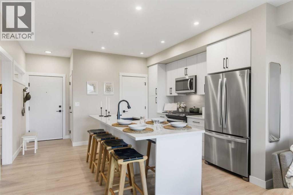 Welcome to Lawrie Park, where modern living meets community charm! This two-bedroom, two-bathroom condo offers 691 sq. ft. of thoughtfully designed living space and is ready for you to move in today! Partners Builders’ popular model has completely sold out in Buildings 1000, 2000, and 3000, and while Building 4000 is currently under construction with 11 more of this same model, those units won’t be available until mid-2026—and they’ll cost more. Even better, this condo offers something Building 4000 units don’t: a walkout patio with direct outdoor access! This home is both pet and people friendly, and like all Partners properties, it showcases exceptional quality, attention to detail, and outstanding customer service. The community offers great amenities including a basketball court, community gardens, and gathering spaces. You’ll appreciate over $21,000 in upgrades, including: Gas stove and oven, Laminate flooring throughout, Upgraded quartz island with built-in dining table, Extra kitchen drawers, And more! Enjoy nearby conveniences such as the dog park across the street, pump track, pond, walking paths, and playground in the Wedderburn community. Don’t wait until 2026—come see, fall in love, and move right in! (id:53676)