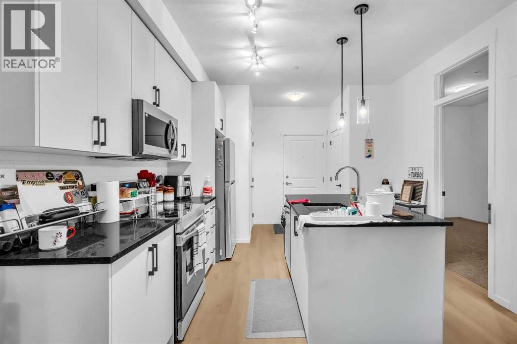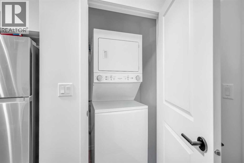 This spacious and modern 2-bedroom, 2-bathroom condo in Building 2000 of Legacy Park South offers exceptional value for both first-time buyers and investors. Built by Brad Remington Homes in 2024, the unit features a stylish kitchen with a large quartz island, a full stainless steel appliance package, and a stacked in-suite washer and dryer for added convenience. The open-concept layout includes a well-designed split-bedroom plan for privacy, a generous walk-in closet, and a northwest-facing balcony perfect for evening sunsets. A titled parking stall is also included. Ideally located across from All Saints High School and steps from Legacy Township Shopping Centre, this home offers unbeatable walkability in a vibrant, growing community. Currently tenanted, it’s a perfect turn-key investment with the option to assume the lease and start earning rental income immediately. (id:53676)