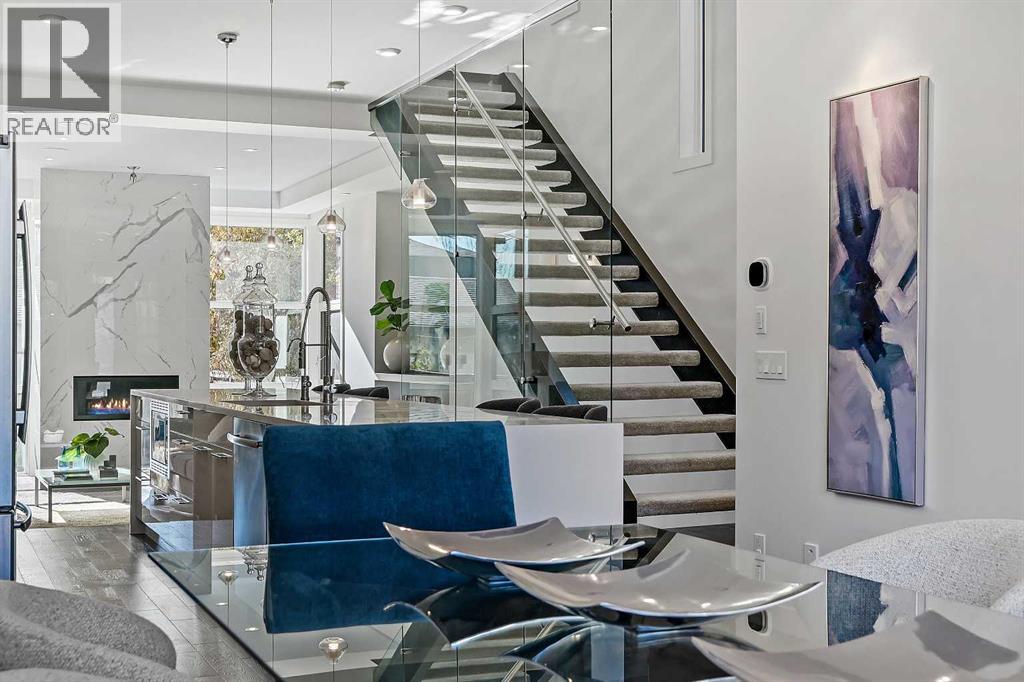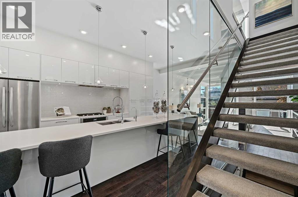 *** OPEN HOUSE SUNDAY, October 19, 2025 2-4PM *** This stunning modern home in West Hillhurst, designed and built by Deanmark Custom Homes, blends European-inspired architecture with the comforts of luxurious urban living. Every detail reflects quality, comfort, and thoughtful design — from the creative open-concept layout that maximizes space and natural light, to the oversized ceiling heights and use of modern, natural, and durable finishes throughout. The main floor features gleaming hardwood and a centerpiece kitchen with a gas cooktop, built-in convection oven, quartz countertops, custom cabinetry, and a large island perfect for hosting. The kitchen opens into a bright, south-facing family room with a tile-wrapped gas fireplace and flows effortlessly to the low-maintenance south backyard. A detached garage includes an EV fast charger, ideal for eco-conscious city living. Upstairs, the spacious primary suite is a serene escape with a walk-in closet and luxurious 5-piece ensuite featuring in-floor heating. Two more bedrooms, a 4-piece bath, and a laundry room with a sink complete the upper level. The fully finished basement is great for guests and entertaining — enjoy the wet bar with fridge and microwave, a 4th bedroom, and a spa-style bathroom with steam shower. Additional features include A/C, vacuflo, water softener, filtration system, and roughed-in basement in-floor heat. Energy-efficient 9.8 kW solar panels make this home future-ready. All of this in a prime location just minutes to downtown, the Bow River, and endless walking and biking paths. This home is a must see to appreciate the quality of the home. (id:53676)