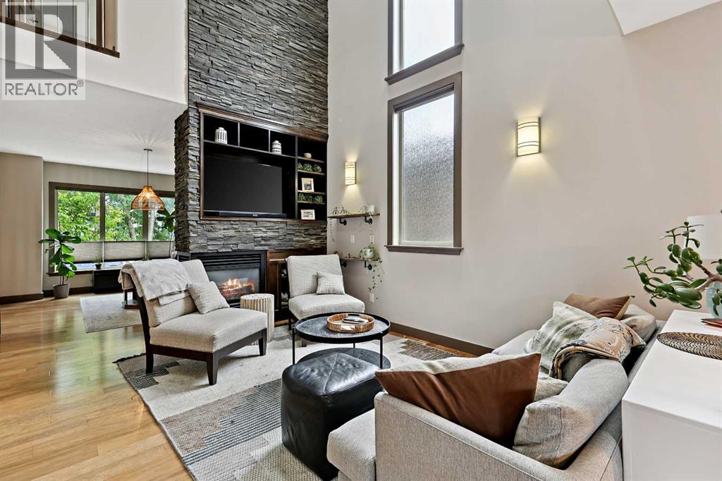 ***Brand new roof*** Exception value in this beautiful attached home in the heart of North Glenmore Park! Step inside and discover a bright, open-concept floor plan accented by gleaming hardwood floors, elegant wrought iron railings, and soaring vaulted ceilings. The main level is anchored by a chef-inspired kitchen, featuring a two-tiered island, granite countertops, stylish tile backsplash, corner pantry, and stainless steel appliances—including a gas range. A spacious dining area seamlessly connects to the kitchen, creating the perfect space for entertaining. The inviting family room showcases a dramatic two-storey stone feature wall with a gas fireplace and custom built-ins, separating it from the versatile front flex room—ideal as a home office or additional living space. A rare highlight is the professionally designed 10’ x 10’ mudroom, complete with built-in storage and a sliding barn door. Unique dual staircases lead to the upper level, offering privacy and convenience. One staircase leads to the luxurious primary retreat with a walk-in closet and spa-inspired ensuite featuring a tiled shower and jetted tub. The second staircase leads to two additional bedrooms and a full main bathroom. The fully finished basement expands your living space with a large recreation room, fourth bedroom, full bathroom, laundry, and ample storage. Enjoy the landscaped backyard, complete with an interlocking stone patio, storage shed and a detached double garage. Located just minutes from Sandy Beach, Marda Loop, Glenmore Reservoir pathways and downtown, this exceptional home offers the perfect blend of tranquility and urban convenience. Don’t miss your chance to view this one-of-a-kind home. Book your showing today! (id:53676)