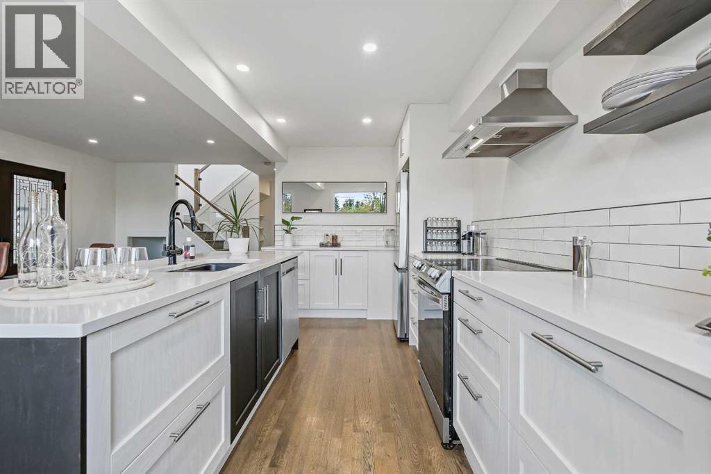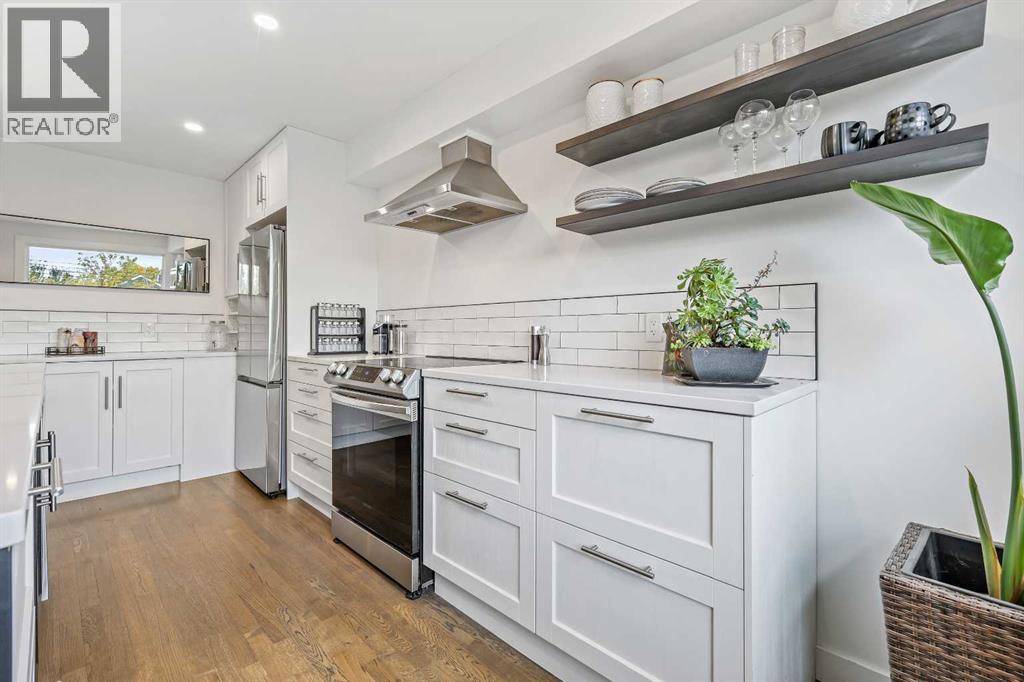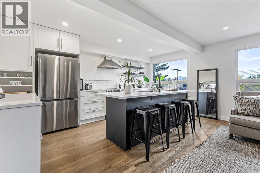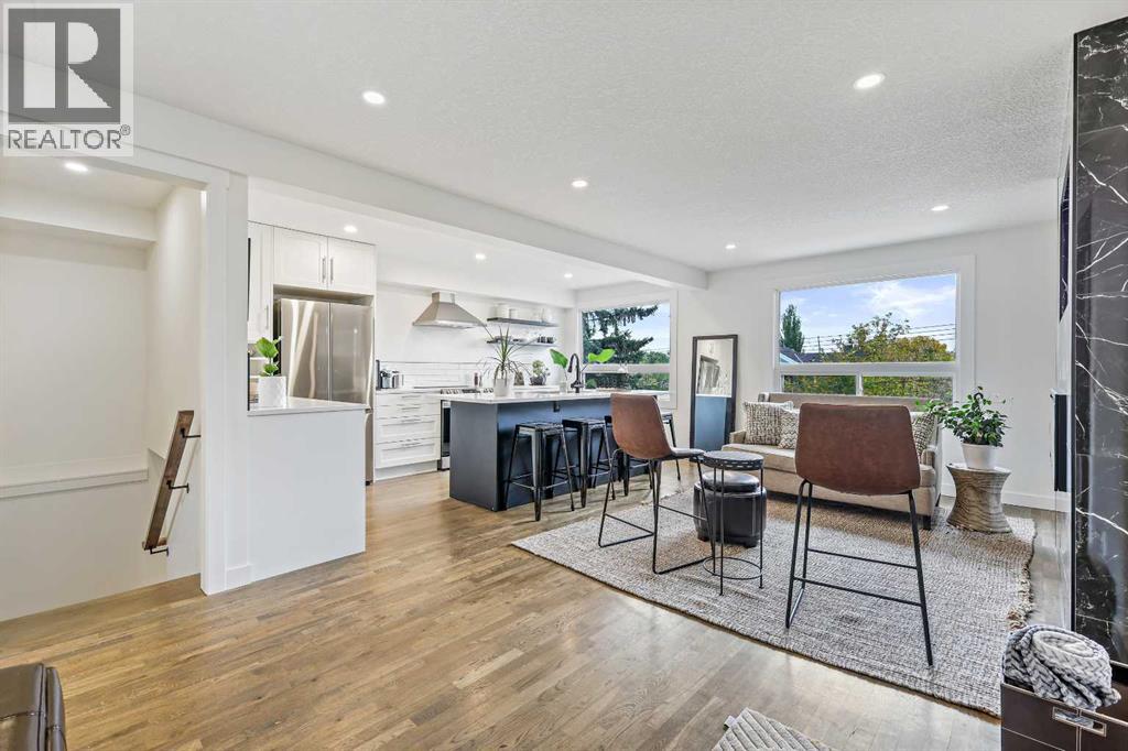 If entertaining under the city skyline is your vibe, this home delivers the ultimate rooftop experience. Tucked away in Calgary’s popular inner-city community of Bankview, this fully renovated home features a massive 450 sq. ft. private rooftop patio with panoramic views that stretch across downtown. Whether you’re hosting a summer soirée, firing up the BBQ, enjoying cocktails at golden hour, or soaking up the sun on lazy afternoons, this rooftop is truly a showstopper. It’s the kind of space that makes every gathering unforgettable. Inside, you’ll find a modern, stylish layout with 3 bedrooms and 2 fully updated bathrooms, perfect for roommates, a home office, or a creative studio. The open-concept kitchen is designed for connection, with quartz countertops, stainless steel appliances, and island seating that flows into the bright, airy living room complete with an electric fireplace and chic feature wall. The upper level connects two bedrooms and a full bath directly to that private rooftop retreat, while the main floor offers another bedroom/office, a second full bath, and a convenient mudroom. The walkout basement opens into a landscaped yard with mature fruit trees—ideal for garden parties or peaceful downtime. A heated garage adds even more versatility, whether you want a gym, studio, or workspace. Additional features are 2 washer/dryer hookups on the main floor and walk out basement with Beyond your front door, the best of Calgary awaits. Nestled between the buzz of 17th Avenue and the vibrant Marda Loop, you’re only steps from trendy restaurants, coffee shops, nightlife, shopping, and green spaces. Add in quick access to downtown, bike paths, and transit, and you have the perfect mix of excitement and convenience. With 1,437.42sq. ft. of finished living space plus a heated garage and rooftop retreat, this home is all about lifestyle, energy, and connection. If you’re ready for the ultimate blend of modern design and outdoor living, your rooftop oasis in the city is waiting! (id:53676)