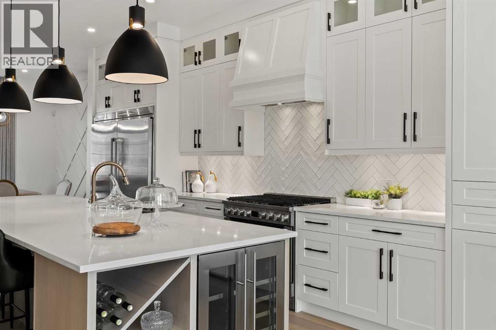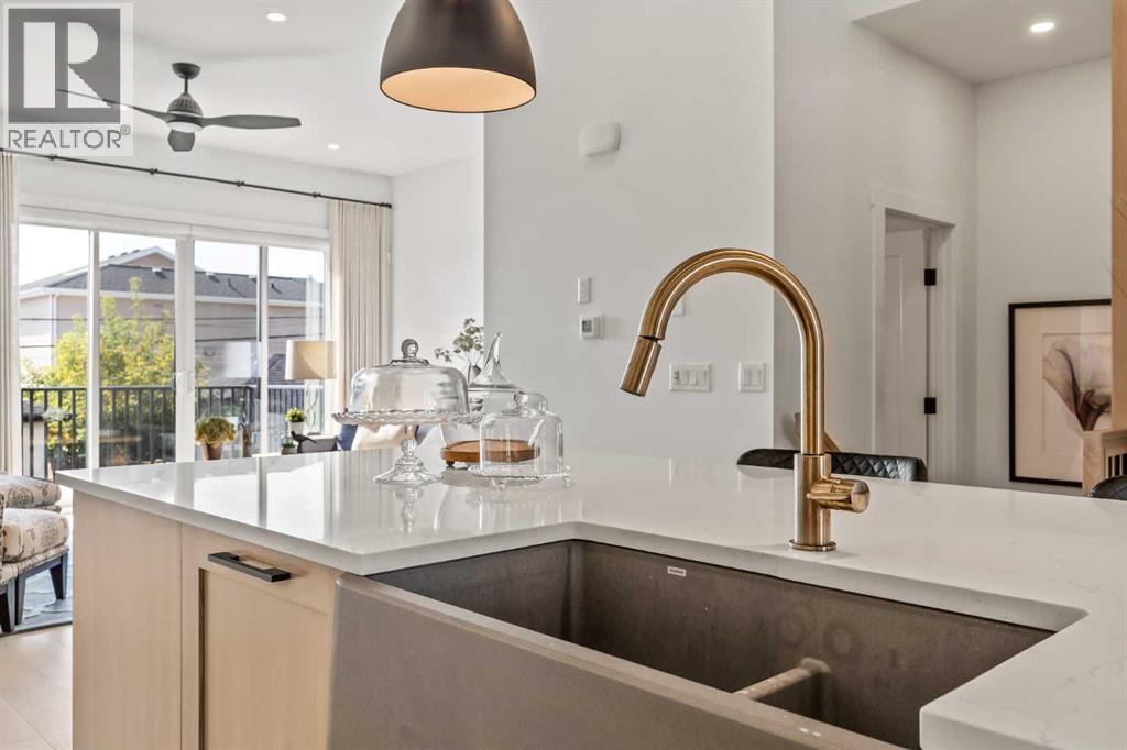 Built in 2022, this highly upgraded home in the heart of Marda Loop offers over 2,900 sq. ft. of thoughtfully designed living space (2,081 sq. ft. above grade plus 848 sq. ft. developed down).Inside, soaring 10 ft. ceilings, oversized windows, designer lighting, built-in speakers, and hardwood flooring create a bright and modern atmosphere. The gourmet kitchen impresses with industrial-sized appliances, a massive quartz island with breakfast bar, and a beverage centre and loads of built-ins. The living room features full-height cabinetry, a sleek linear fireplace with built-ins, and access to a spacious deck through oversized doors with custom privacy blinds. A dramatic dining room with extensive millwork and ripple-fold drapery completes the main floor, along with a custom mudroom designed for style and function. Upstairs, the luxurious primary retreat boasts a grand tray ceiling, LED feature wall, a walk-in closet with extensive built-ins, and a spa-inspired ensuite with in-floor heating, dual sinks, steam shower, and soaker tub. Two additional bedrooms, a full bathroom, and a large laundry room with sink and storage round out the level. With hardwood flooring and tile in the bathrooms, the only carpet is in the two bedrooms . The fully developed basement offers a large rec room with wet bar and cabinetry, a glass-enclosed gym, a spacious fourth bedroom with walk-in closet, and a stylish 4-piece bath.From custom window coverings (including blackout options) to premium millwork and finishes throughout, this home delivers uncompromising quality. All within steps of the vibrant shops, dining, and amenities of Marda Loop. (id:53676)