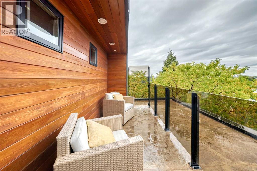 This contemporary, fully developed Inner City Home is loaded with upgrades thru-out and offers over 3200 SqFt of luxury living space complimented with a quiet location and city and mountain views from the Rooftop Patios. With 9 Foot Ceilings on the Main, central A/C and radiant in-floor heating in the Lower Level and all Bathrooms, the open concept floor plan starts with the bright Entry leading to the fully equipped gourmet Kitchen ideal for entertaining, complete with a 10 ft island with built-in wine rack, granite countertops, high-end stainless steel appliances including the gas down-draft cook top and built-in wall ovens, wine fridge and walk in pantry. The Dining area sits in front of a large floor to ceiling window, the Living Room features accent windows and a cozy gas fireplace with access to the backyard and there is the 2pce Guest Bath. The open riser staircase with glass panel wall leads up to the 2nd Level where you’ll find the massive Primary Bedroom offering a 5Pce Ensuite with walk-in shower and Air-Jet corner soaker tub plus, the 15’ walk-in closet with custom California Closet wood built-ins. There is also the 2nd Bedroom with it’s own 4Pce Ensuite, the Den/Flex area and Laundry Room. The Top Level has a 3rd Bedroom complete with a 3Pce Ensuite that can also be used as a Home Gym, Office or a Bonus Room with access to both Rooftop Patios which features stamped concrete with smoked glass panel rails (rails can be pushed out to make a full wrap around patio). The Lower Level is fully developed with a large Media/Family Room, the 4th Bedroom, another Full Bath and a Storage Room. Outside, you’ll find your private backyard oasis ideal for entertaining and the fully finished double detached Garage that’s roughed in for a heater. (id:53676)