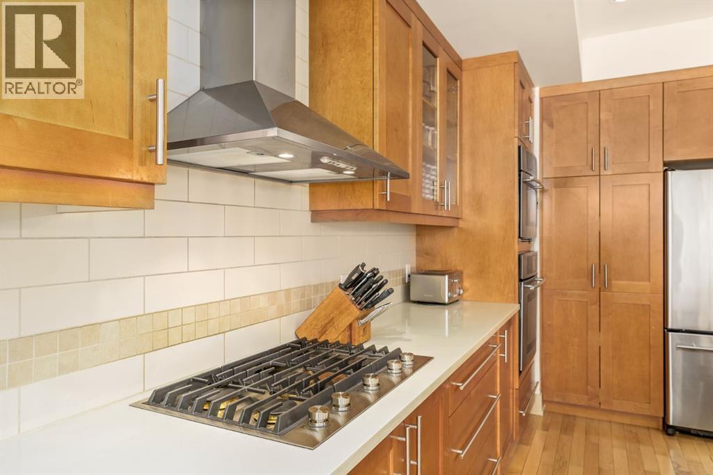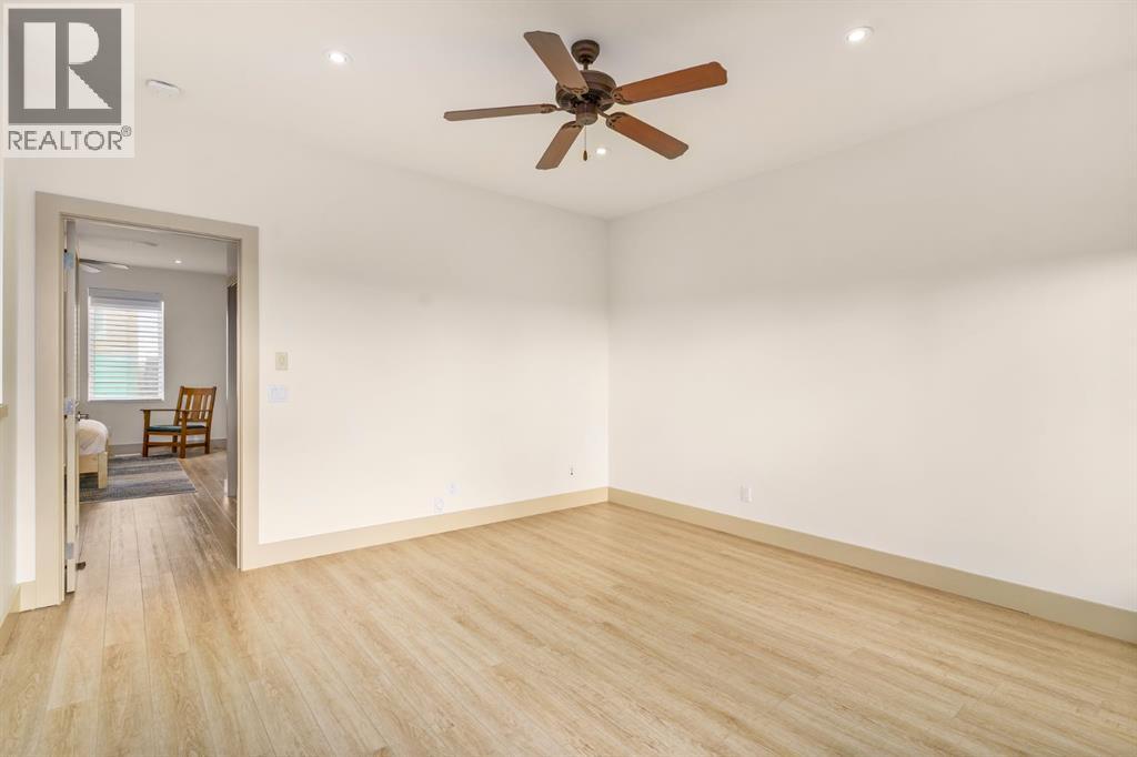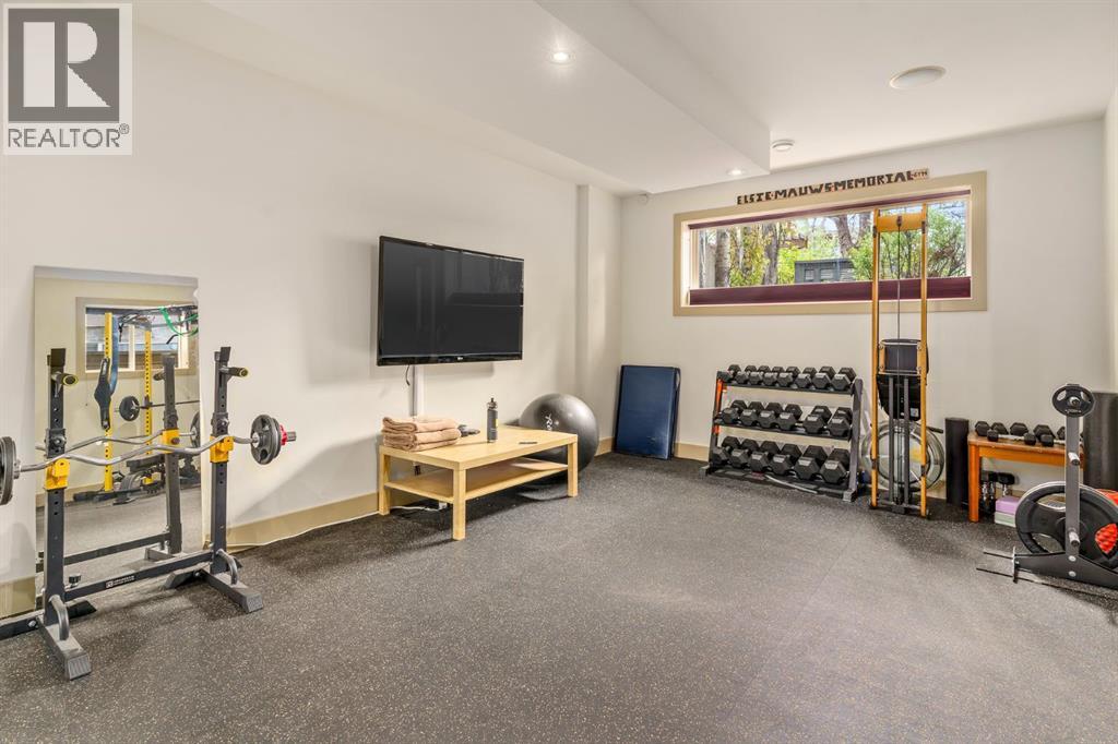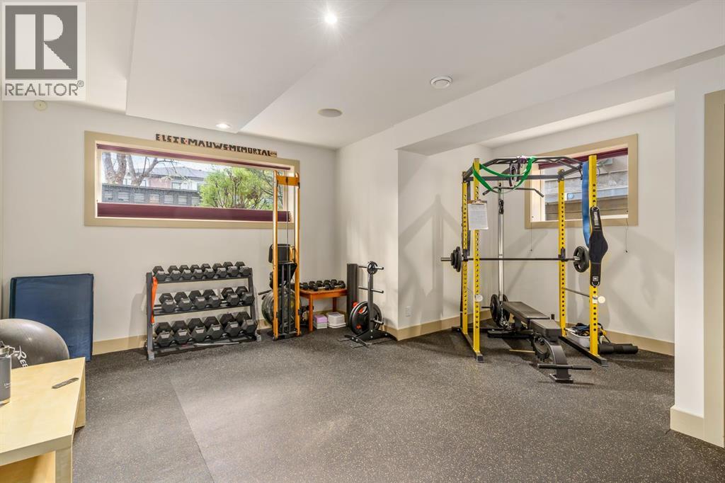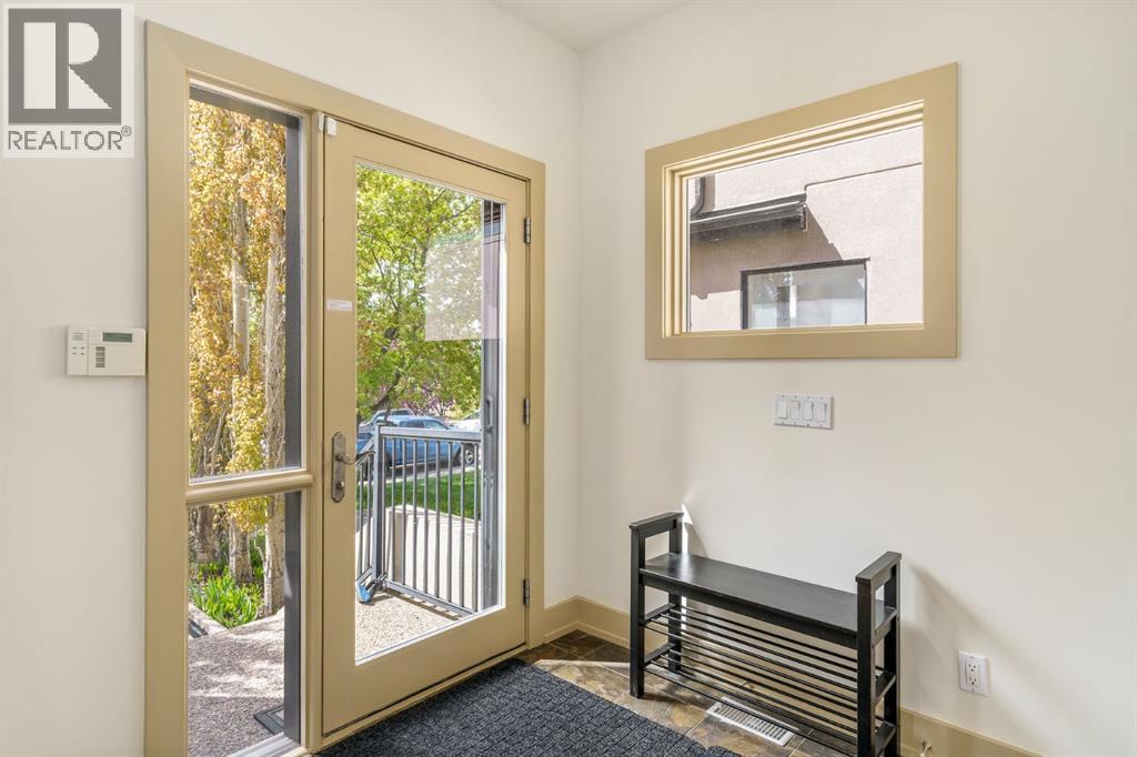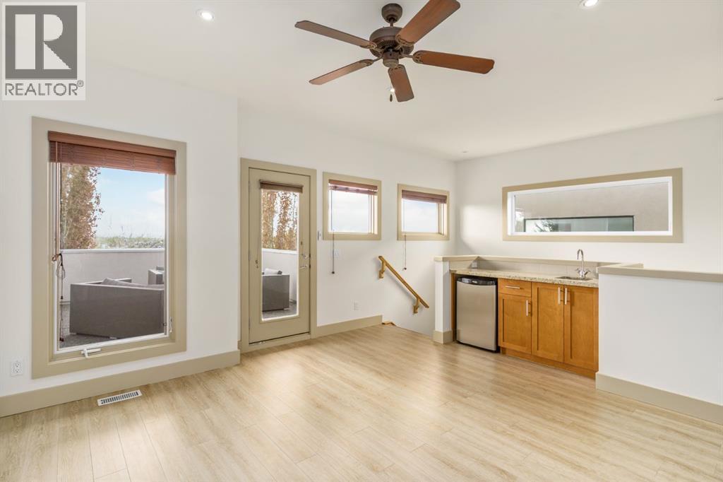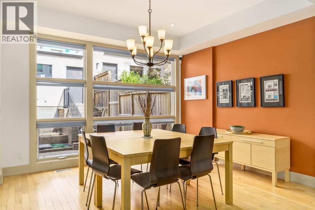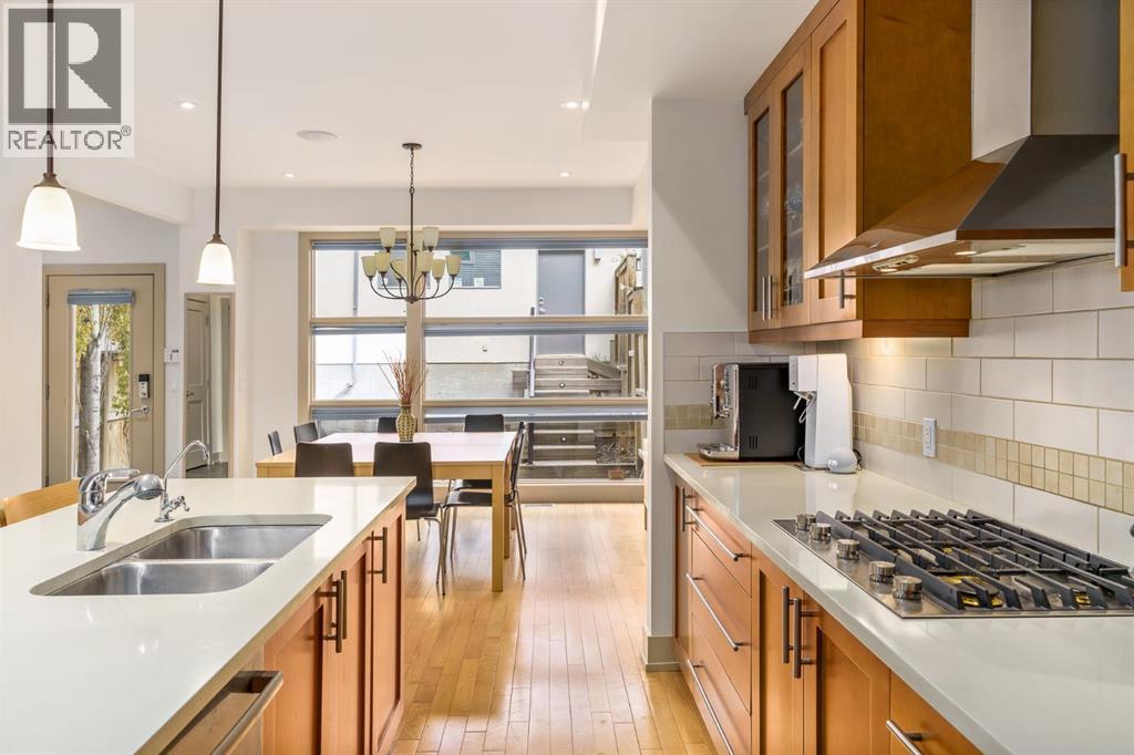 OPEN HOUSE: Sat Oct 11, 12PM-2PM. Immerse yourself in scenic beauty and urban convenience with this remarkable residence in the vibrant Marda Loop District. A corrugated metal exterior and landscaped front yard provide charming curb appeal in this highly coveted neighbourhood. Step into the stunning entryway, where you are welcomed by an open floorplan, pristine hardwood, and fresh paint. The front living room is illuminated by sunlight with an impressive 18ft open to below and giant south facing triple glaze argon filled Plygem windows. Gather around the stone fronted gas fireplace and an accompanying metal feature wall that complements the outside of the home. Nearby is the immaculate chef's kitchen that boasts a long island with undermount sink and filtered water, sleek stainless steel appliances, gas cooktop and quartz countertops. Endless cabinetry space is ideal for optimal storage and organization while the abundant seating options are perfect for hosting dinner parties. A spacious dining room at the rear is filled with light and directly accesses the secluded courtyard patio nestled between the back of the home and convenient double garage. The adjacent powder room features a bowl mounted sink for an interesting pop of character. Ascend the open riser staircase which further radiates light from above onto the second level. Here you will find three large bedrooms and a versatile loft and den area; with built-ins that can easily convert this into a functional office or additional family room. A dedicated laundry room with sink further combines practicality and comfort. The third level encompasses the vast primary retreat and bonus space with a wet bar, both areas featuring new luxury vinyl plank flooring. The bonus area connects onto an enviable south-facing rooftop patio with sweeping views of the picturesque rocky mountains. The primary bedroom comes fully equipped with closet organizers, and an elegant ensuite with a built-in tiled tub, dual sinks, makeup vanity, in floor heating, and glass enclosed shower with product niche and bench. Down below in the fully finished basement you will find 9ft ceilings, radiant in-floor heating and custom fit rubber gym matting in the expansive recreation space. Thoughtful upgrades include rigid styrofoam insulation and gravel on torch on roof, water softener, newer UV protected/triple glazed windows, built-in speakers, Toto toilets and undermount sinks throughout, and a tankless water heater system. Characterized by sunshine that spills into every corner of the home, along with two exclusive amenity spaces for ultimate enjoyment of the great outdoors while maintaining your privacy. This exceptional home has 3,550sq.ft of livable space and is favourably situated in the popular community of Richmond, with unparalleled proximity to green spaces, entertainment and retail; mere walking distance to 33rd Ave with quick access to the Downtown Core and beyond. A perfect blend of luxury and convenience. (id:53676)