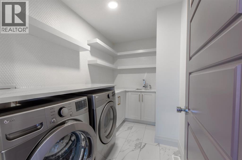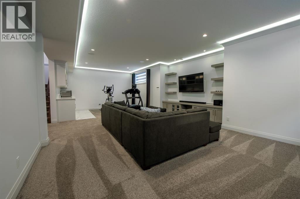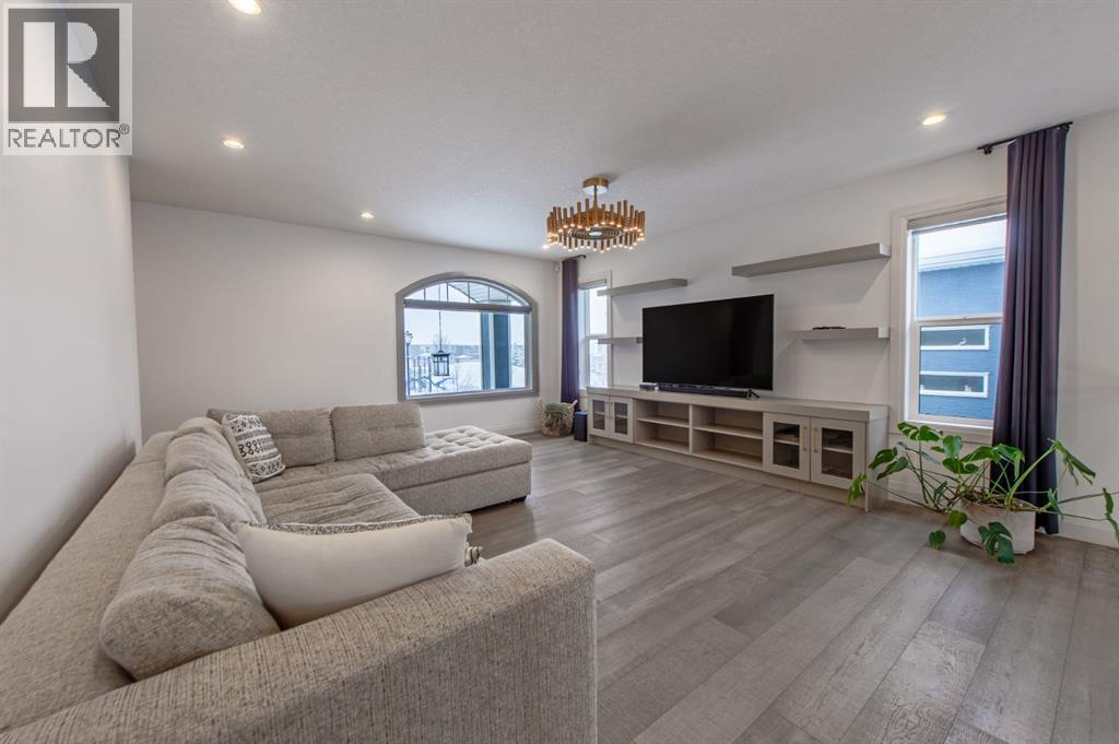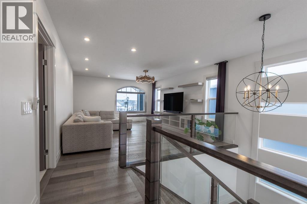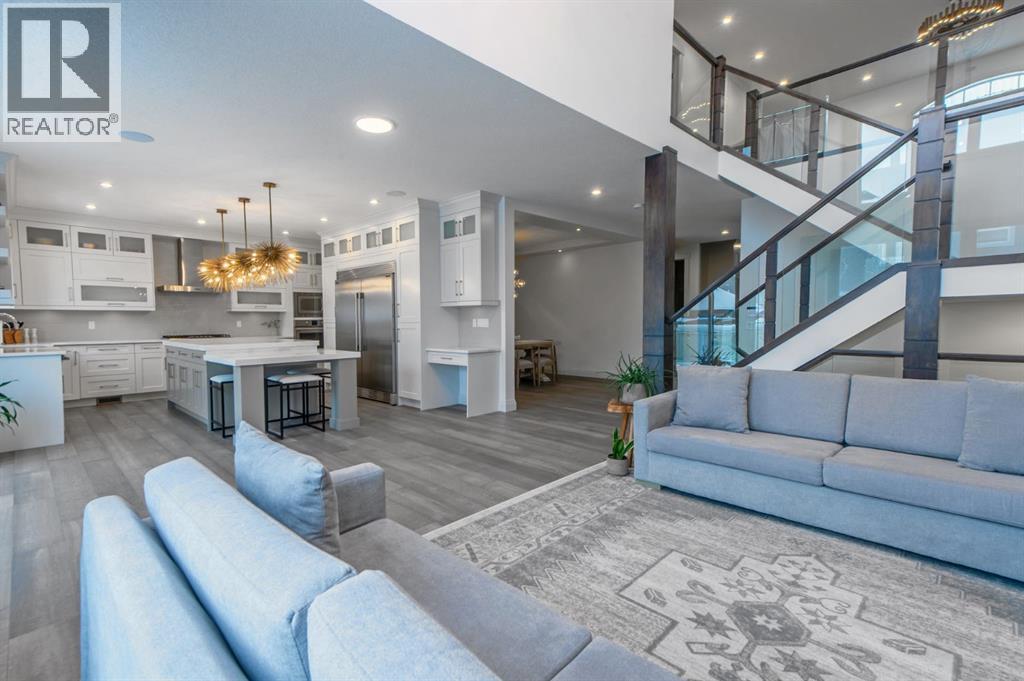 Welcome to Westmere, a lakeside community surrounded by parks, pathways, and natural wetlands. This gorgeous home sits directly across from a green space and offers over 4,300 square feet of thoughtfully designed living, including four bedrooms upstairs and two more in the fully finished basement.The main floor balances elegance and comfort with a private office, a formal dining room with tray ceilings, and a stunning open-to-above living room anchored by a cozy fireplace. The spacious kitchen is designed for both family life and entertaining, offering a large island, high-end stainless steel appliances, a walk-through pantry with direct garage access, and plenty of storage thanks to its ceiling-height cabinetry. From the kitchen, step out onto the glass-railed deck with a natural gas BBQ hookup, perfect for summer evenings.Upstairs, the layout truly shines with a generous bonus room with built-ins, convenient laundry, three well-sized secondary bedrooms, and a relaxing primary suite with a five-piece ensuite. The fully developed basement adds even more space to unwind or host gatherings, featuring a large recreation room with built-ins, a stylish wet bar, two additional bedrooms, a full bath, and two dedicated storage rooms for seasonal items and household extras.This beautifully maintained home also offers air conditioning, central vacuum, a water softener and filtration system, window coverings, built-in speakers, garage heater and a triple attached garage. With a landscaped and fenced yard, finished deck, and its location just minutes from Chestermere Lake, shopping, and everyday amenities, it is ready for you to move in and enjoy. (id:53676)
