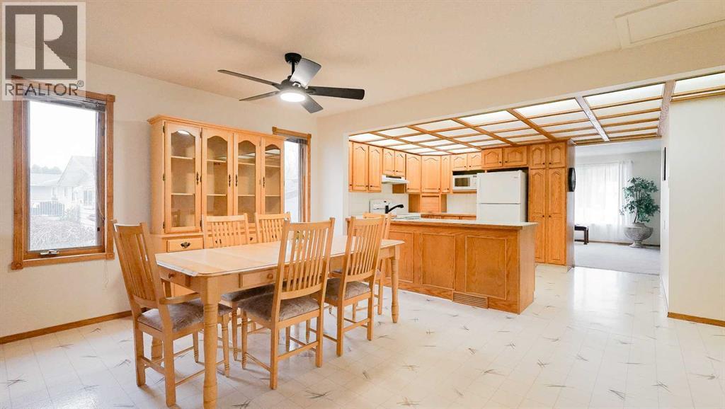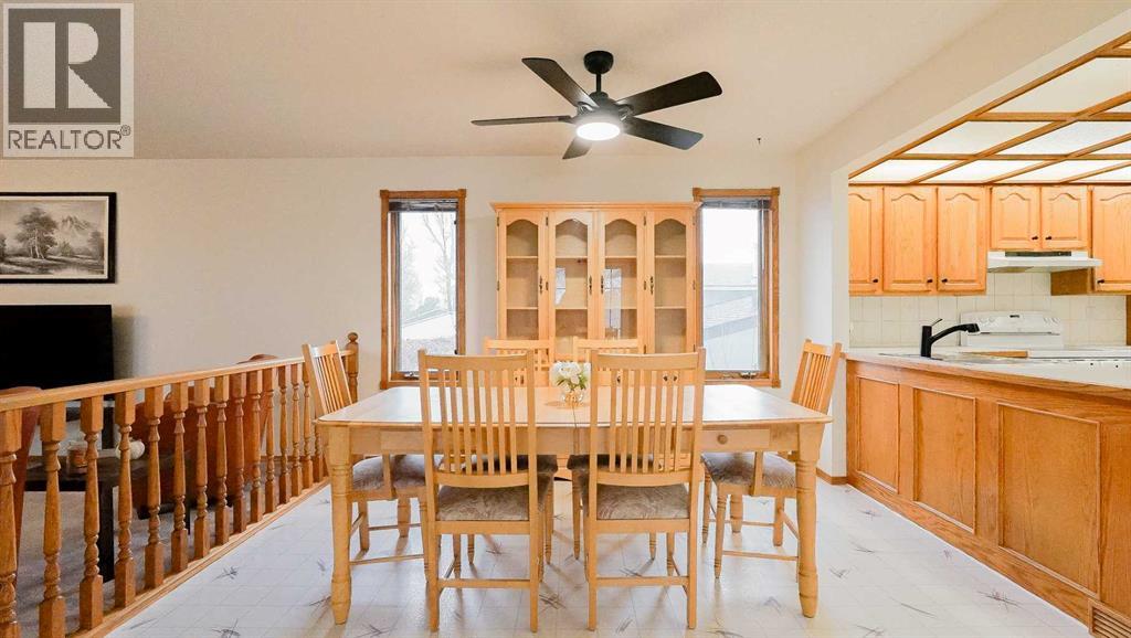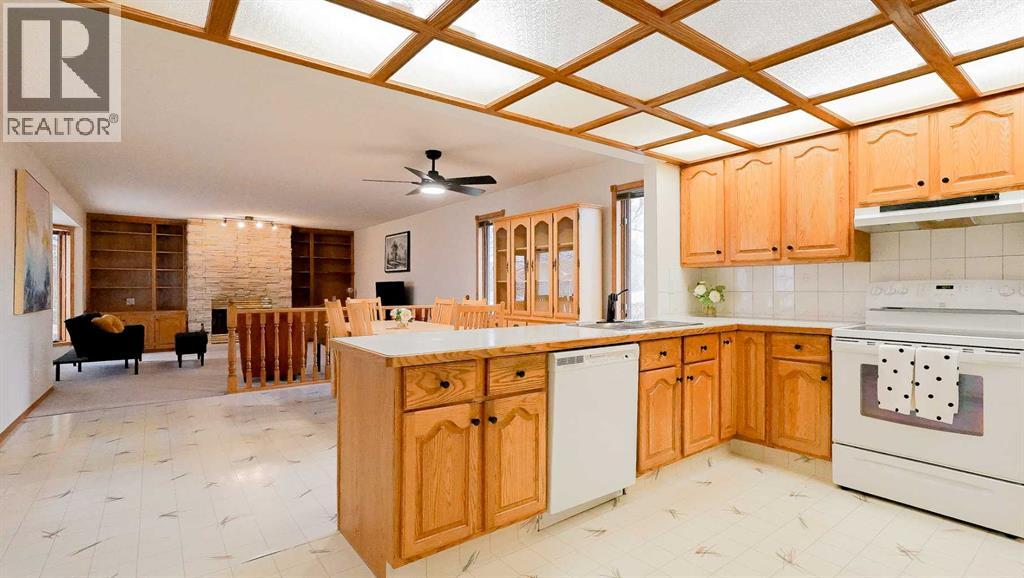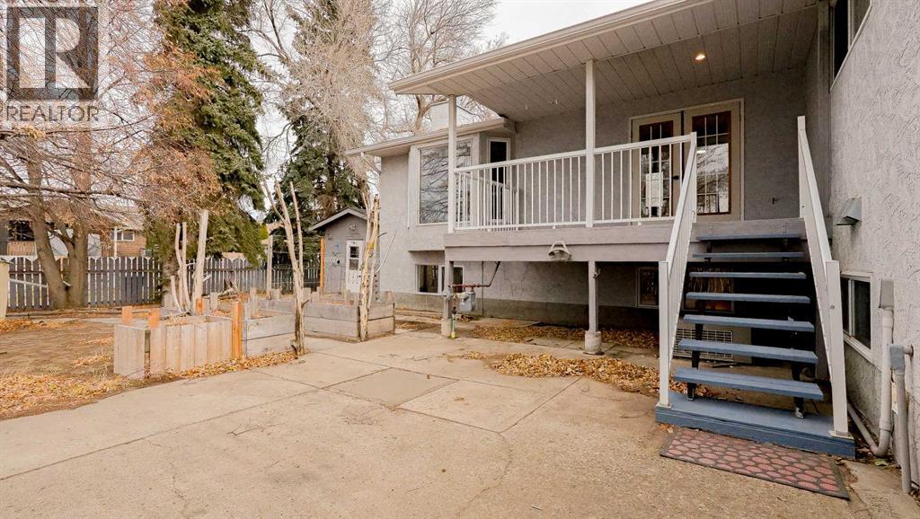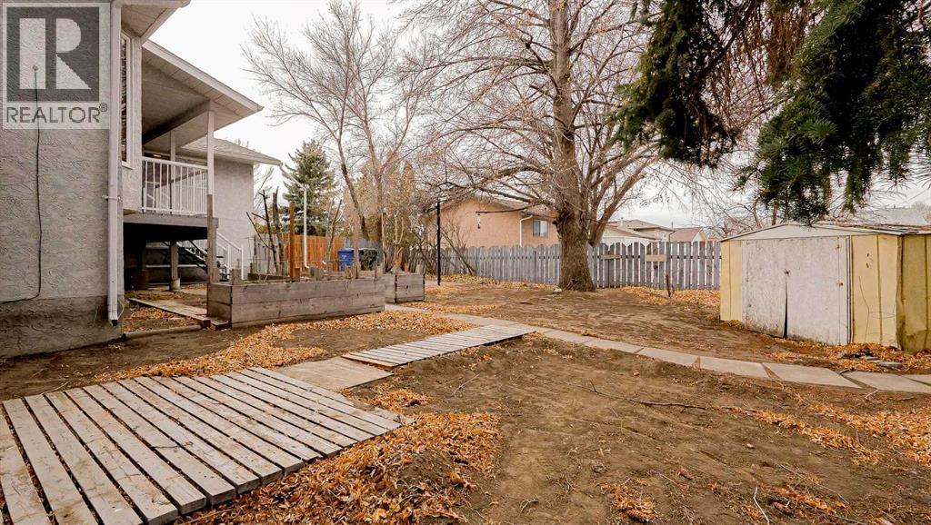 Welcome home to this beautiful and inviting 5-bedroom bi-level, ideally located in a quiet, family-oriented neighborhood close to schools, shopping, and parks — the perfect blend of comfort and convenience. The main floor showcases a large, functional kitchen with abundant cabinetry and generous counter space, ideal for everyday cooking or entertaining guests. The expansive dining area flows seamlessly into the back great room, featuring a stunning floor-to-ceiling stone wood burning fireplace — a true showpiece and cozy gathering spot. The front living room boasts large picture windows, filling the home with natural light. Two spacious bedrooms and an updated 4-piece main bathroom complete the upper level. Downstairs, the fully finished basement adds exceptional living space with three additional bedrooms, a modern updated 3-piece bathroom, and a comfortable family room perfect for movie nights or kids’ playtime. Step outside to enjoy the fully fenced yard, featuring space to add a garage, a covered deck, two storage sheds, and a concrete patio with a basketball net. Raised garden boxes provide a wonderful opportunity for those who love to garden, adding charm and functionality to the outdoor space. There’s plenty of room here for outdoor activities, entertaining, and relaxation. This well-maintained home offers flexibility, functionality, and room for everyone. Don’t miss your chance to make it yours! (id:53676)