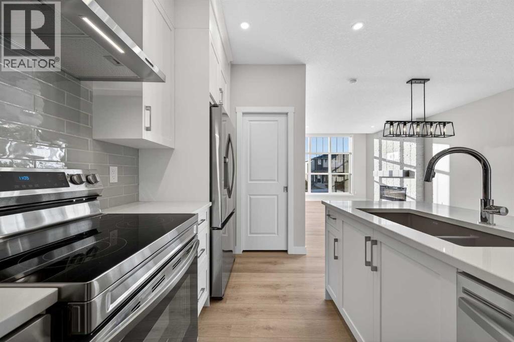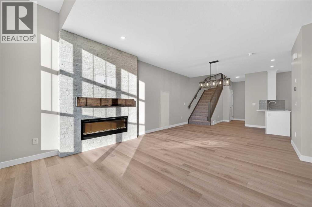Welcome to 2198 Bayview Drive, the "Eli" - the largest floor plan option available by Genesis Builders Group. This beautifully finished NO CONDO FEE street-side townhome offers almost 1600 sq ft. of well-designed living space with 3 bedrooms, 2.5 bathrooms and a flex space on the 2nd floor, plus an unfinished basement with 9-foot ceilings, ready for your ideas. Large windows and soaring ceilings on the main floor let natural light fill the open-concept living space. The chef-inspired kitchen features sleek cabinetry and stone countertops and is well-equipped with stainless-steel appliances. The kitchen is tucked away yet still feels open and inviting, providing ample room for activities in the open-concept dining and living room. A floor-to-ceiling tiled fireplace is the living room's focal point. Complementing the main floor is a convenient half bath, storage, and access to the attached double garage, which is large enough for a truck. Venturing upstairs, you will find a spacious primary retreat with a spa-like ensuite featuring a shower, his-and-hers sinks, and a walk-in closet. Two additional bedrooms, a full bathroom, a flex room, a 4-piece bathroom, and laundry facilities complete the upper level. Enjoy spending time on your upper rooftop patio, situated above the garage, which is an excellent space for entertaining. Bayview is a beautiful community with parks, benches and pathways that meander throughout the community and along the canals. Kids and adults alike will enjoy the outdoor basketball nets, gym, amphitheatre, and tennis courts, which will convert into a skating rink in the winter. Come and see for yourself all the amenities the community has to offer! *RMS has been applied to the construction drawings provided by the builder. Taxes to be assessed* (id:53676)