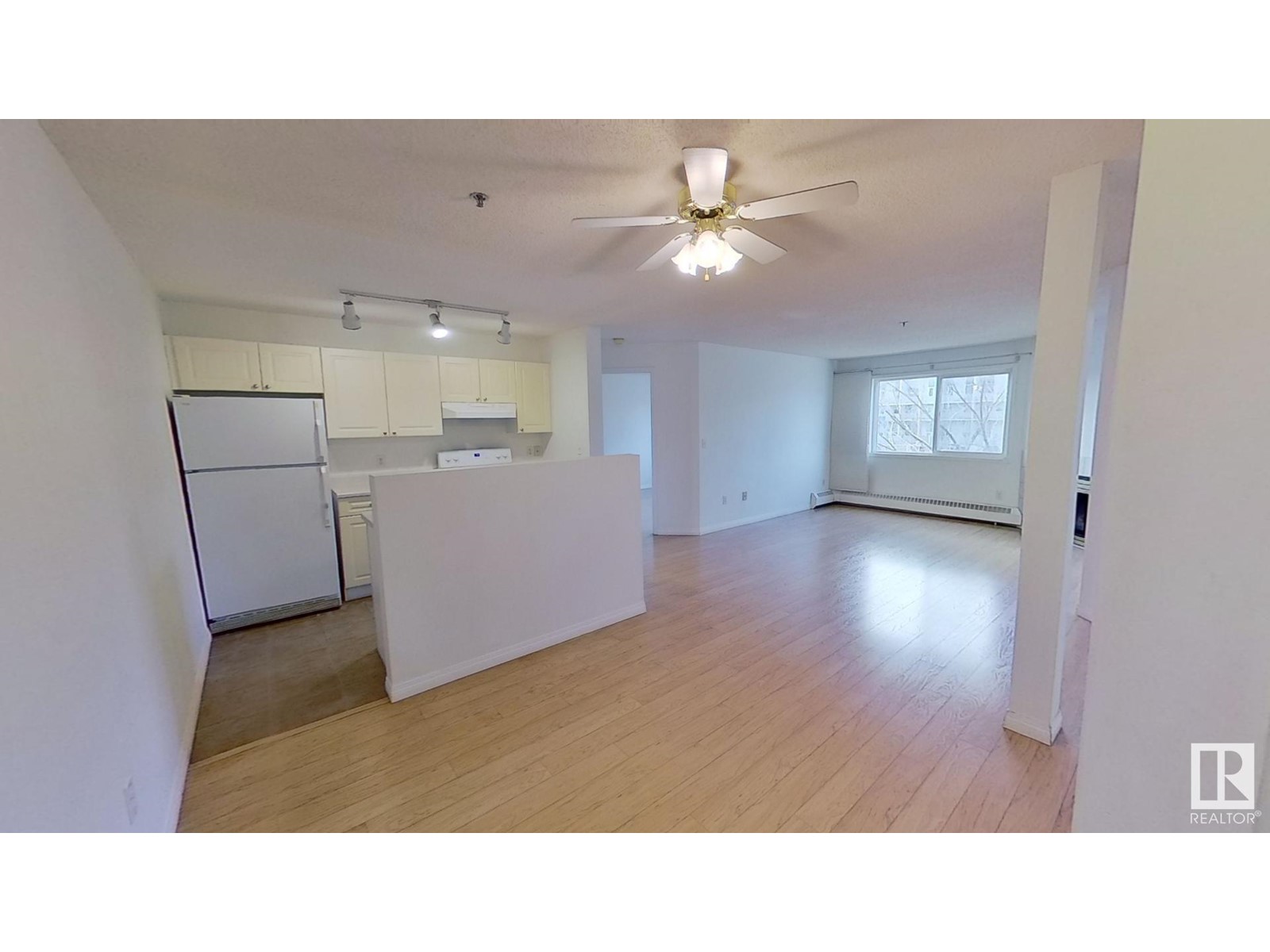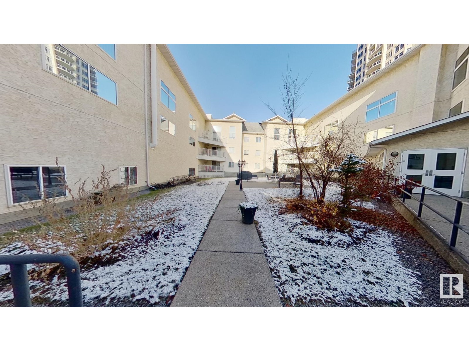 2 bedroom 2 bath condo in the heart of Downtown Edmonton. Steps away from MacEwan University. Easy access to Rogers place, transit, restaurants, shopping, bike lanes, and the new Warehouse Park (currently under construction). Located on the second floor. Features a master bedroom with walk through closet and full bath. Second bedroom is on the opposite side of the condo and is right next to the second full bath. Gas fireplace in bright and open central living area. Includes five appliances (stove, fridge, built in dishwasher, stacking washer and dryer). Includes a titled, heated underground parking space. Suitable for students, downtown workers, or as a rental property. Condo complex has an elevator, and features a secure interior courtyard with seating, green space, a barbecue area, picnic tables, and a bike rack. (id:53676)