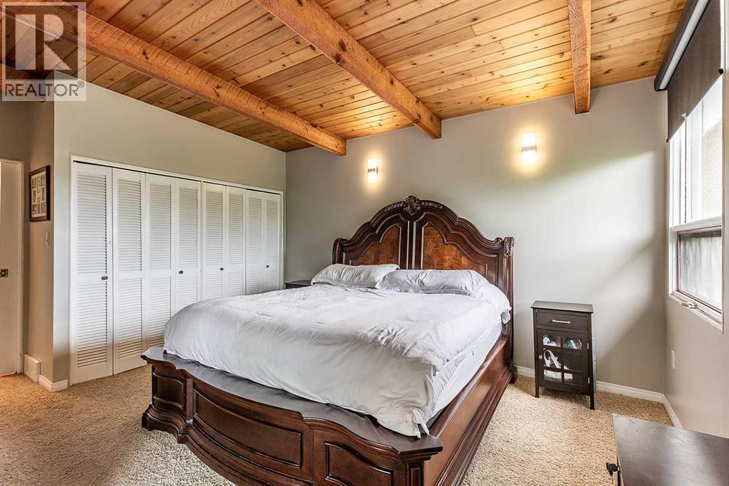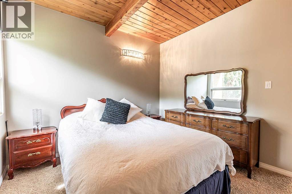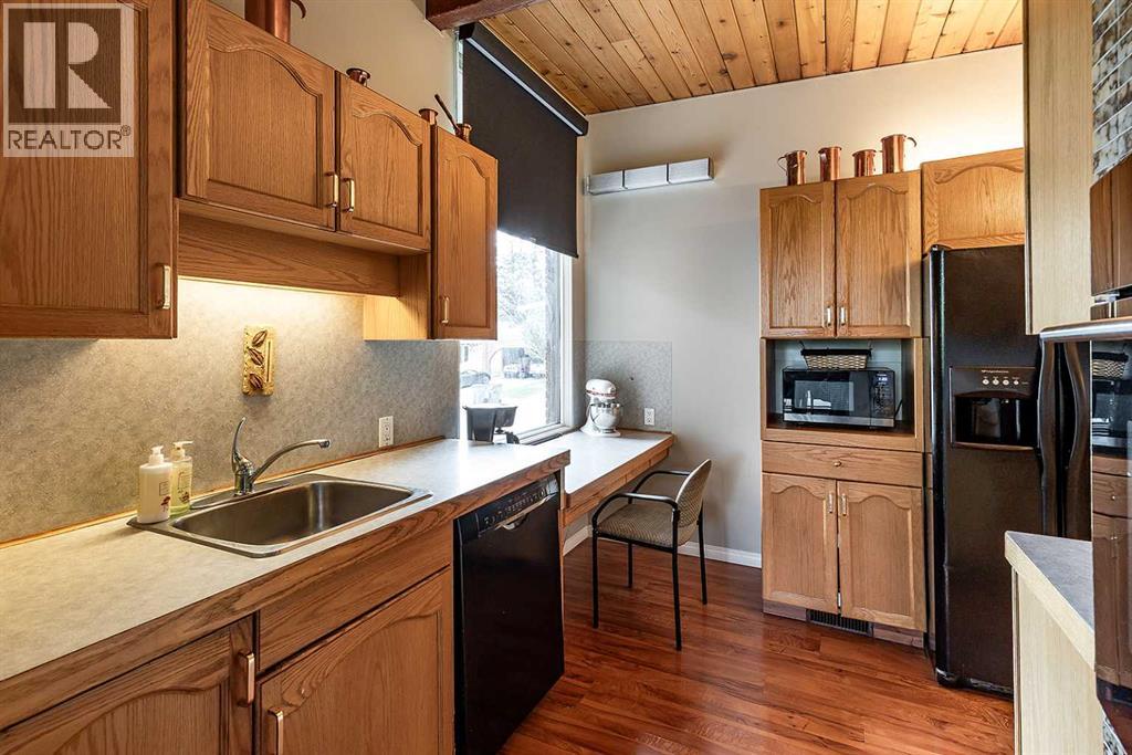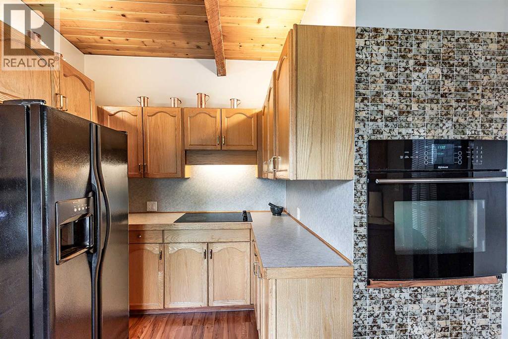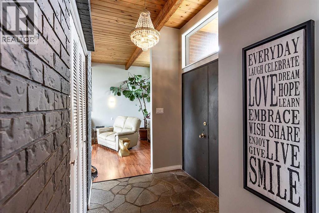 Discover this architecturally designed, one-of-a-kind, walkout hillside bungalow that perfectly frames stunning views of the river valley. Nestled among mature trees, this home offers privacy, character, and a peaceful connection to nature. The main floor features striking open-beamed, sloped ceilings and a beautiful double masonry fireplace, creating a warm and inviting atmosphere. The open-concept layout flows into an oak kitchen with a built-in oven — designed to capture both function and charm. Just off the main living area, you’ll find a gorgeous sunroom set among the trees — the perfect space to unwind, entertain, or simply enjoy the view in every season. With 3 bedrooms and 2 bathrooms, this home also features a developed walkout basement offering potential for an additional bedroom or flexible living space. Outside, a two-tiered backyard and partially covered patio make the most of the natural setting. Additional highlights include a single attached garage and extra parking on the front pad. This truly unique property combines architectural interest, incredible views, and a serene setting — a rare find in Medicine Hat’s sought-after southwest hills. (id:53676)
