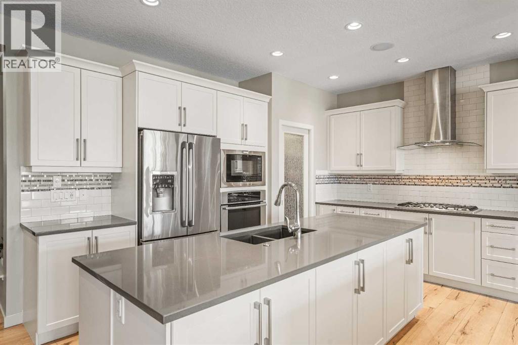 Welcome to 220 Auburn Meadows Crescent, a beautifully curated home that blends timeless design, everyday function, and a coveted location in the heart of Auburn Bay.Offering more than 2,500 square feet of refined living space, this three-bedroom, two-and-a-half-bathroom home captures the essence of comfortable luxury. Set on a peaceful street with no rear neighbours and backing directly onto Prince of Peace School and a quiet walking path, it offers the perfect balance of privacy, convenience, and community connection.Step inside and feel an immediate sense of calm. Wide-plank laminate flooring flows throughout the main level, setting a warm, contemporary tone. The kitchen anchors the home with dual quartz islands, built-in stainless-steel appliances, and generous storage. It is a space designed as much for conversation as for cooking. The open living and dining areas invite gathering, centered around a gas fireplace and a built-in stereo system that enhances every moment, whether it is a quiet evening in or a lively dinner with friends.From the dining area, step out onto your spacious deck and then down to the beautiful stamped-concrete patio, surrounded by thoughtfully landscaped gardens. This serene outdoor retreat extends your living space and offers a seamless connection to the greenspace beyond. Whether you’re enjoying your morning coffee or hosting an evening under the stars, it’s a setting designed for both relaxation and connection.Upstairs, a bright and spacious bonus room provides a versatile retreat for work or play. The primary suite feels like a private sanctuary with dual walk-in closets and a spa-inspired ensuite featuring quartz-topped double vanities and a deep soaker tub. Two additional bedrooms share a beautifully designed bathroom with double sinks and a separate shower and toilet area, offering both function and privacy for family or guests. Upper-level laundry completes the space, ensuring that practicality meets elegance at every turn .Additional highlights include central air conditioning, a double attached garage, and an unspoiled basement ready to be finished to your taste. Whether you envision a gym, media room, or guest suite, the possibilities are endless.Life in Auburn Bay means more than just a home. It is a lifestyle. Enjoy year-round lake access, parks and pathways, schools, boutique shops, restaurants, and the nearby South Health Campus.This is a home that truly has it all. Elevated design, thoughtful layout, and an irreplaceable location within one of Calgary’s most vibrant lake communities.Welcome home. (id:53676)