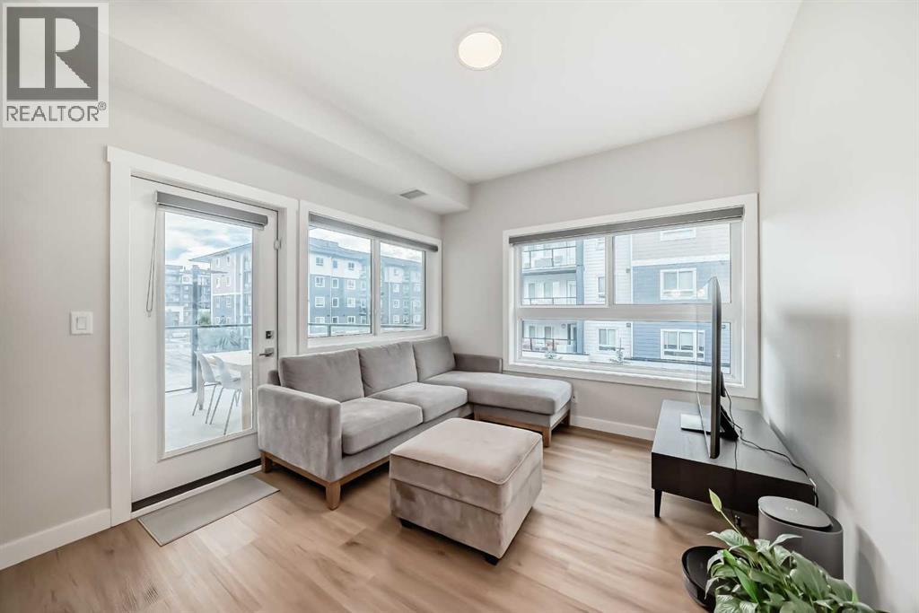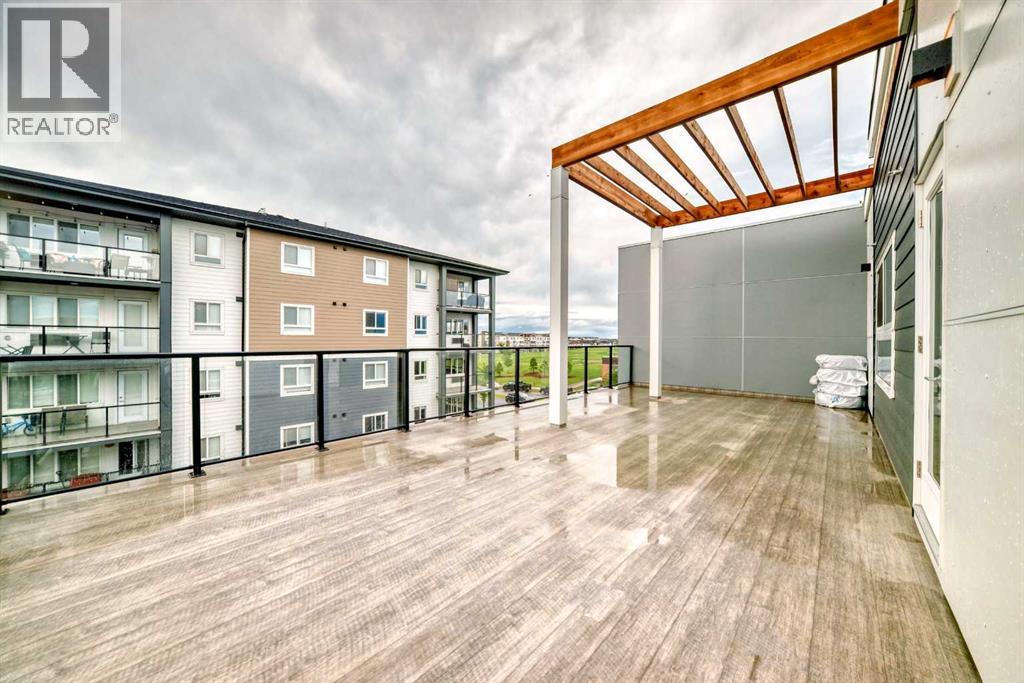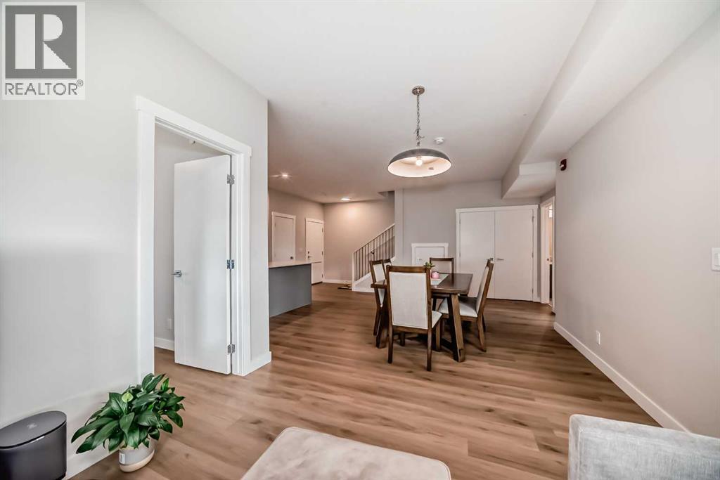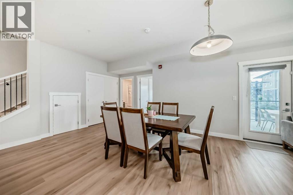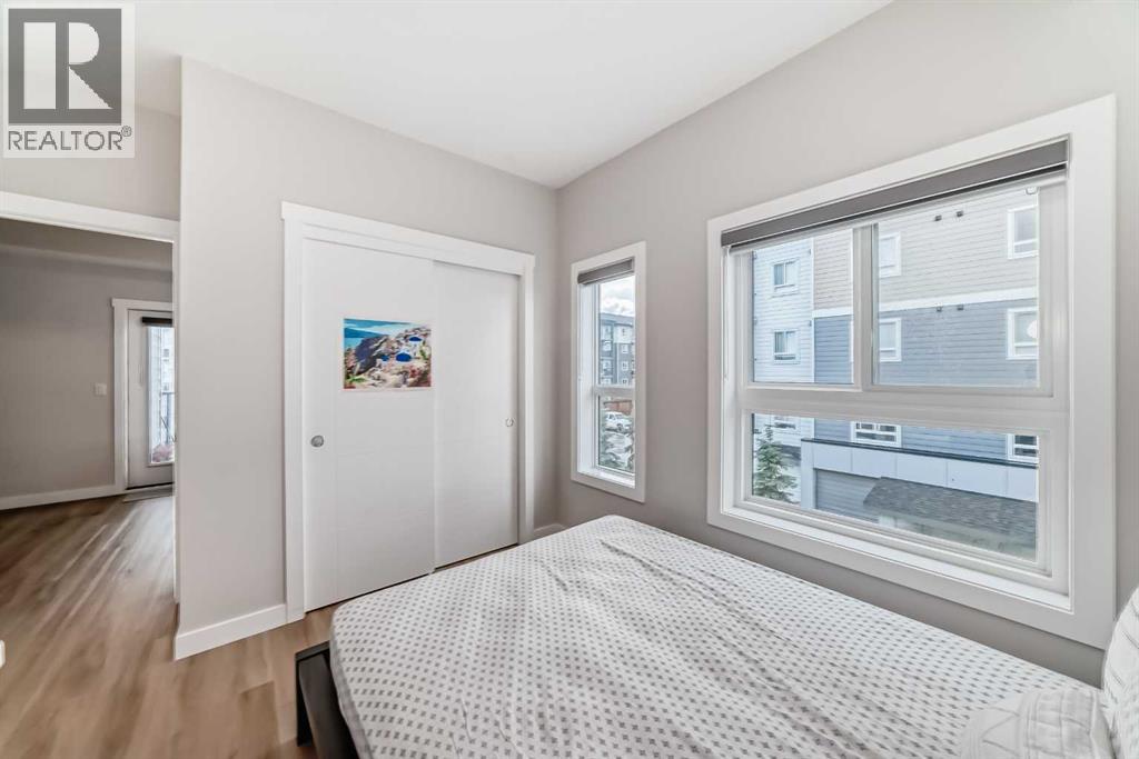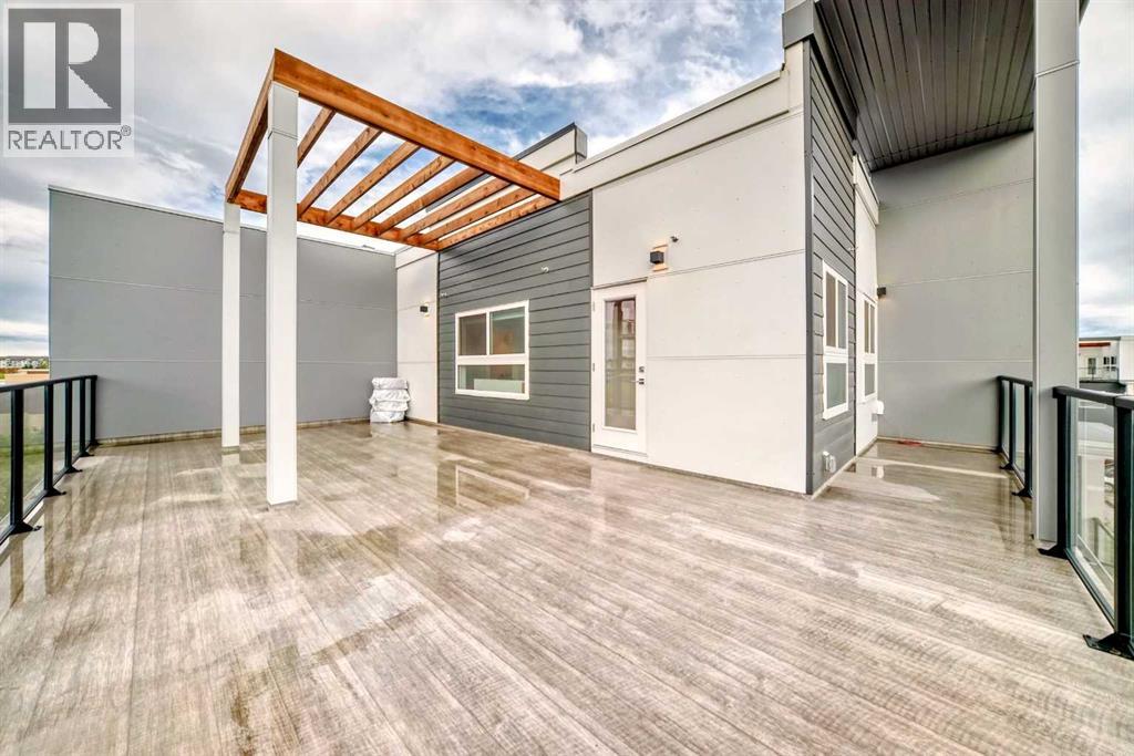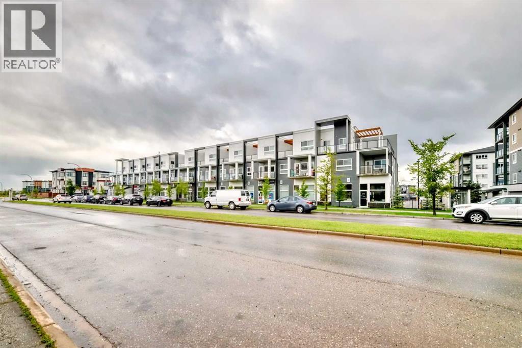 3 bedroom corner townhouse ideally located across from a school with convenient street level amenities! Modern and sophisticated this 3 bedroom and 2 bathroom home has a unique layout for ultimate privacy and 2 large outdoor spaces including a rooftop patio! The main floor is open and bright with abundant natural light, wide plank flooring and a neutral color pallet. Inspiring culinary creativity, the kitchen features full-height cabinets, stainless steel appliances and a breakfast bar on the peninsula island. Centering the open concept space is the dining room with clear sightlines encouraging unobstructed conversations. The living room promotes relaxation or head out to glass glass-railed covered balcony for casual barbeques and time spent unwinding. A two large size bedroom, a full bathroom, in-suite laundry and a storage room are also on this level. The upper level is a luxurious escape with a separate entrance. Gather in the bonus room for movie and games nights. Impress your guests on the gorgeous rooftop patio and enjoy the rare bonus of having two separate outdoor spaces. Spacious and bright with no neighbours above, the primary bedroom is a true owner’s retreat with a walk in closet that lead to the second entrance to the unit. Underground parking further adds to your comfort and convenience. Located in Skyview Ranch surrounded by big prairie sky pierced with city skyline and every amenity: shopping, schools, parks and a multitude of green spaces and pathways are right your door! Truly an unbeatable location for this exceptional unit with a perfect floor plan! (id:53676)