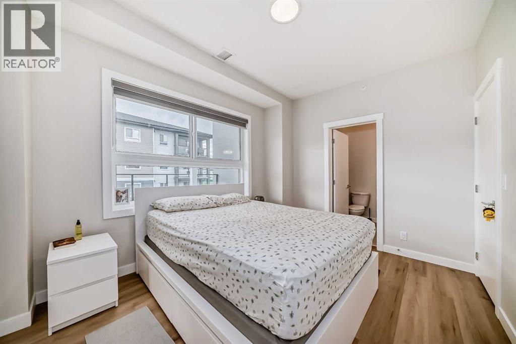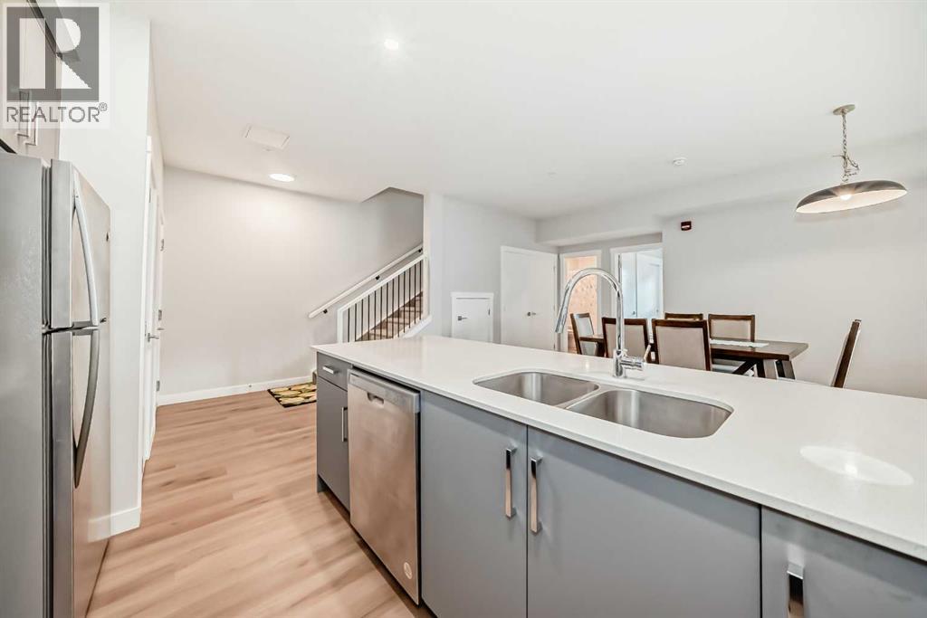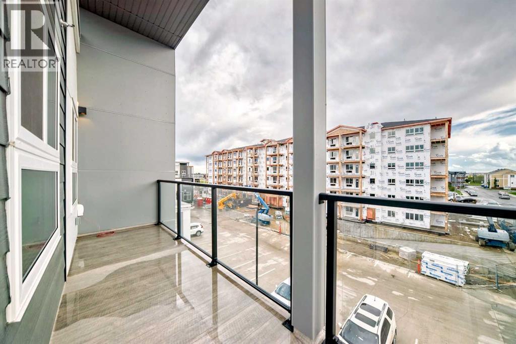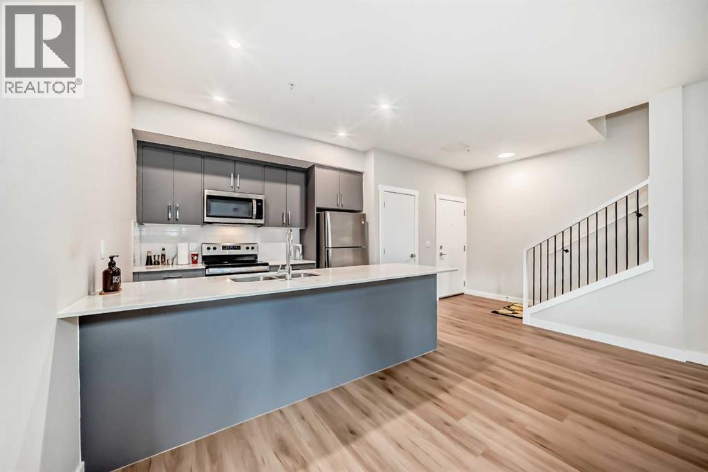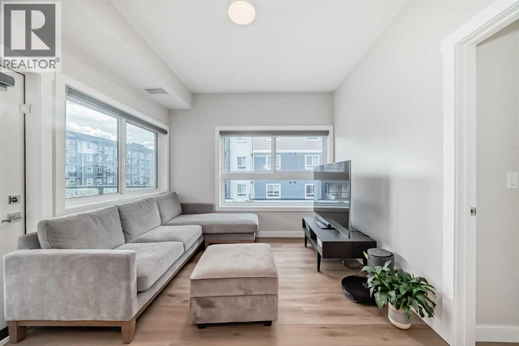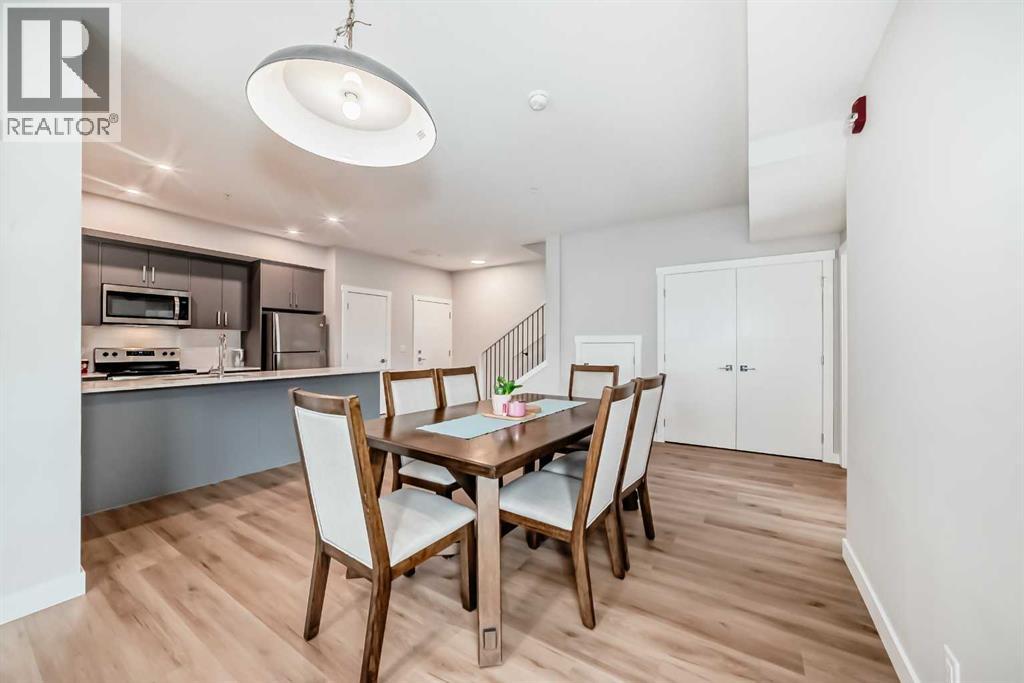 3 bedroom corner townhouse ideally located across from a school with convenient street level amenities! Modern and sophisticated this 3 bedroom and 2 bathroom home has a unique layout for ultimate privacy and 2 large outdoor spaces including a rooftop patio! The main floor is open and bright with abundant natural light, wide plank flooring and a neutral color pallet. Inspiring culinary creativity, the kitchen features full-height cabinets, stainless steel appliances and a breakfast bar on the peninsula island. Centering the open concept space is the dining room with clear sightlines encouraging unobstructed conversations. The living room promotes relaxation or head out to glass glass-railed covered balcony for casual barbeques and time spent unwinding. A two large size bedroom, a full bathroom, in-suite laundry and a storage room are also on this level. The upper level is a luxurious escape with a separate entrance. Gather in the bonus room for movie and games nights. Impress your guests on the gorgeous rooftop patio and enjoy the rare bonus of having two separate outdoor spaces. Spacious and bright with no neighbours above, the primary bedroom is a true owner’s retreat with a walk in closet that lead to the second entrance to the unit. Underground parking further adds to your comfort and convenience. Located in Skyview Ranch surrounded by big prairie sky pierced with city skyline and every amenity: shopping, schools, parks and a multitude of green spaces and pathways are right your door! Truly an unbeatable location for this exceptional unit with a perfect floor plan! (id:53676)