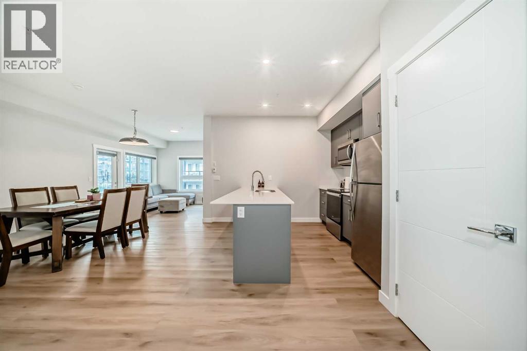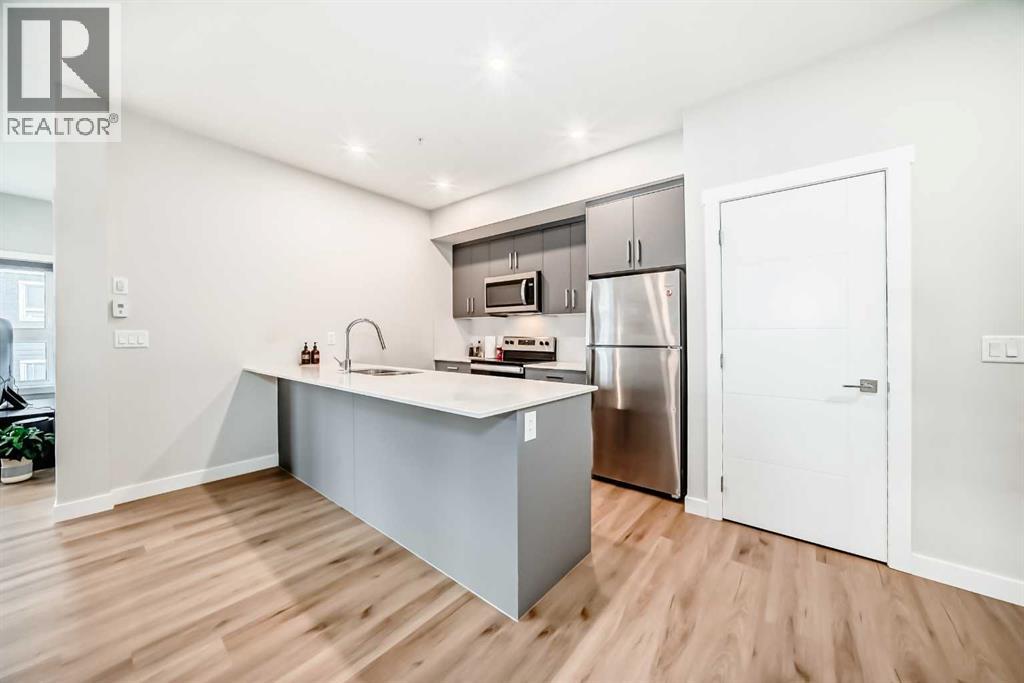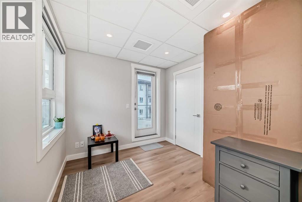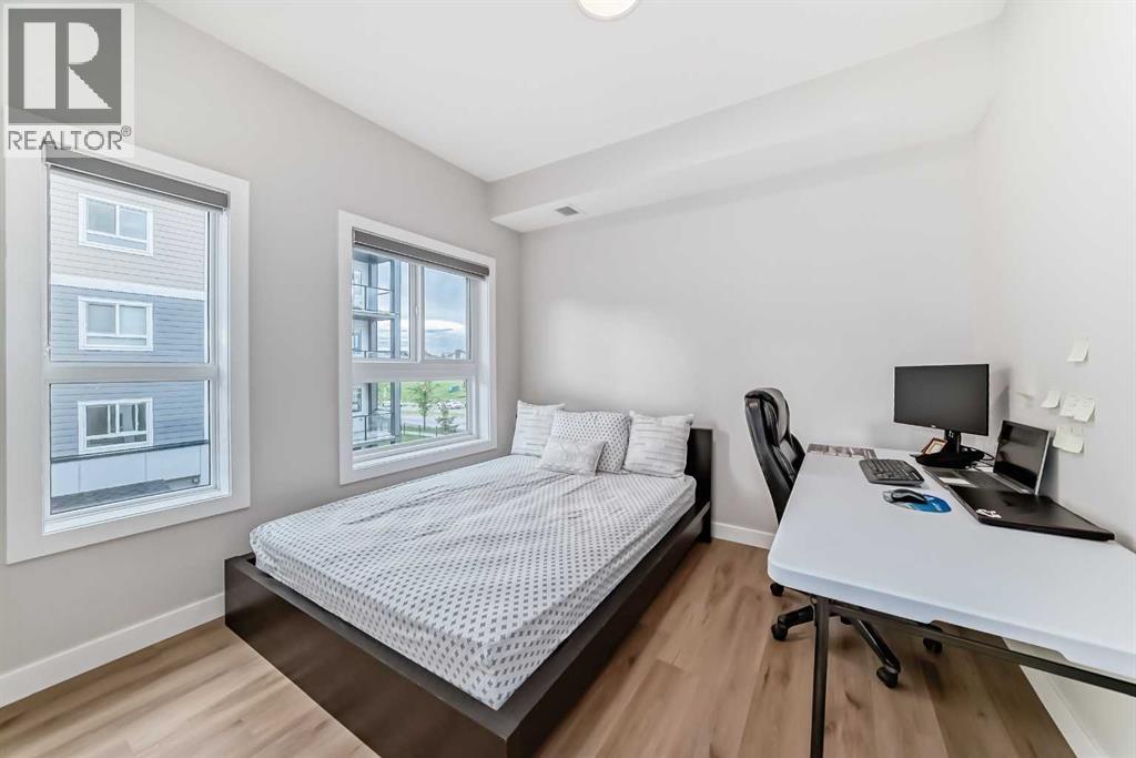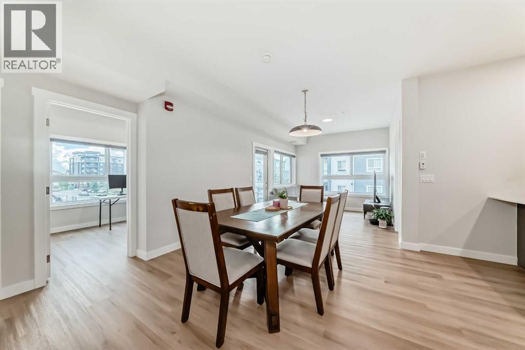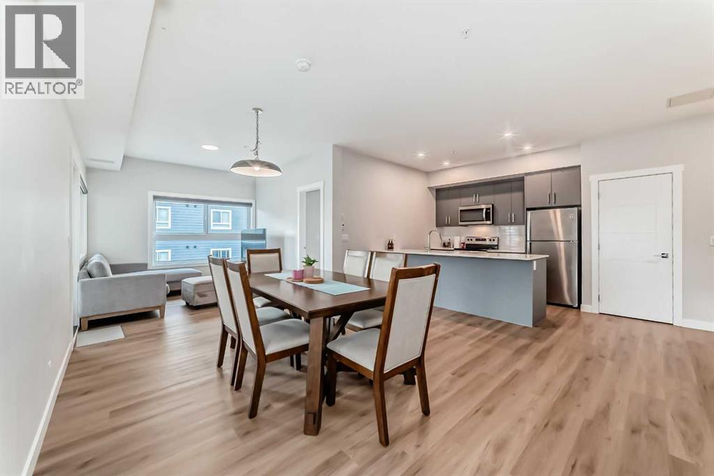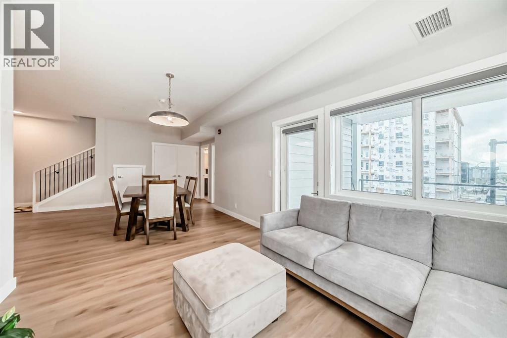 3 bedroom corner townhouse ideally located across from a school with convenient street level amenities! Modern and sophisticated this 3 bedroom and 2 bathroom home has a unique layout for ultimate privacy and 2 large outdoor spaces including a rooftop patio! The main floor is open and bright with abundant natural light, wide plank flooring and a neutral color pallet. Inspiring culinary creativity, the kitchen features full-height cabinets, stainless steel appliances and a breakfast bar on the peninsula island. Centering the open concept space is the dining room with clear sightlines encouraging unobstructed conversations. The living room promotes relaxation or head out to glass glass-railed covered balcony for casual barbeques and time spent unwinding. A two large size bedroom, a full bathroom, in-suite laundry and a storage room are also on this level. The upper level is a luxurious escape with a separate entrance. Gather in the bonus room for movie and games nights. Impress your guests on the gorgeous rooftop patio and enjoy the rare bonus of having two separate outdoor spaces. Spacious and bright with no neighbours above, the primary bedroom is a true owner’s retreat with a walk in closet that lead to the second entrance to the unit. Underground parking further adds to your comfort and convenience. Located in Skyview Ranch surrounded by big prairie sky pierced with city skyline and every amenity: shopping, schools, parks and a multitude of green spaces and pathways are right your door! Truly an unbeatable location for this exceptional unit with a perfect floor plan! (id:53676)