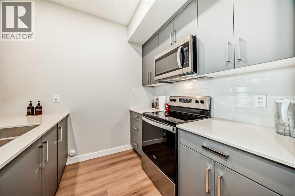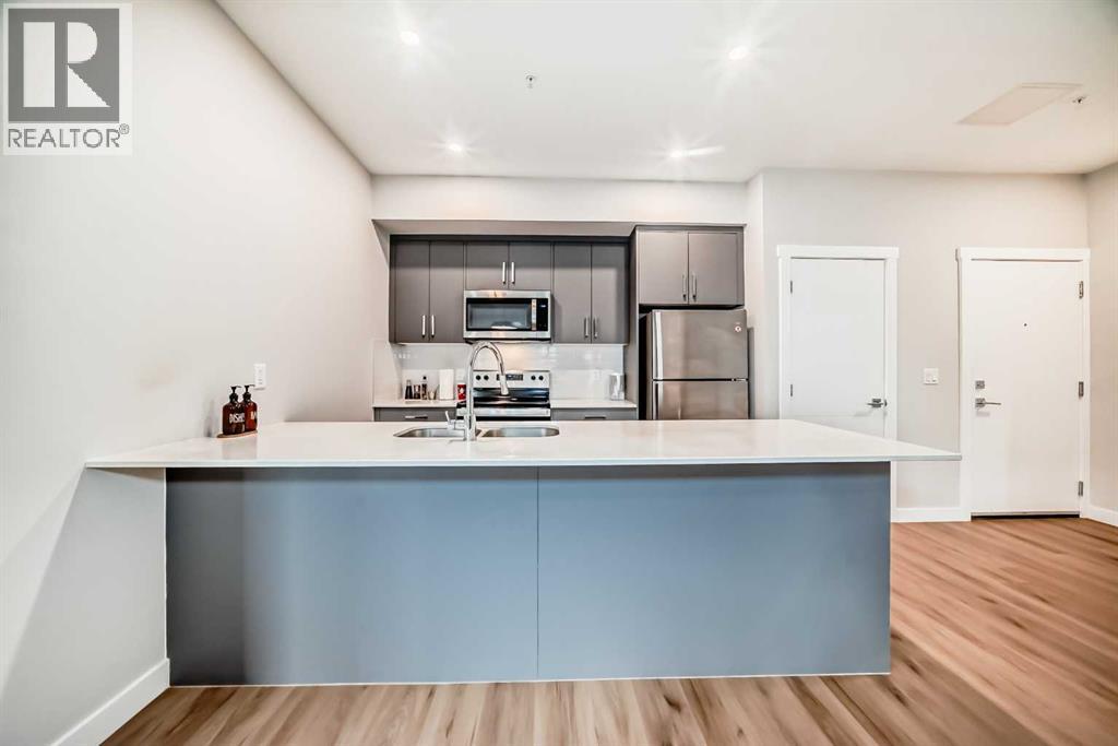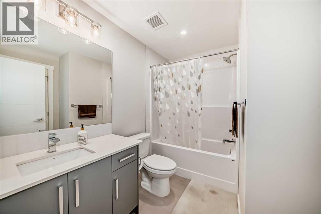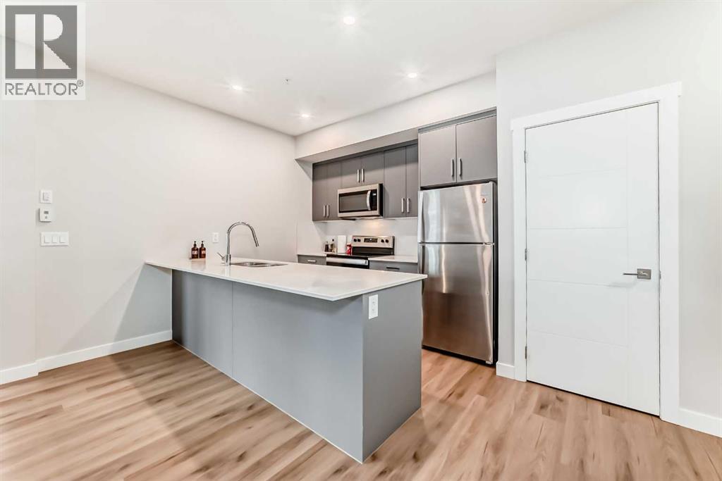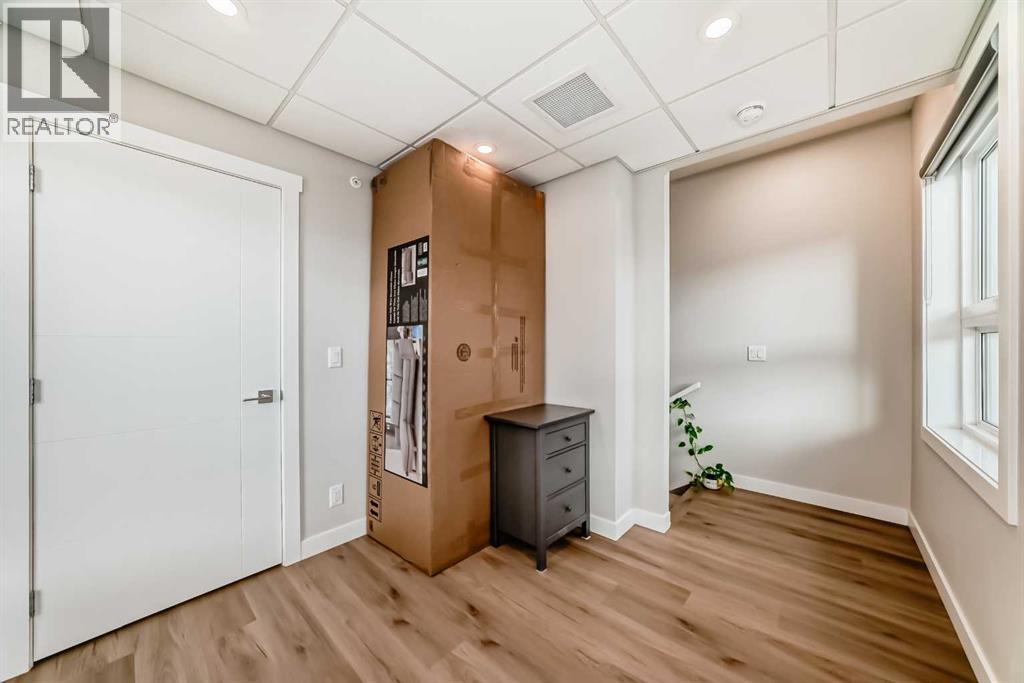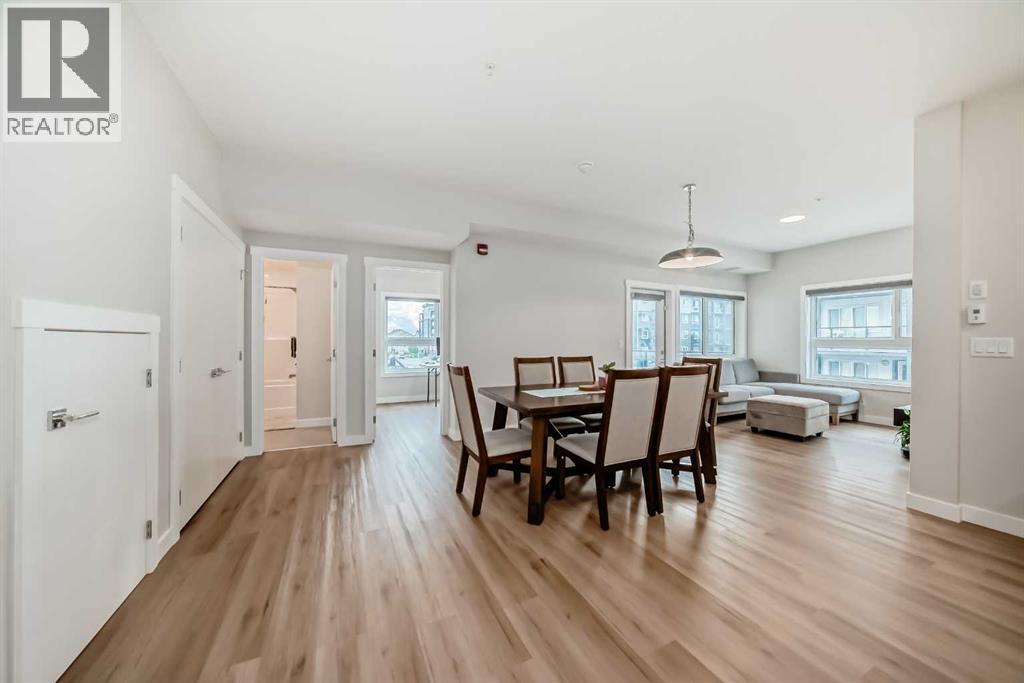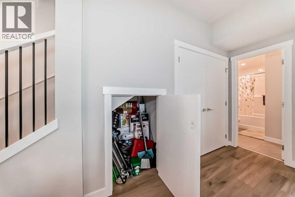 3 bedroom corner townhouse ideally located across from a school with convenient street level amenities! Modern and sophisticated this 3 bedroom and 2 bathroom home has a unique layout for ultimate privacy and 2 large outdoor spaces including a rooftop patio! The main floor is open and bright with abundant natural light, wide plank flooring and a neutral color pallet. Inspiring culinary creativity, the kitchen features full-height cabinets, stainless steel appliances and a breakfast bar on the peninsula island. Centering the open concept space is the dining room with clear sightlines encouraging unobstructed conversations. The living room promotes relaxation or head out to glass glass-railed covered balcony for casual barbeques and time spent unwinding. A two large size bedroom, a full bathroom, in-suite laundry and a storage room are also on this level. The upper level is a luxurious escape with a separate entrance. Gather in the bonus room for movie and games nights. Impress your guests on the gorgeous rooftop patio and enjoy the rare bonus of having two separate outdoor spaces. Spacious and bright with no neighbours above, the primary bedroom is a true owner’s retreat with a walk in closet that lead to the second entrance to the unit. Underground parking further adds to your comfort and convenience. Located in Skyview Ranch surrounded by big prairie sky pierced with city skyline and every amenity: shopping, schools, parks and a multitude of green spaces and pathways are right your door! Truly an unbeatable location for this exceptional unit with a perfect floor plan! (id:53676)