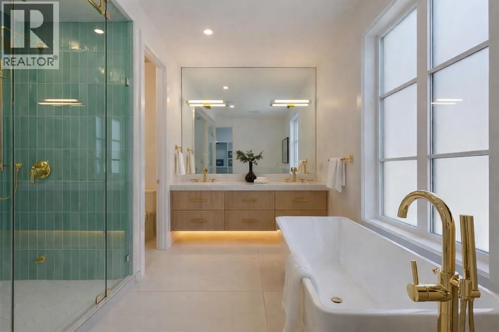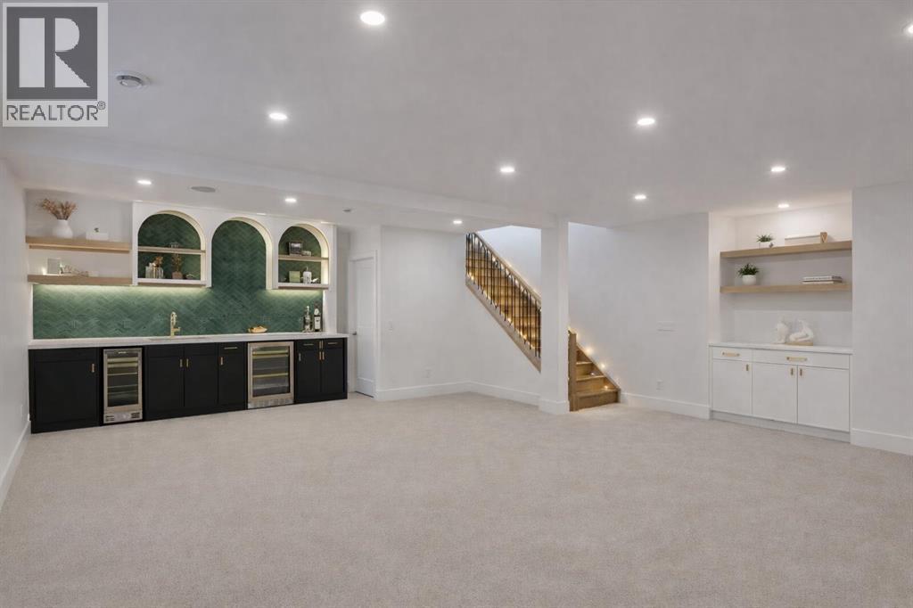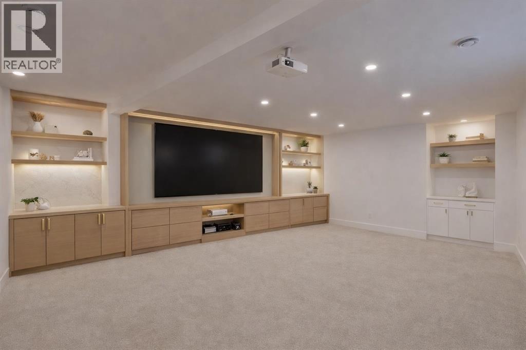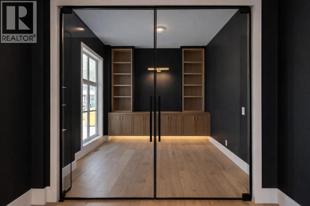 Welcome to the highly sought-after community of Banff Trail, where inner-city convenience meets modern luxury living. This brand-new residence showcases exceptional craftsmanship, thoughtful design, and elevated finishes just minutes from downtown Calgary, the University of Calgary, Foothills Hospital, LRT access, parks, and local amenities.Designed for both elegance and functionality, this home offers 5 bedrooms + 5 bathrooms and a spacious open-concept layout ideal for everyday living and entertaining. Engineered oak hardwood flooring spans all three levels, complemented by a sunny south-facing backyard that fills the home with natural light and sought after TRIPLE Garage.Upon entry, a bright front office with glass-paneled doors provides the perfect work-from-home space. The main floor unfolds into the heart of the home — a chef-inspired kitchen featuring custom cabinetry, dual paneled fridge/freezer units, a premium gas range, paneled dishwasher, a large waterfall island, and a fully outfitted custom walk-through butlers pantry. The adjoining living room invites gatherings around the striking gas fireplace while oversized windows overlook the landscaped yard and oversized deckUpstairs, the HUGE luxurious primary retreat impresses with vaulted ceilings bright sunny south exposure. The spa-like ensuite boasts a freestanding soaker tub, steam shower, dual vanities with extended counter space, and heated tile floors. Two additional spacious bedrooms each feature tray ceilings, walk-in closets and private ensuites. A well-designed laundry room with hanging racks and ample storage completes the upper level.The fully developed lower level is built for lifestyle flexibility, offering a large recreation room, games area, storage, and a wet bar with beverage/wine chillers — perfect for entertaining. Two additional bedrooms (or gym/office options) and a full custom bathroom provide excellent accommodation for guests or growing families. Outside, enjoy a sunny s outh-facing backyard and a rare TRIPLE detached garage, offering abundant space for vehicles, storage, and hobbies.An exceptional opportunity to own a beautifully crafted home in one of NW Calgary’s most desirable inner-city neighborhoods — Book your private showing today! (id:53676)