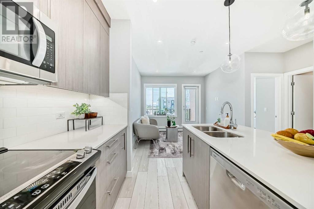 DISCOVER LOCKWOOD – A STUNNING 2-BEDROOM + DEN, 2-BATHROOM unit with TITLED UNDERGROUND PARKING, ideally located in the vibrant and growing community of Chelsea, Chestermere. Steps from PARKS, PLAYGROUNDS, WALKING TRAILS, and minutes to CHESTERMERE LAKE, this location is perfect for outdoor lovers.This BRIGHT, OPEN-CONCEPT home features an OVERSIZED SOUTH-FACING BALCONY, flooding the space with NATURAL LIGHT and offering beautiful VIEWS – perfect for relaxing or entertaining. Inside, enjoy LUXURY VINYL PLANK FLOORING, HIGH CEILINGS, and a designer kitchen with FULL-HEIGHT CABINETRY, STAINLESS STEEL APPLIANCES, QUARTZ COUNTERTOPS, and a PANTRY. The PRIMARY SUITE includes a WALK-THROUGH CLOSET and private 3-PIECE ENSUITE. A SECOND BEDROOM, DEN, and 4-PIECE MAIN BATHROOM complete the smart layout.BONUS AMENITIES include a FITNESS CENTRE, OWNERS' LOUNGE, and BIKE STORAGE. BRAND NEW and MOVE-IN READY, this home offers STYLE, COMFORT, and COMMUNITY.Contact me or your favorite realtor today for A PRIVATE SHOWING! (id:53676)