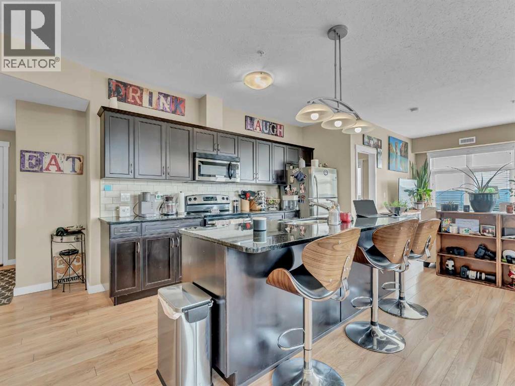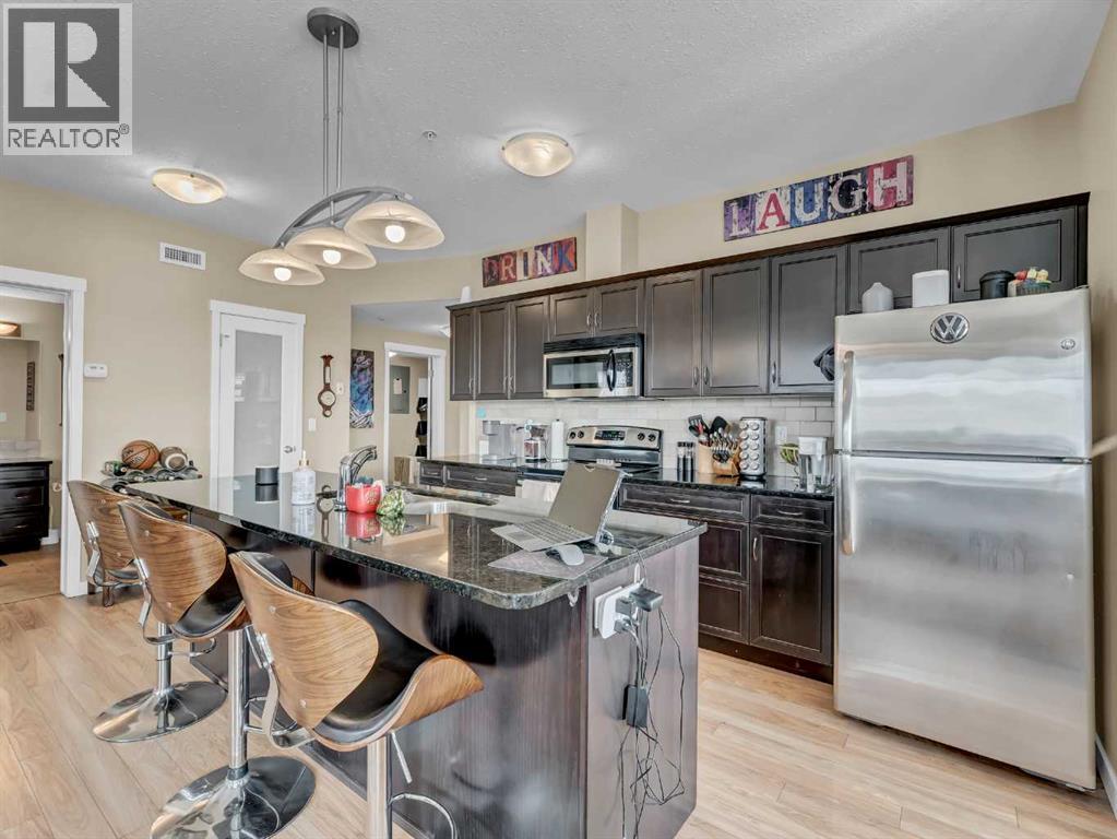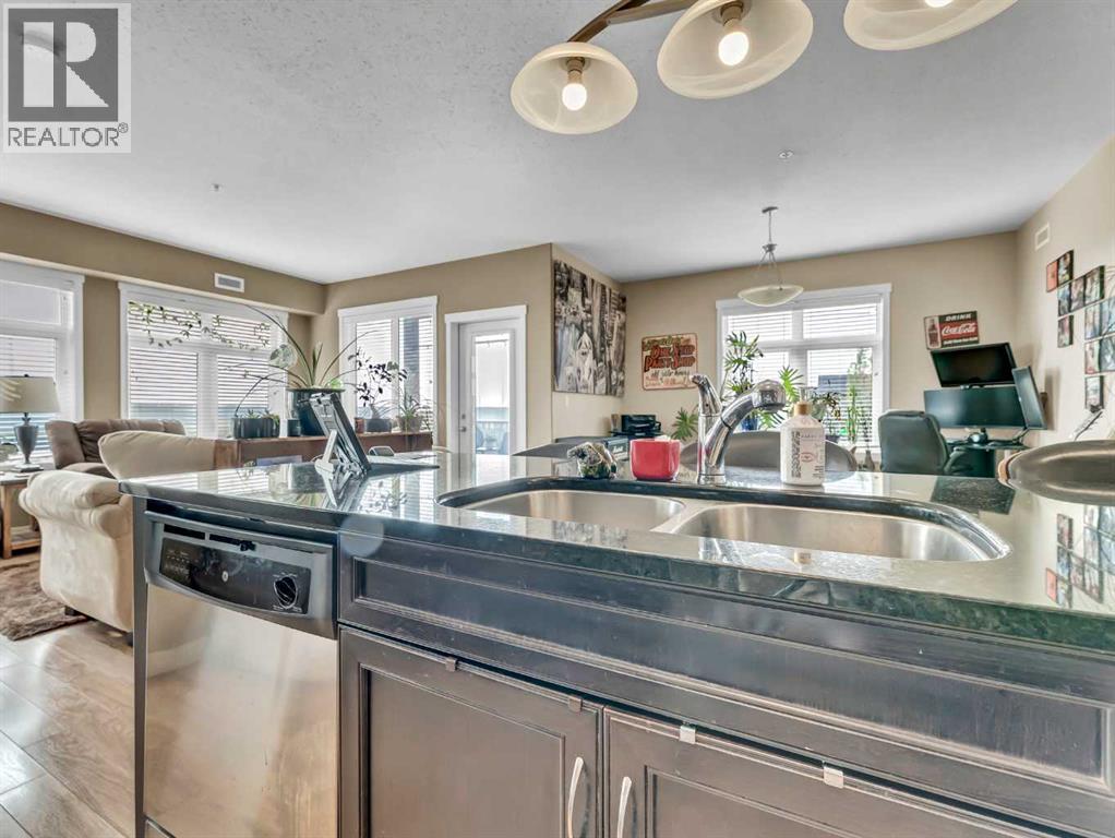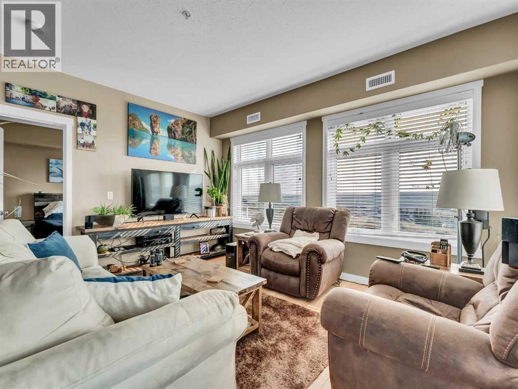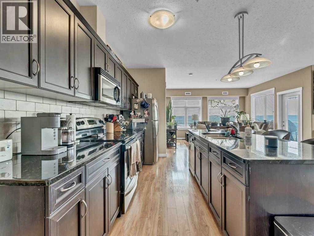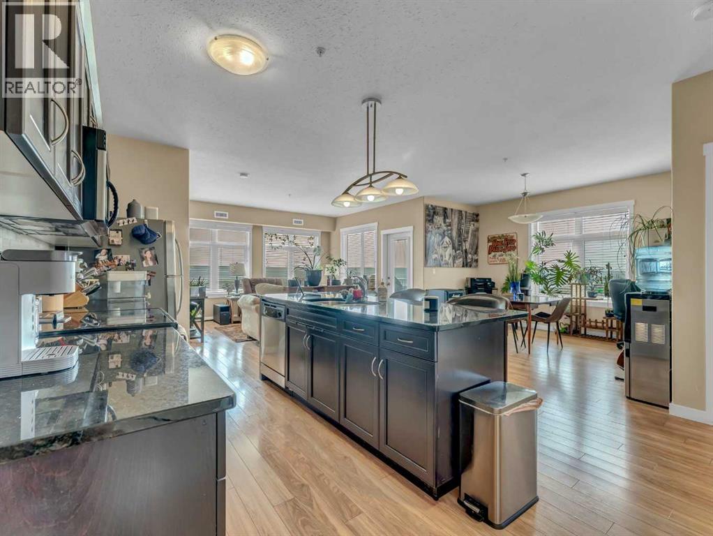 Welcome to 221 19 Terrace View NE – a bright and inviting 2-bedroom, 2-bathroom corner unit condo that’s move-in ready with great views of the river valley. This home offers a spacious open-concept layout designed for both comfort and functionality. The kitchen is a standout with granite countertops, stainless steel appliances, and a large eat-at island that’s perfect for casual meals or entertaining. It flows seamlessly into the dining area and the generous living room, which opens onto a private deck ideal for barbecuing or relaxing outdoors. Enjoy your morning coffee or evening night cap looking out over the beautiful river valley below. The primary bedroom is a true retreat with a walk-through closet leading to a 3-piece ensuite. A second good-sized bedroom, another full 4-piece bathroom, and in-suite laundry complete the floor plan. You’ll also enjoy the convenience of an underground parking stall.This well-kept building has no age restrictions, allows pets (with some restrictions), and your condo fees include all utilities—making for easy, worry-free living. Condo fees are $457/month and include: Common Area Maintenance, Electricity, Heat, Maintenance Grounds, Parking, Reserve Fund Contributions, Sewer, Snow Removal, Trash, & Water. (id:53676)