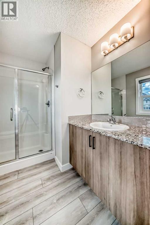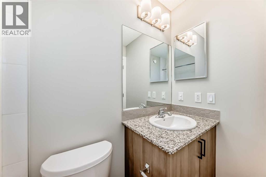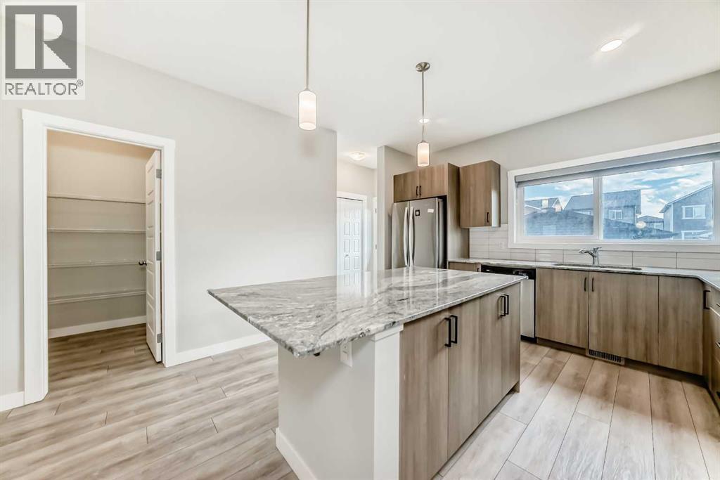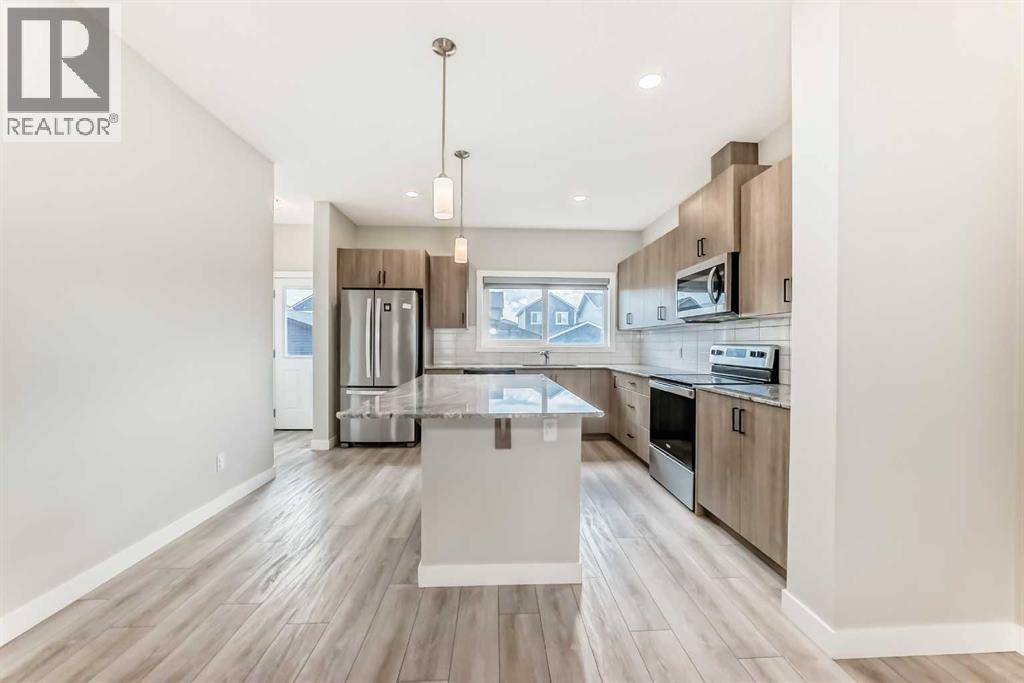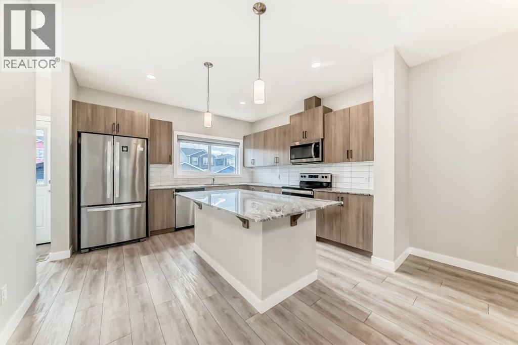 Welcome to 221 Midgrove Mews SW – Stylish, Smart & Spacious in Midtown Airdrie!This 2023-built Shane Homes duplex blends modern upgrades, thoughtful design, and investment-ready potential. Boasting 2,276+ sq ft of developed space (main floor and lower floor), including a fully finished basement with a wet bar, this 3-bedroom, 3.5-bath home is ideal for upsizers, downsizers, multi-generational families, or savvy investors.The bright, open-concept main floor features 9-foot ceilings, luxury vinyl plank flooring, large windows, a modern kitchen with quartz counters, a full-height backsplash, a Lanco undermount sink, and Whirlpool appliances. The side entrance provides direct access to the finished basement, perfect for guests, in-laws, or rental potential. Upstairs, is a bonus room, laundry room, and three bedrooms, including a primary retreat with a walk-in closet and a three-piece ensuite. The basement adds a fourth bedroom, four-piece bath, rec area, wet bar, laundry, and storage.Enjoy the oversized double detached garage, paved alley, and remaining Alberta New Home Warranty on the envelope and structure.Located in Midtown Airdrie, steps to parks, paths, Midtown Lake, Tim Hortons, Save-On-Foods, and just 10 mins to Costco & CrossIron Mills.RMS Above Grade: 1,631.3 sq ft | Finished Basement: 645.4 sq ftTotal Developed: 2,276.7 sq ft | Garage: 21’5” x 19’4”Zoned R2 – Duplex with rear detached garageDon’t miss this move-in-ready gem in one of Airdrie’s most desirable communities!Book your private tour today! (id:53676)